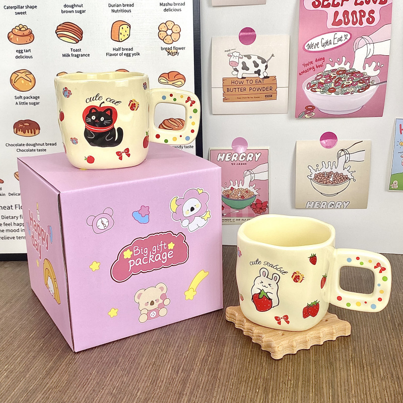 Taza de cerámica Taza de dibujos animados creativa Regalo de mano Regalo de cumpleaños lindo Taza para beber para niñas Taza de café para parejas