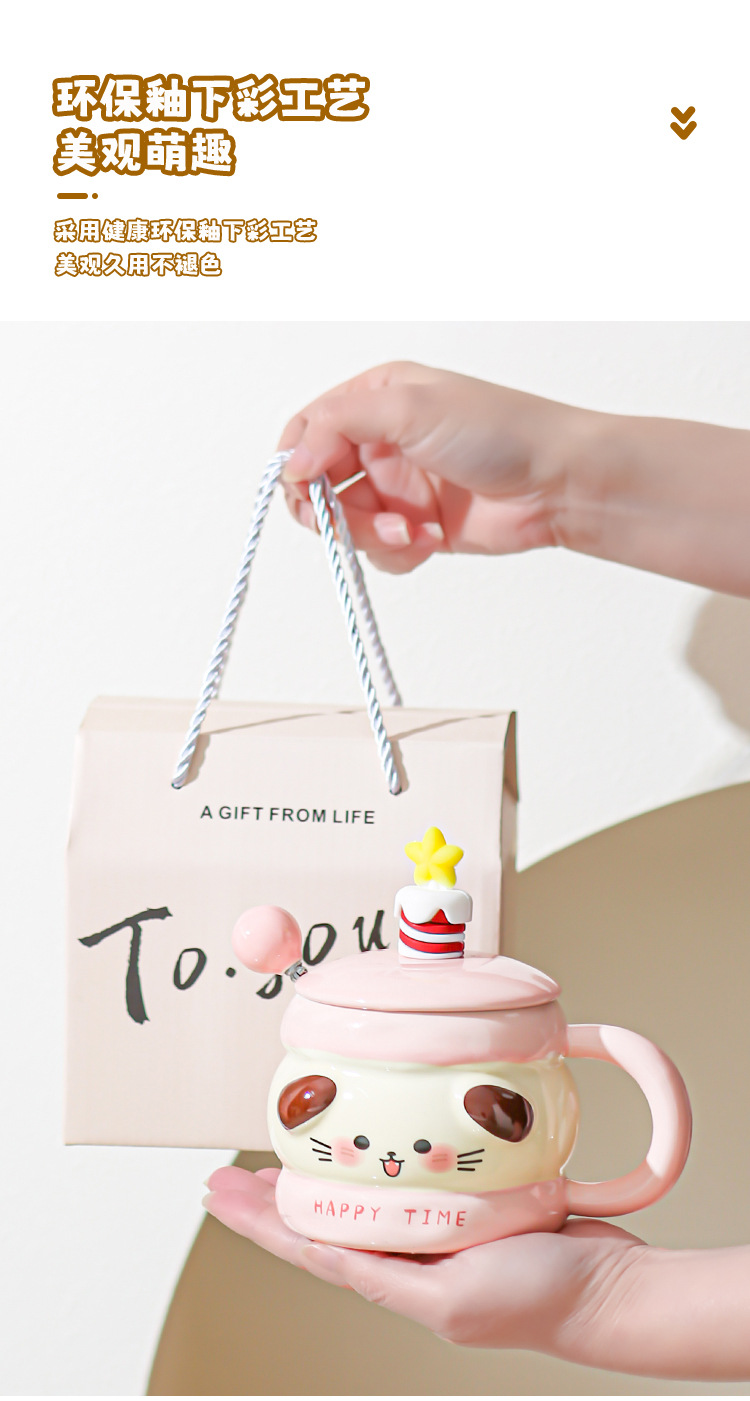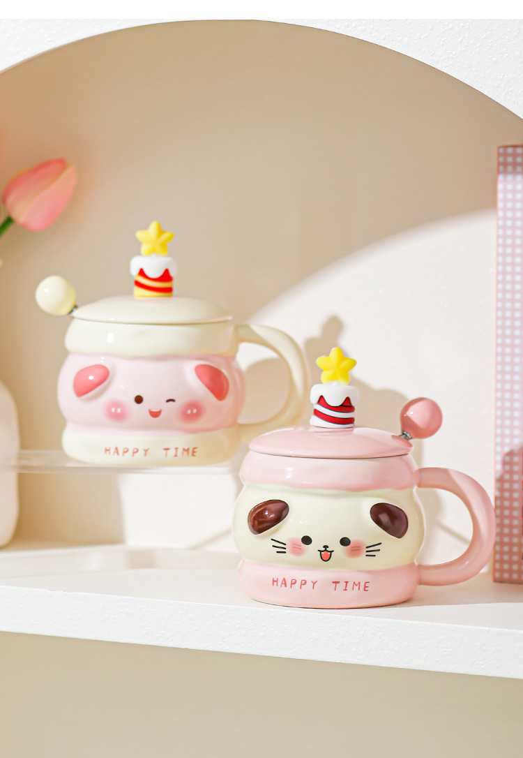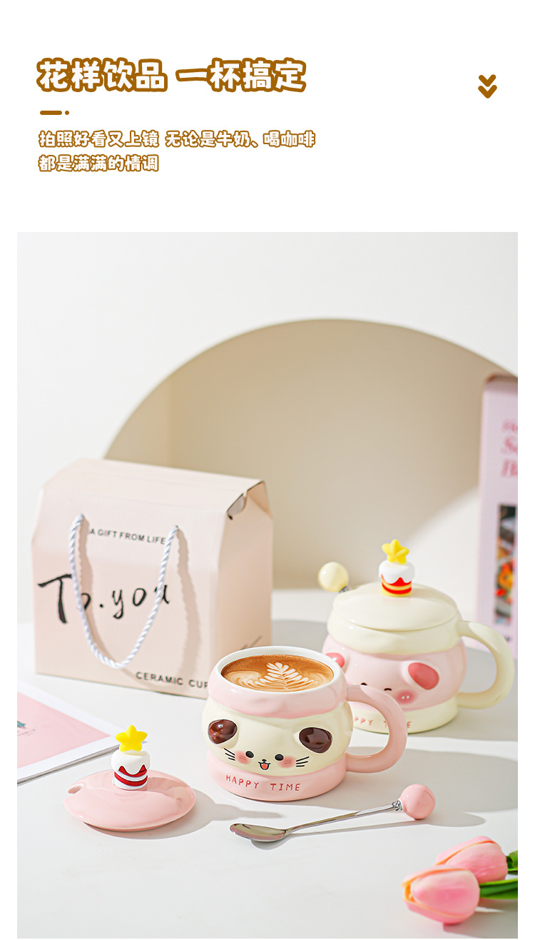 Hermosas tazas de cerámica de regalo de cumpleaños, chicas super lindas, copas de alto valor, tazas con cubierta de cucharas, regalo de mano