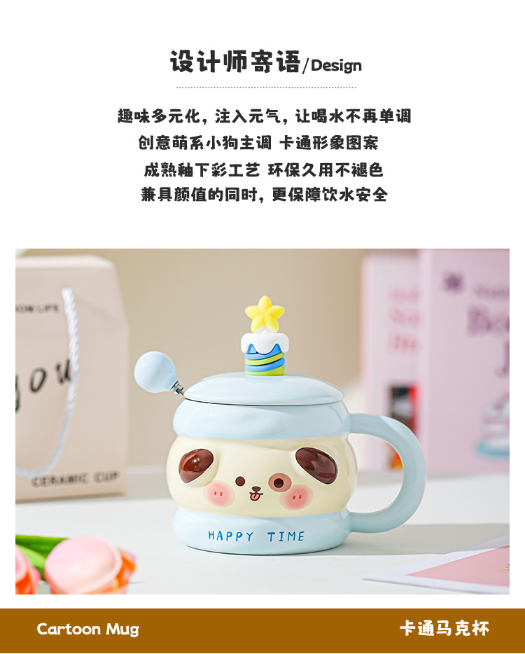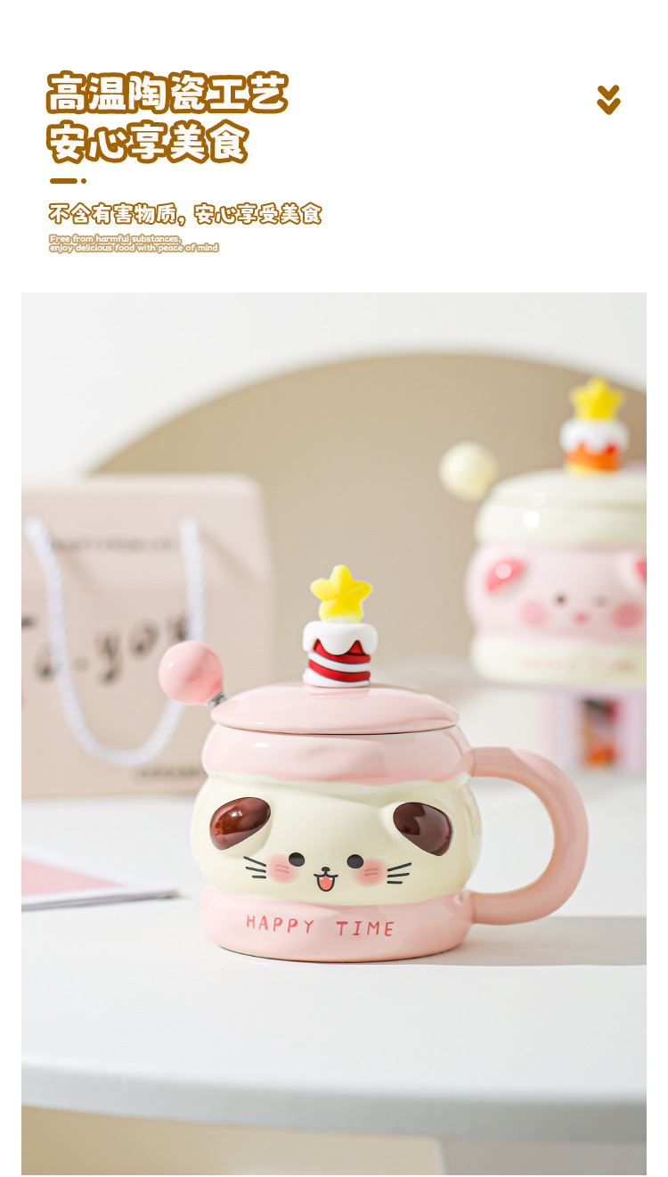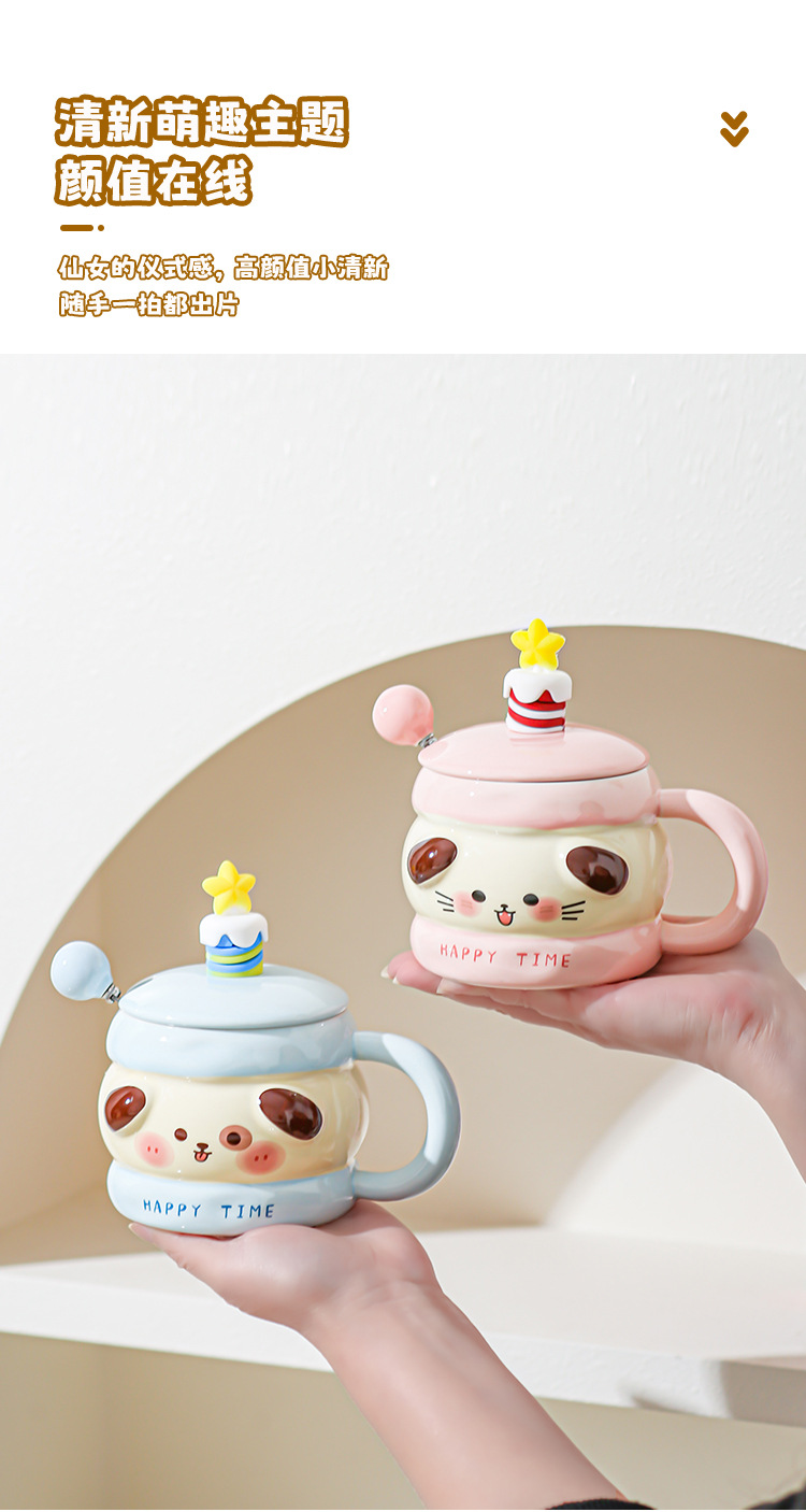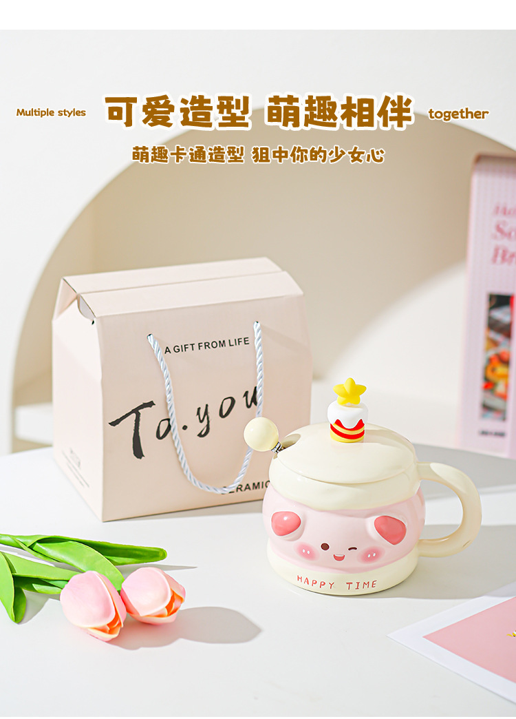 Hermosas tazas de cerámica de regalo de cumpleaños, chicas super lindas, copas de alto valor, tazas con cubierta de cucharas, regalo de mano