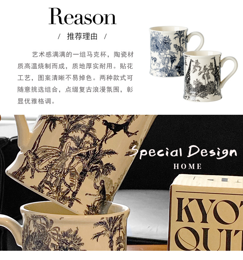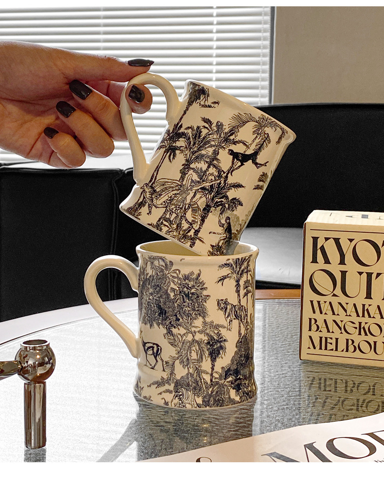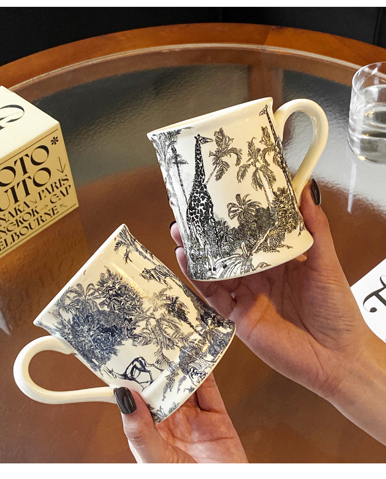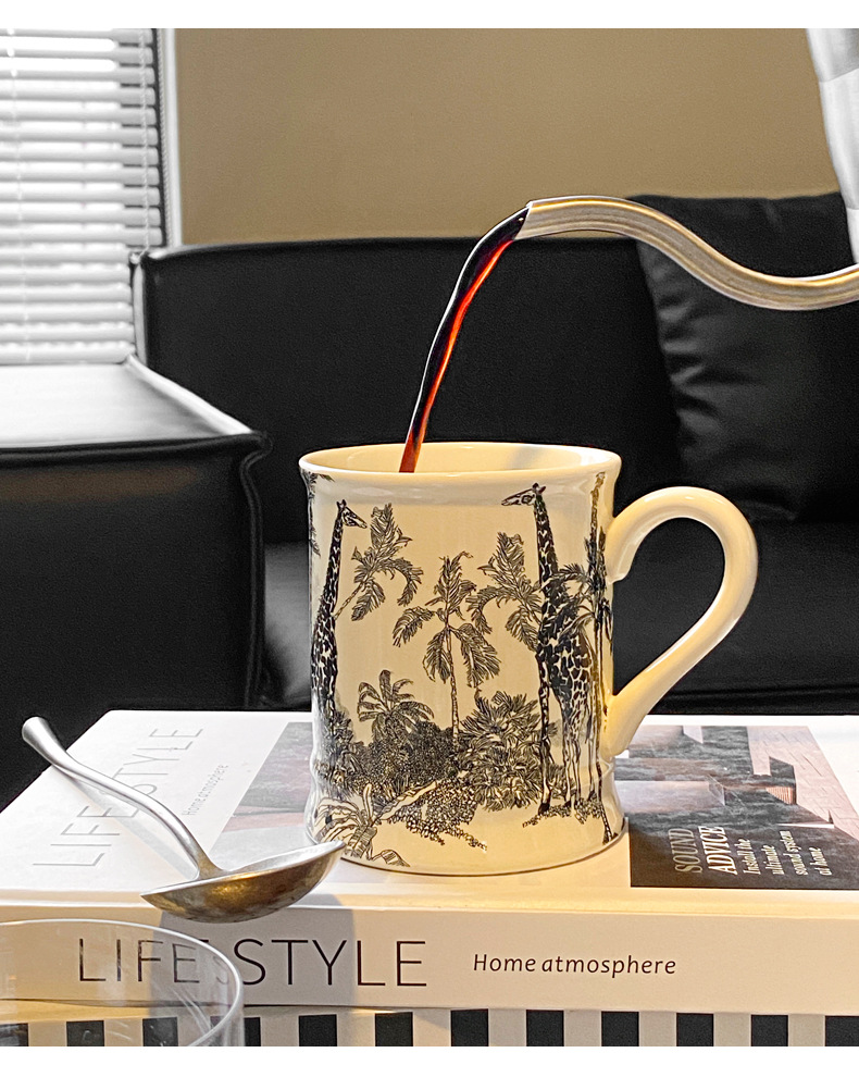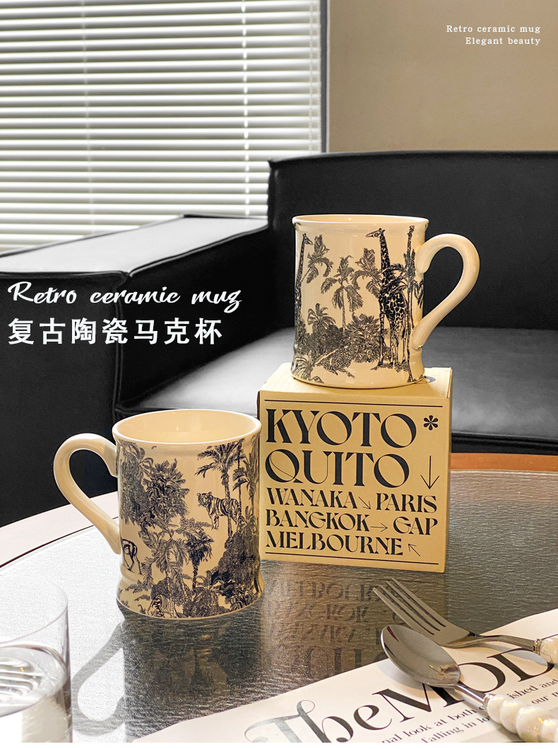 Francés retro taza de agua Cerámica puede entrar horno microondas caja color independiente Oficina nicho ins leche avena