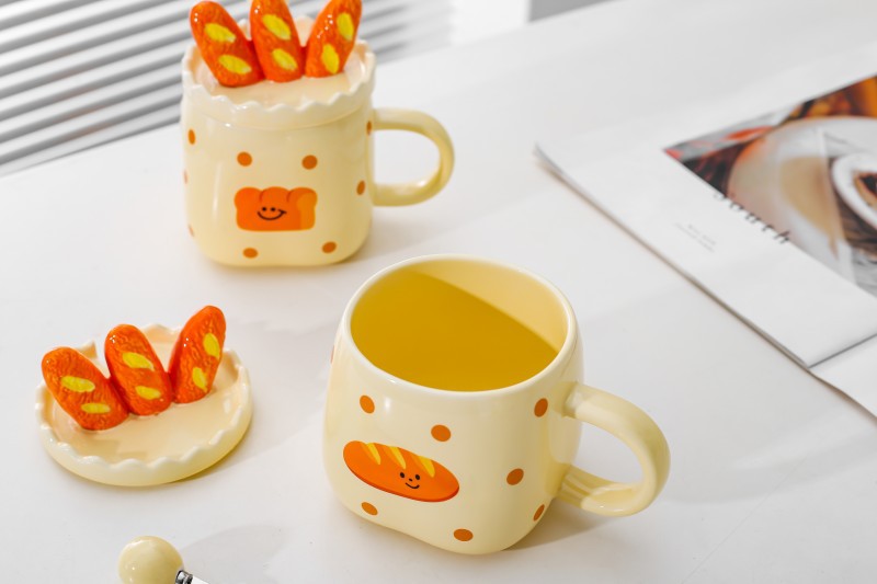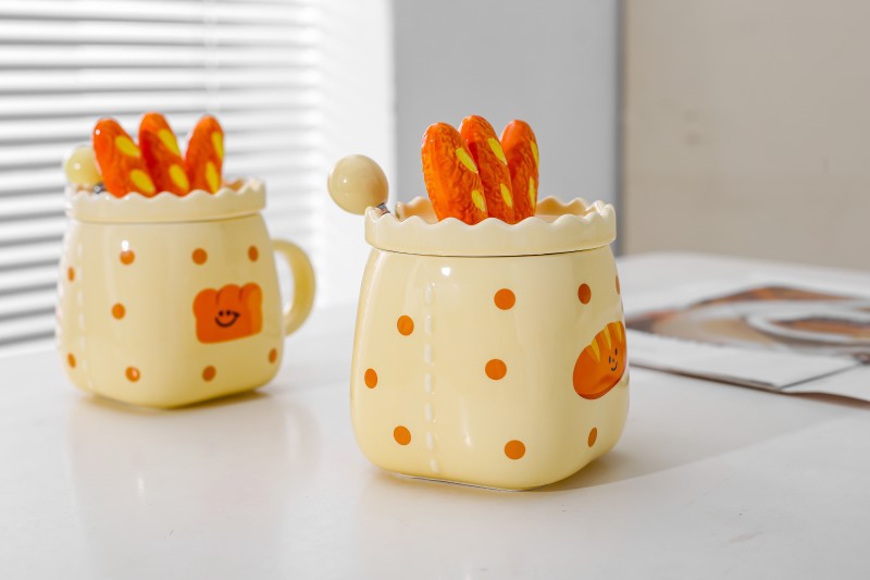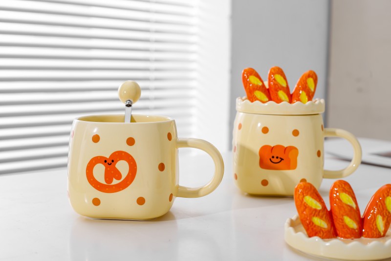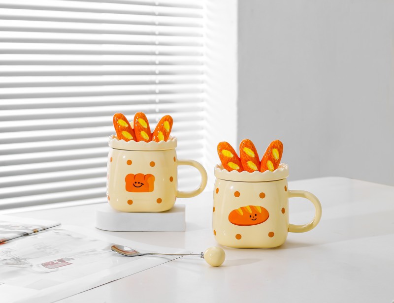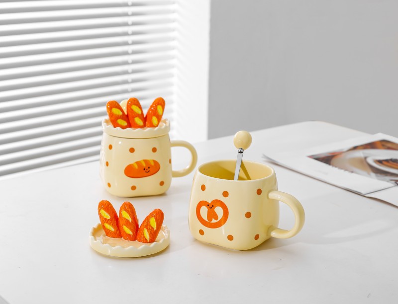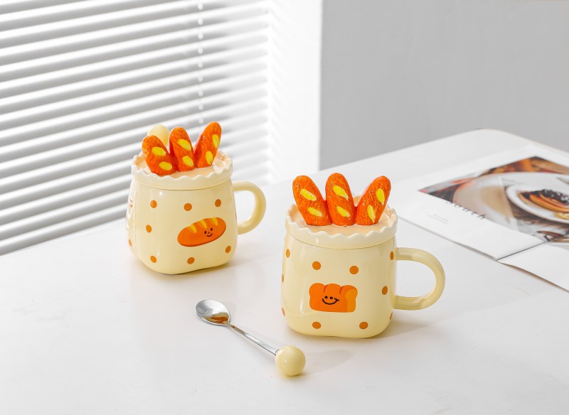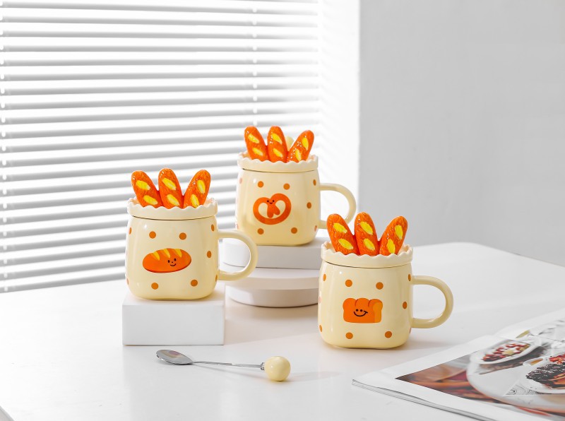 Taza de cerámica creativa de estilo japonés taza de pan taza de pareja taza de agua con tapa cuchara taza de café desayuno taza de leche