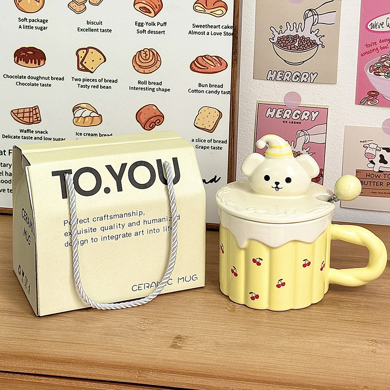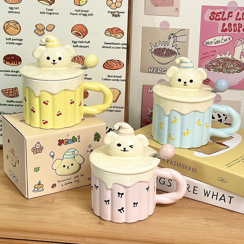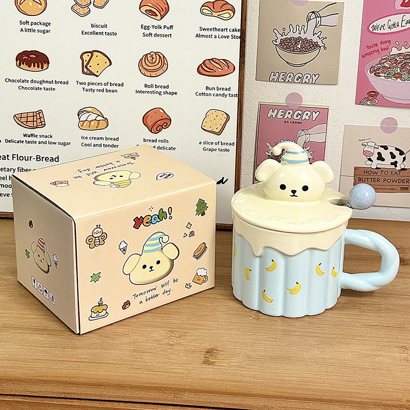 Taza de cerámica para perros divertida, taza de regalo a mano, taza de agua para el hogar, taza con tapa, regalo de cumpleaños, taza de café para niñas