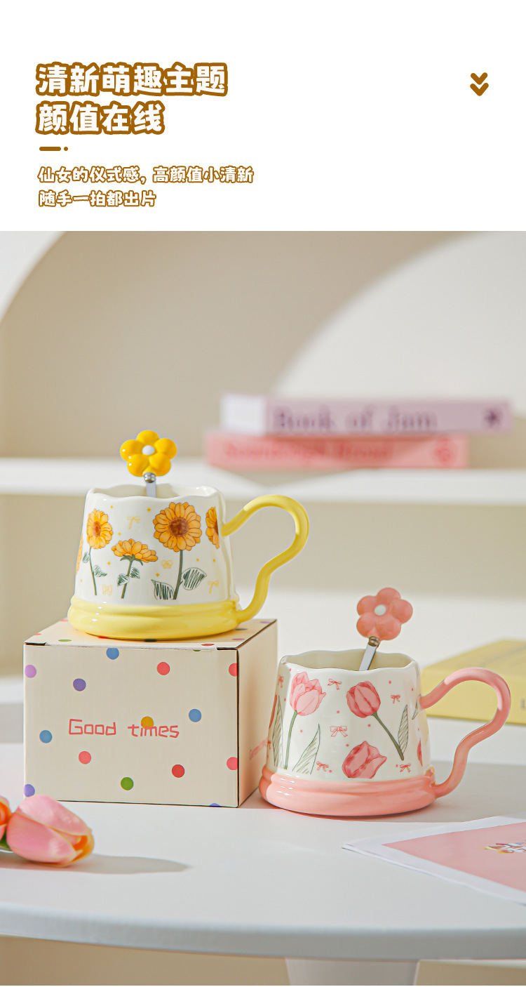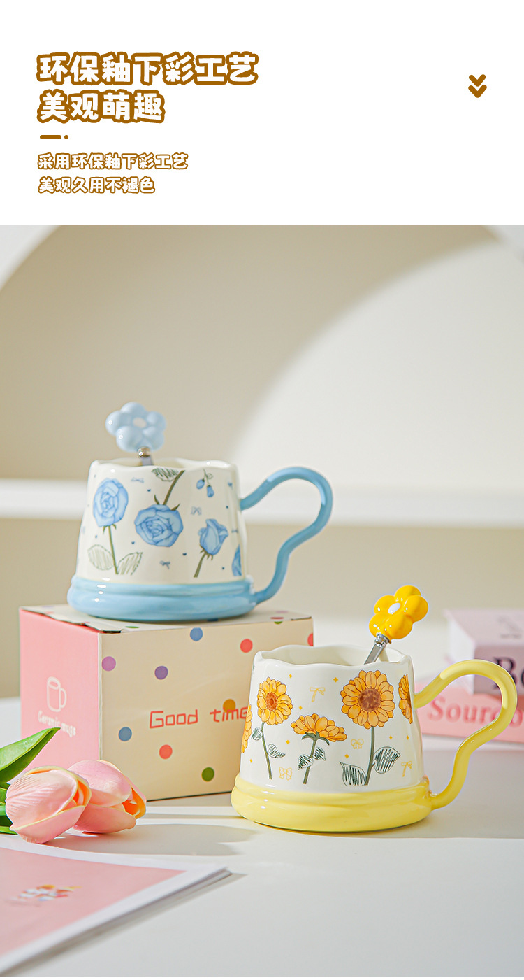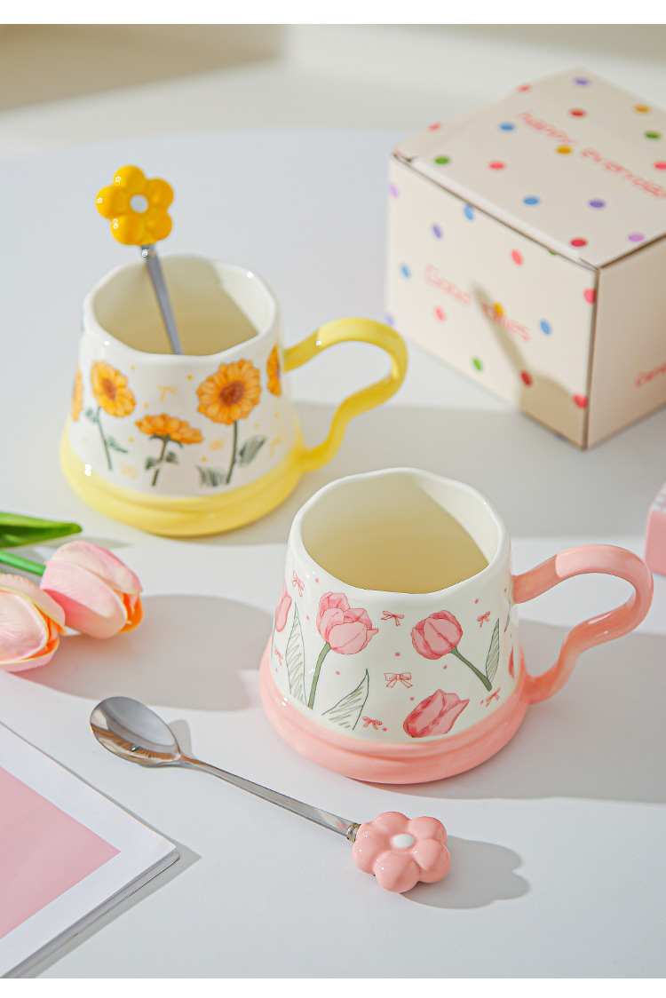 Regalos de mano pequeños regalos de tazas de girasoles de cerámica para el hogar set tazas de tazas de tulipán