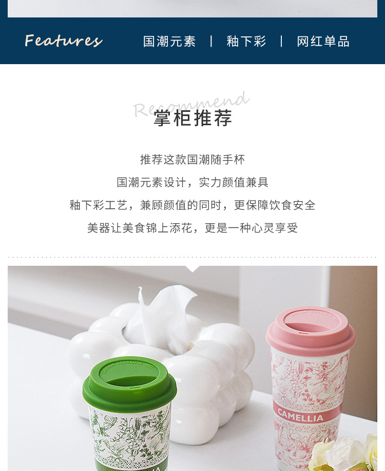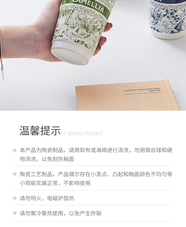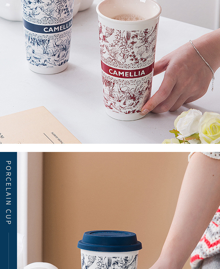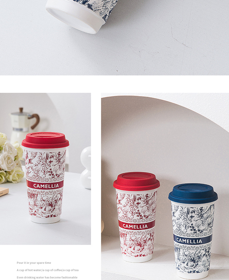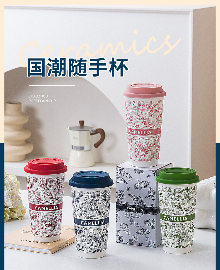 Taza de cerámica de marca Guozhaofeng taza de agua con tapa de taza de café de oficina creativa doméstica de gran capacidad