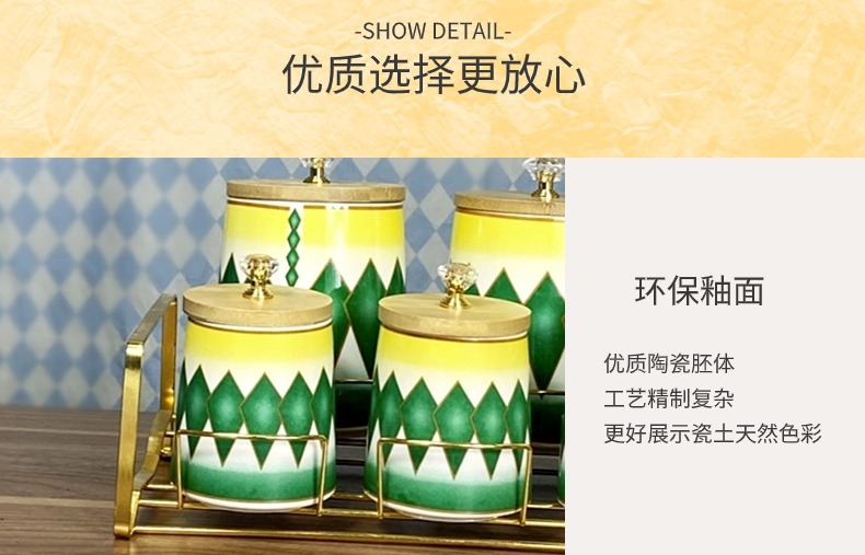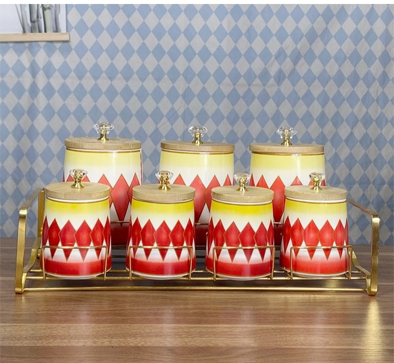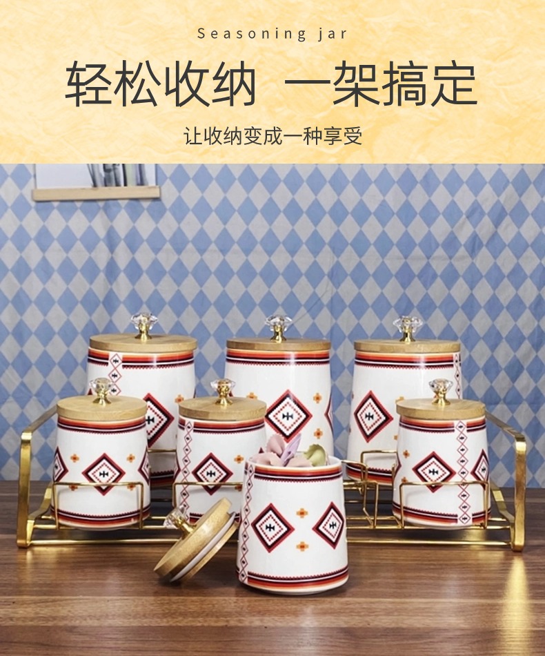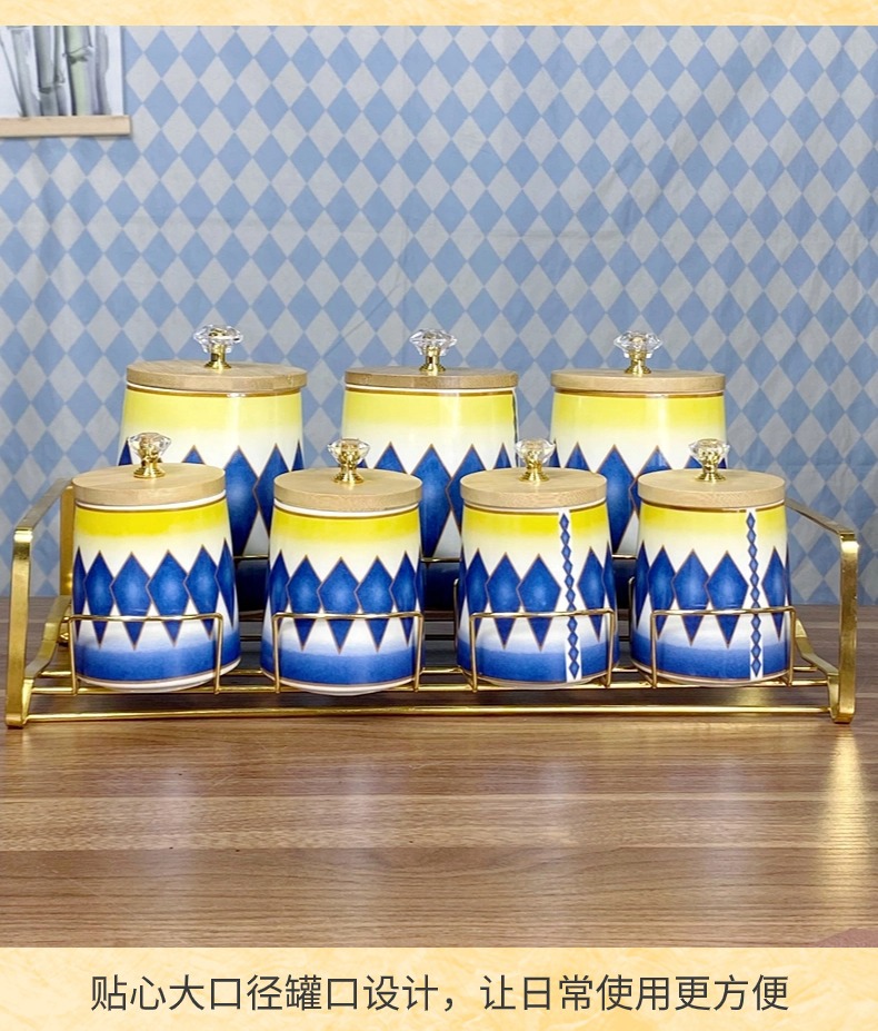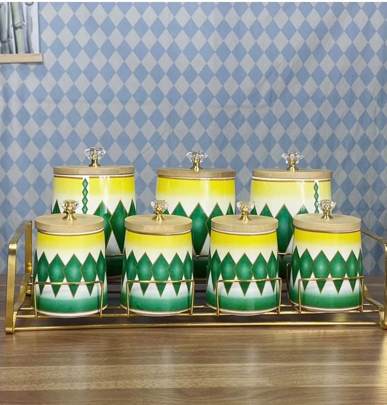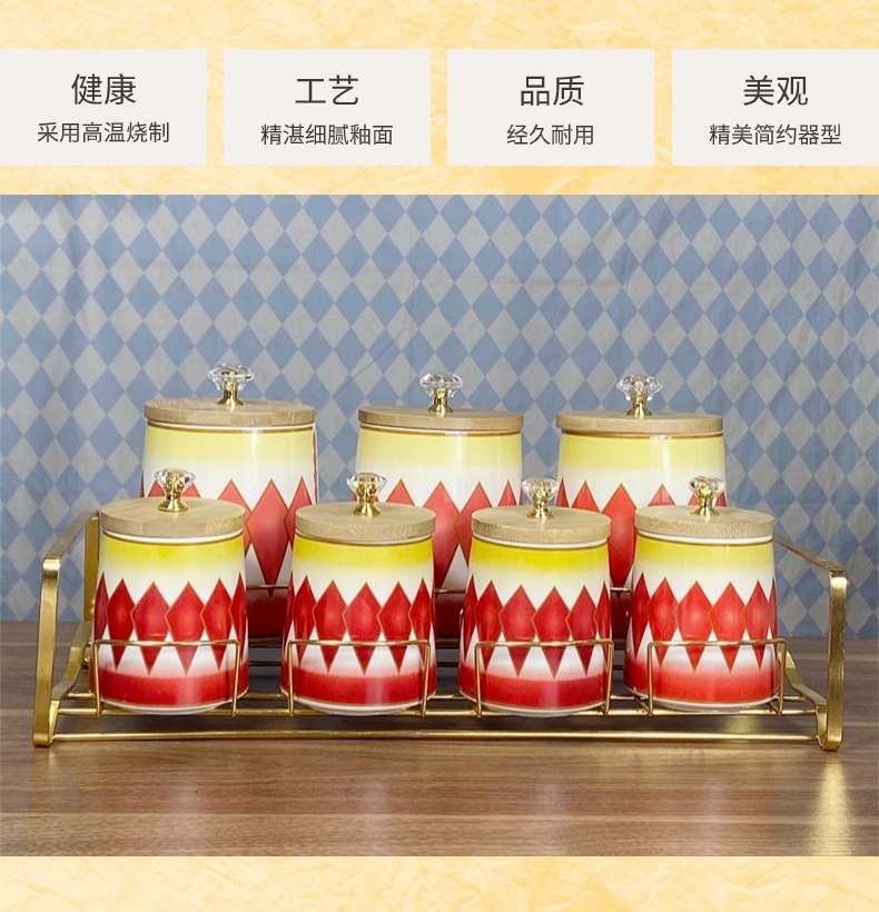 Comercio exterior exportación de cerámica de lujo ligera condimento cocina cubierta de madera condimento caja de cuentas superior conjunto de comercio con estante de contenedor