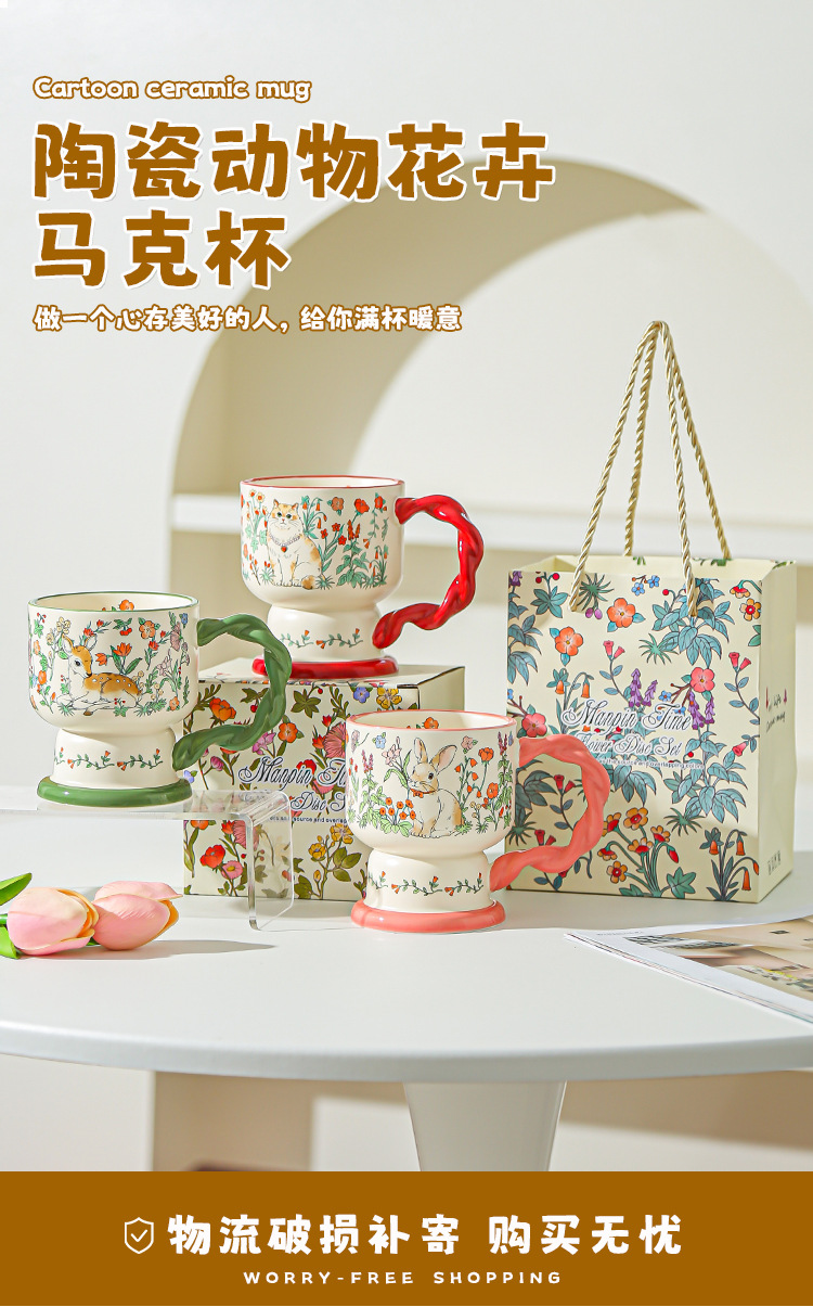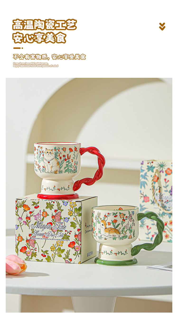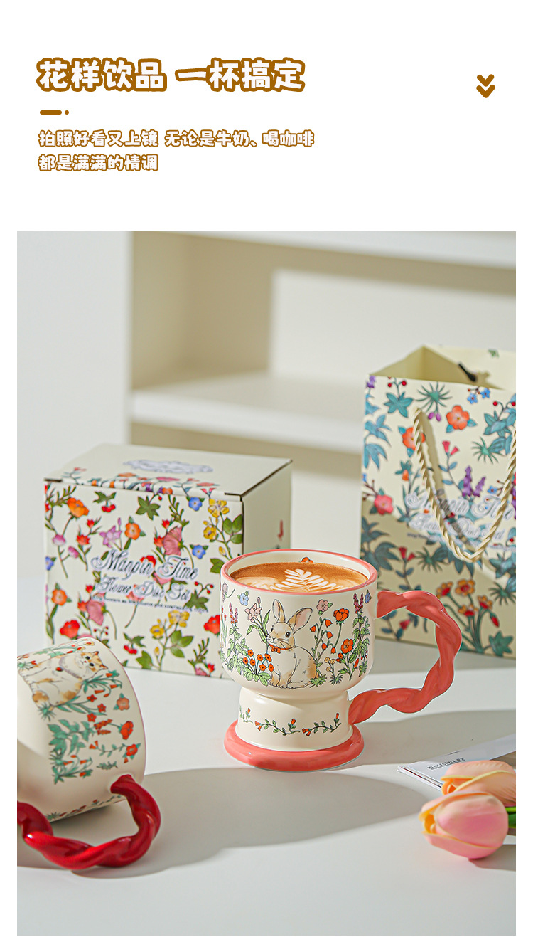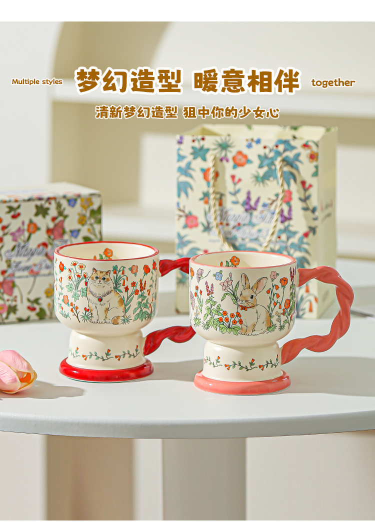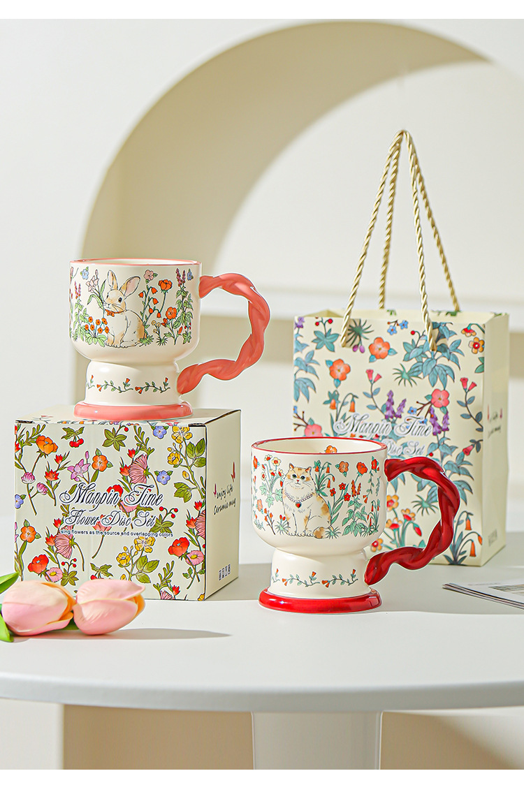 Taza de cerámica floral creativa para damas delicada y de alto valor de regalo de cumpleaños para dar a una amiga taza de café taza de agua