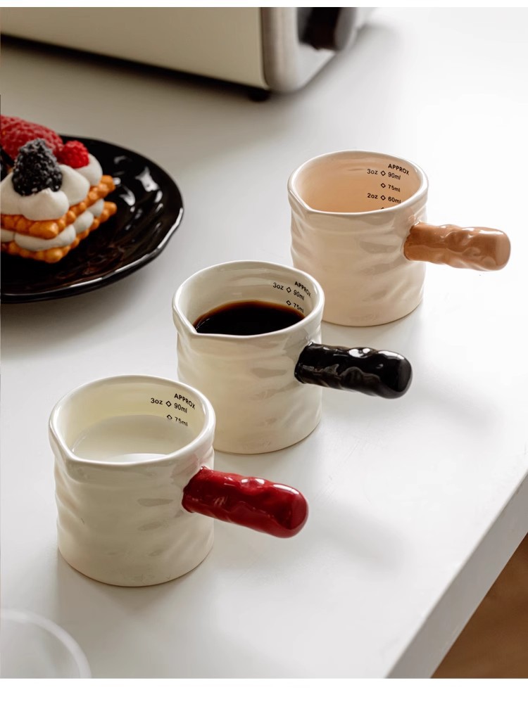 Taza de leche pequeña de café de alto valor ins con frasco de leche de escala Taza de extracto de espresso Taza medidora de cerámica con pezones