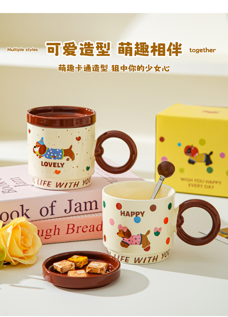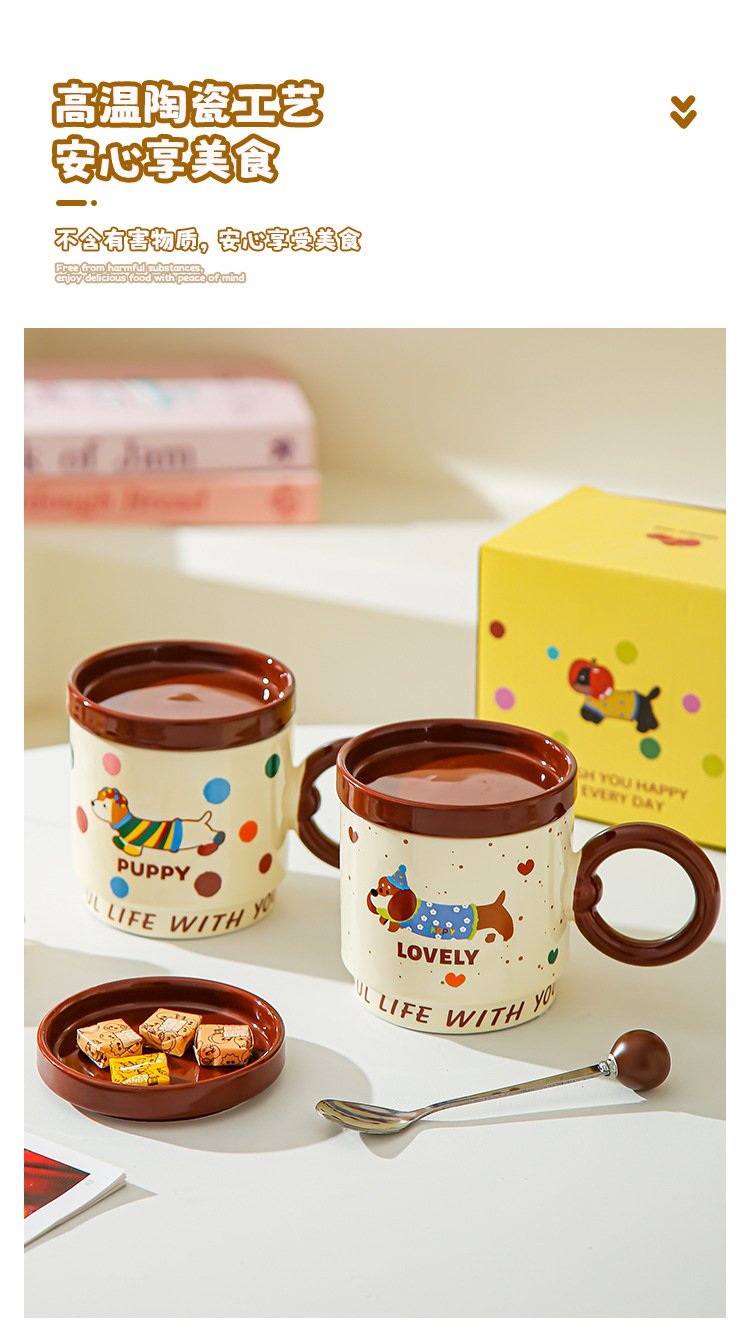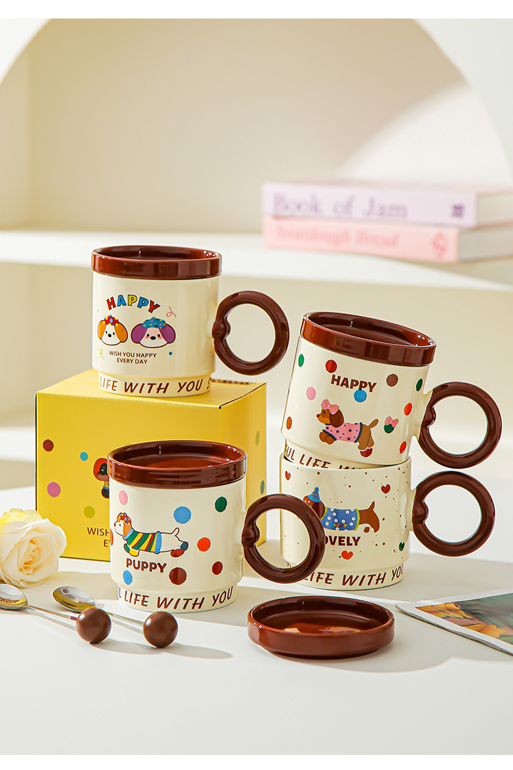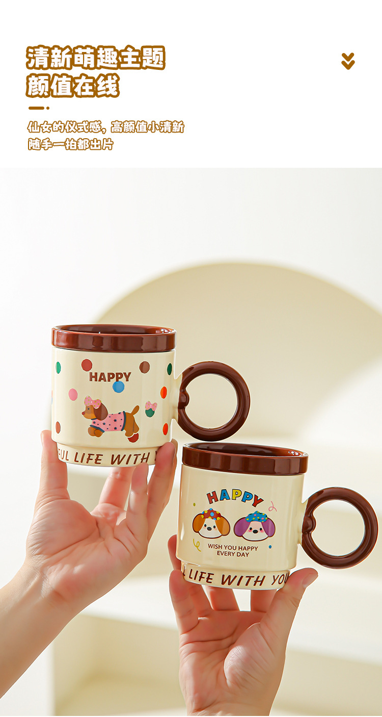 Taza de dibujos animados creativa con tapa de taza de cerámica para parejas de chicas taza de agua acompañante regalo de alto valor facial taza de marca conjunto doméstico