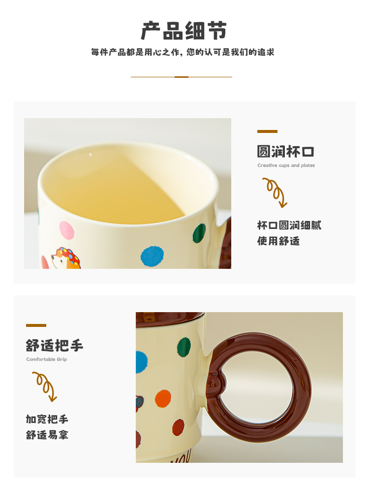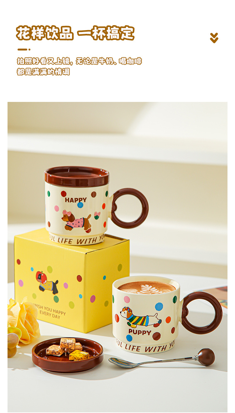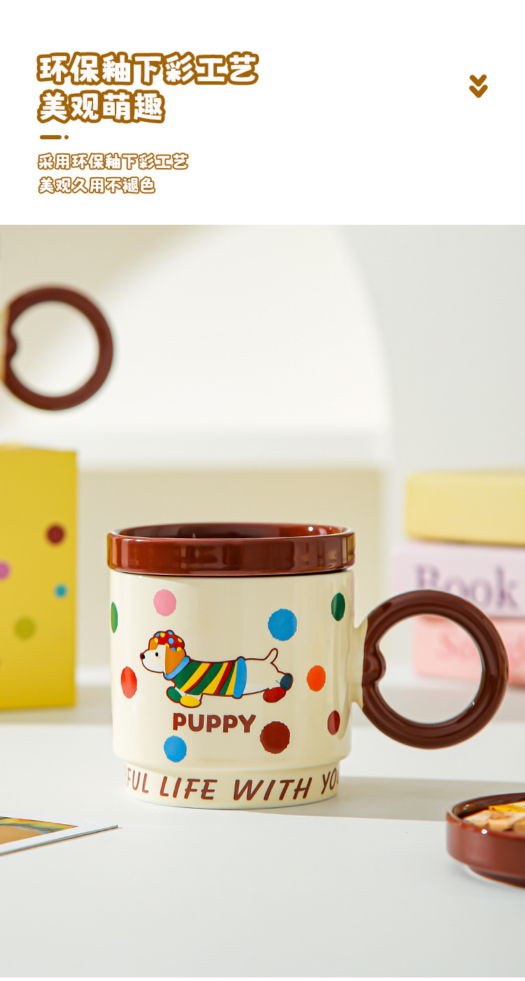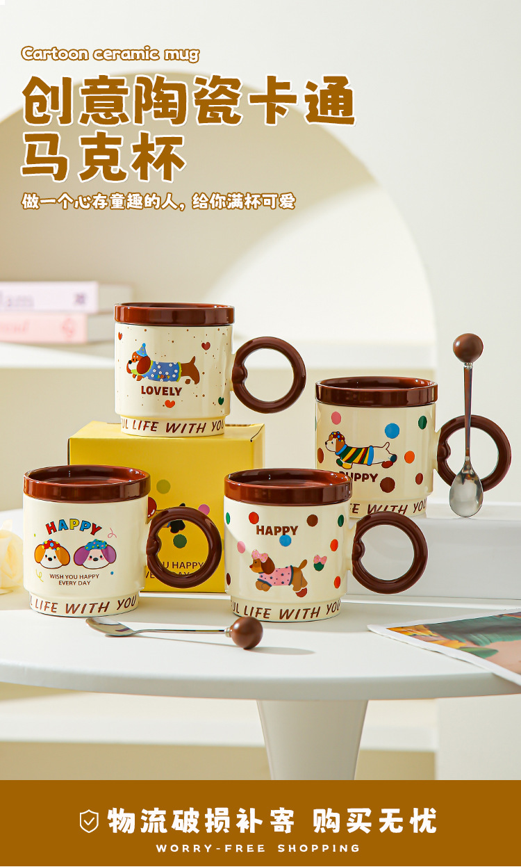 Taza de dibujos animados creativa con tapa de taza de cerámica para parejas de chicas taza de agua acompañante regalo de alto valor facial taza de marca conjunto doméstico