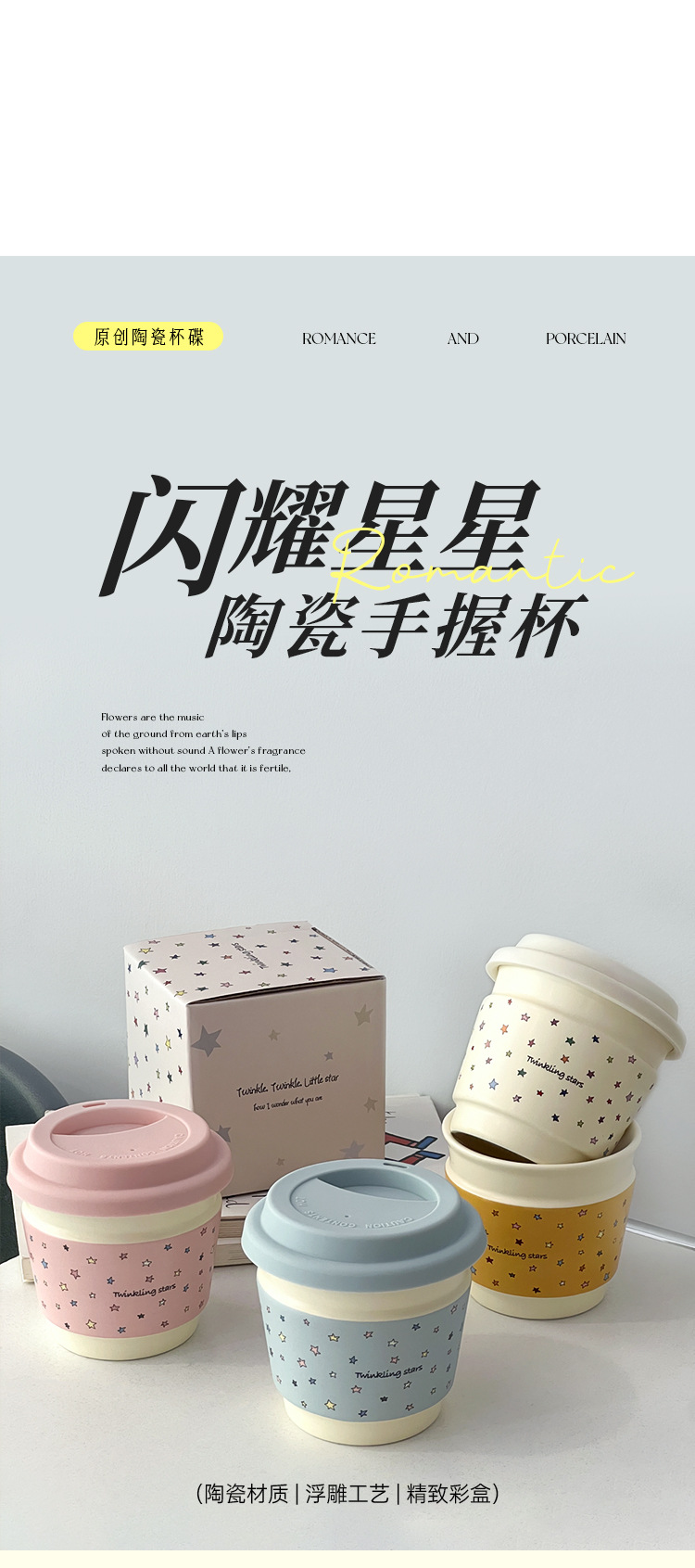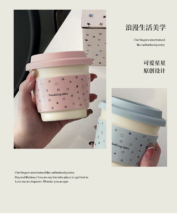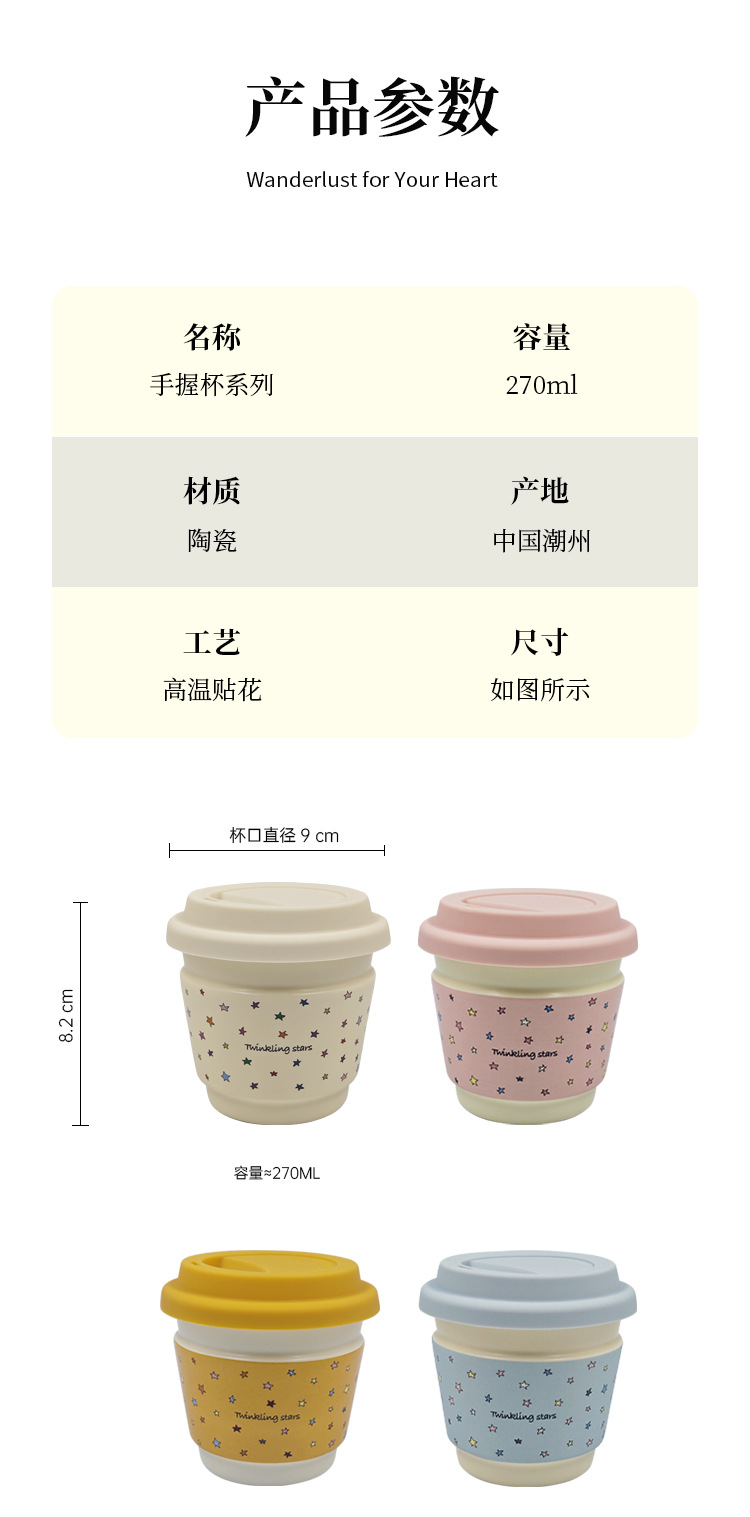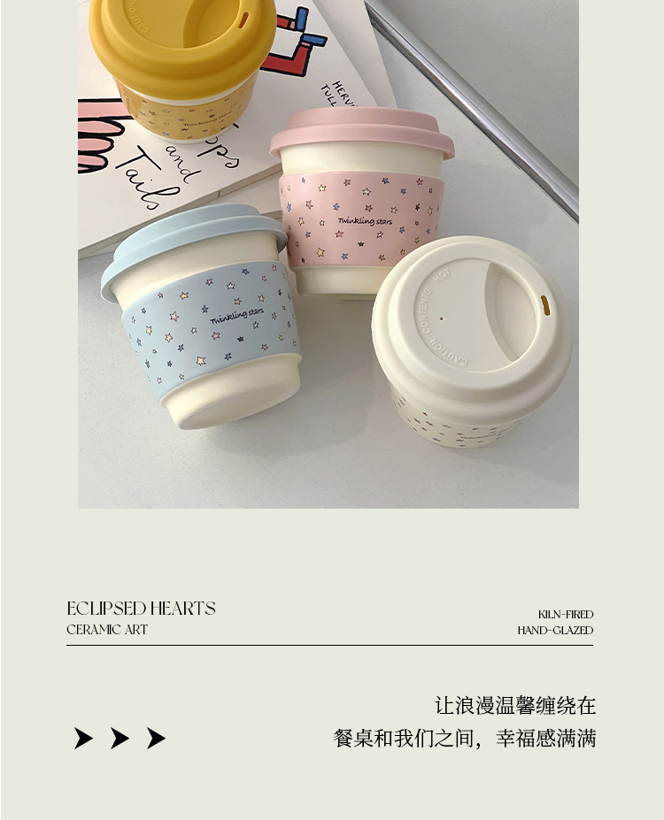 Taza de café de cerámica macaron de alto valor creativo de la serie de tazas de desayuno portátiles de mano Starins simple