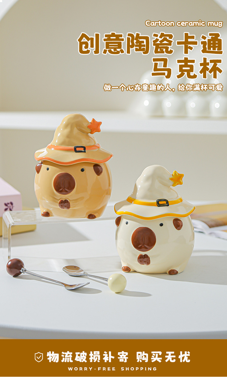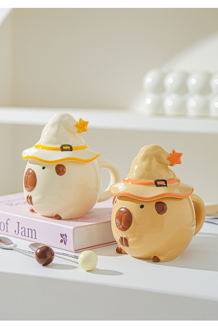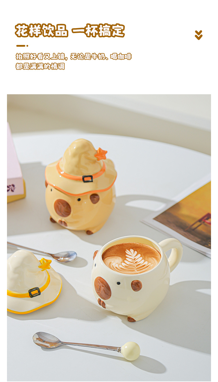 Taza Capibara para chicas lindas tazas de cerámica con tapa de agua regalo de cumpleaños tazas creativas de alto valor facial