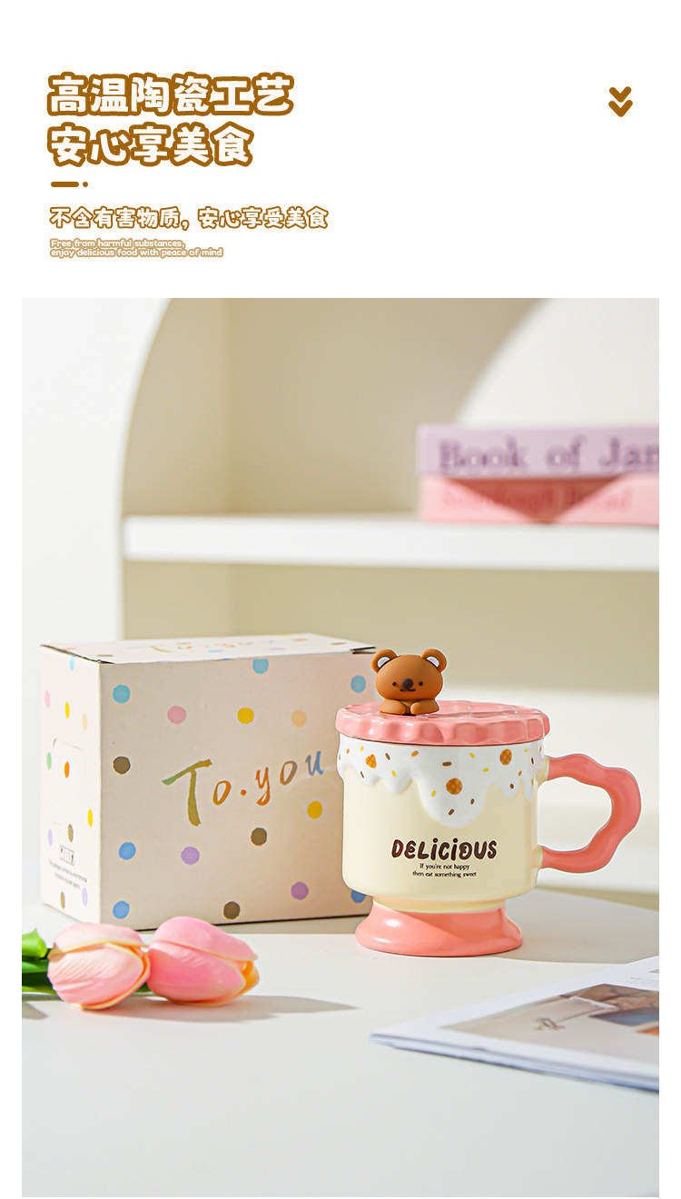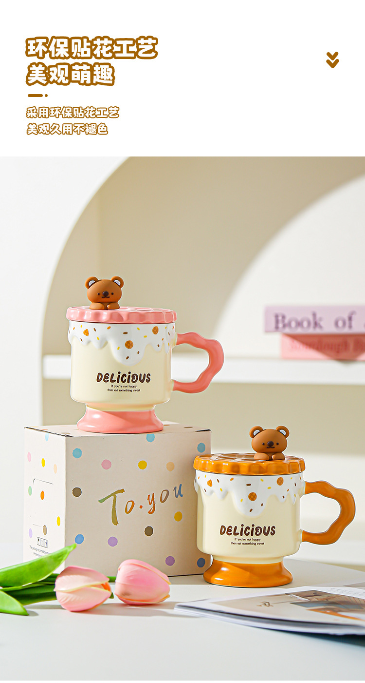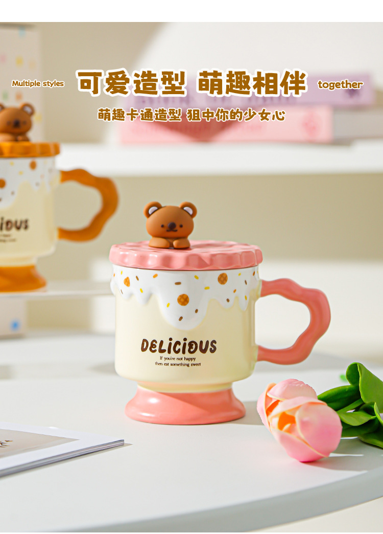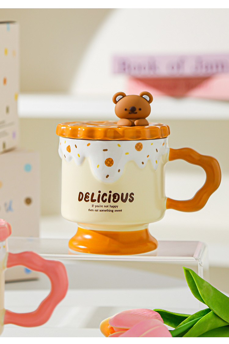 Caricatura dulce oso galletas tazas de cerámica con tapa de alta calidad de la oficina taza de agua regalo de mano taza de regalo
