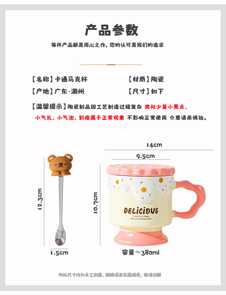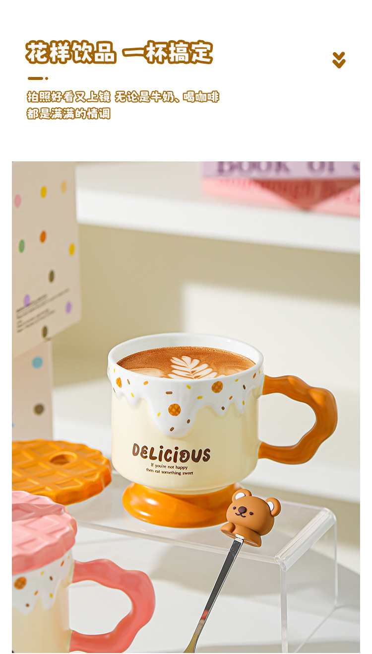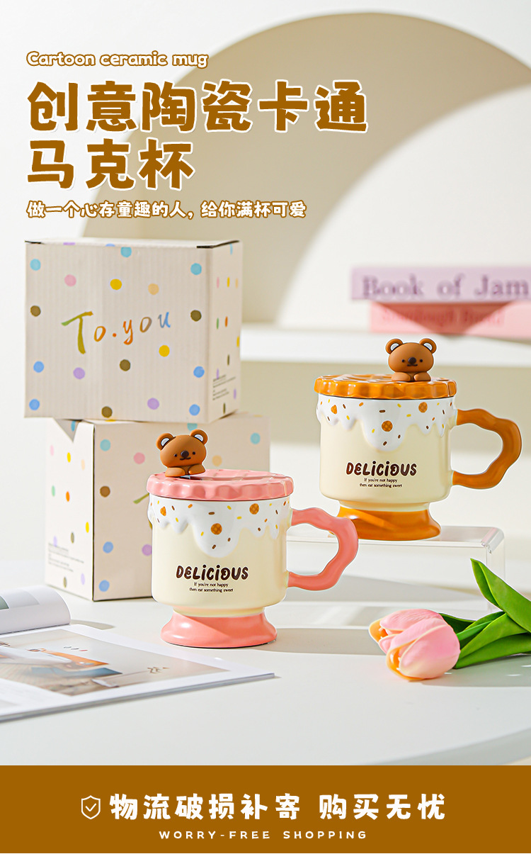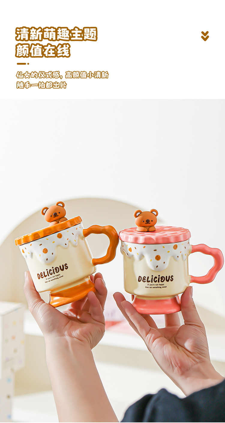 Caricatura dulce oso galletas tazas de cerámica con tapa de alta calidad de la oficina taza de agua regalo de mano taza de regalo