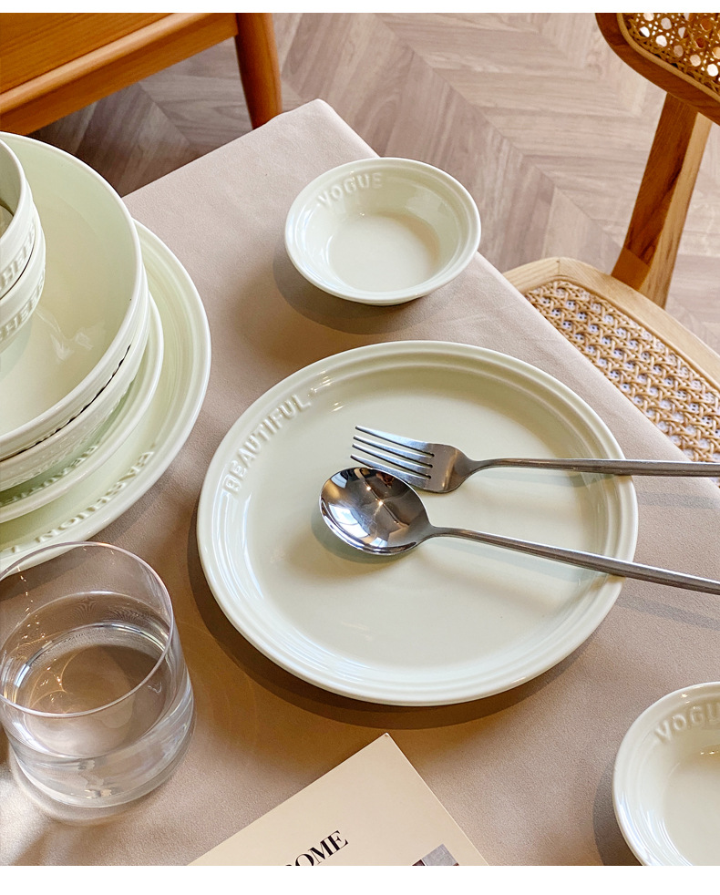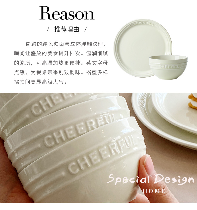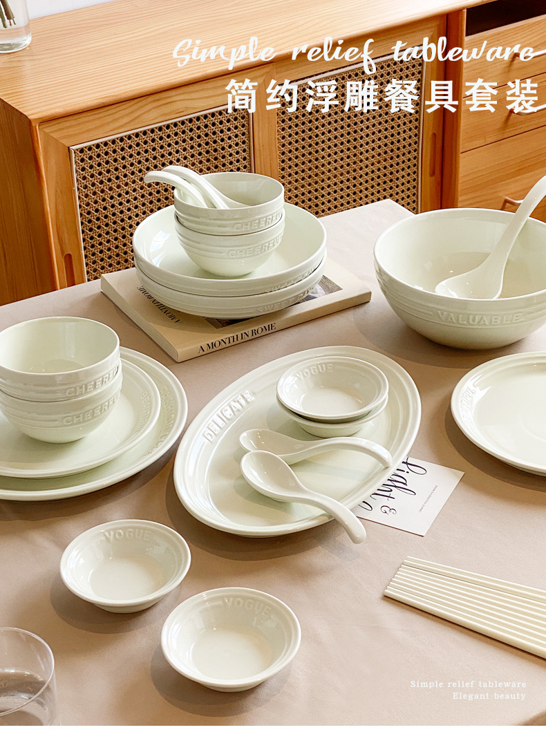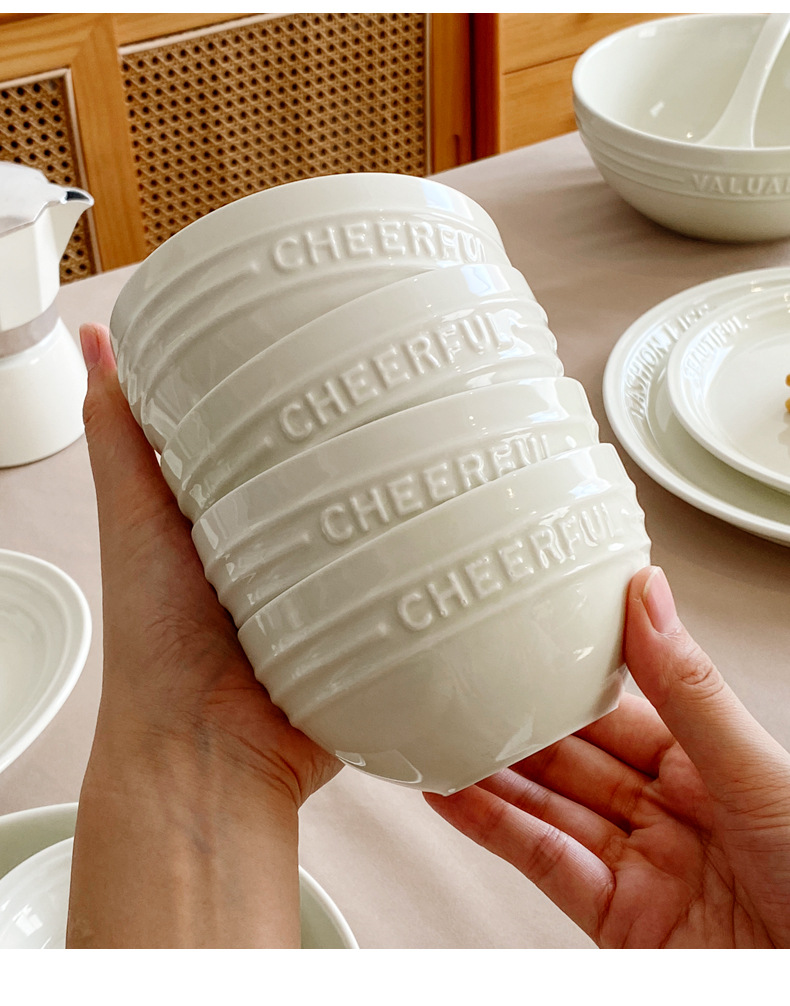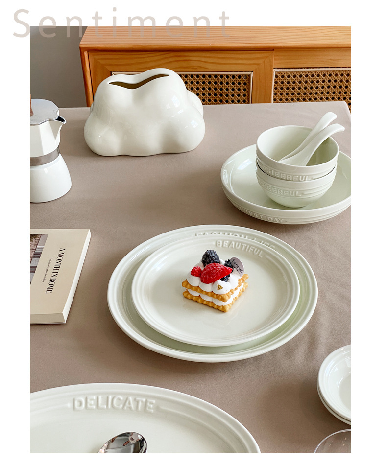 Trufa alivio blanco artesanía tazón de cerámica placa combinación simple ins ensalada plato bajo vidriado vajilla hogar