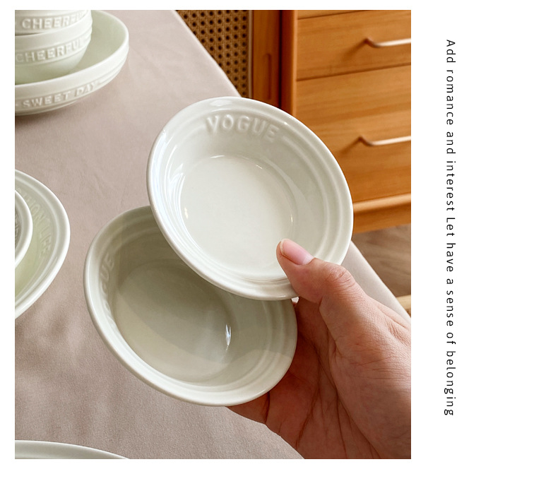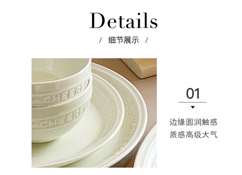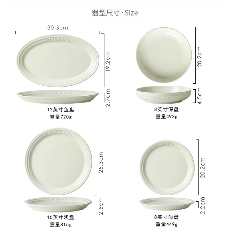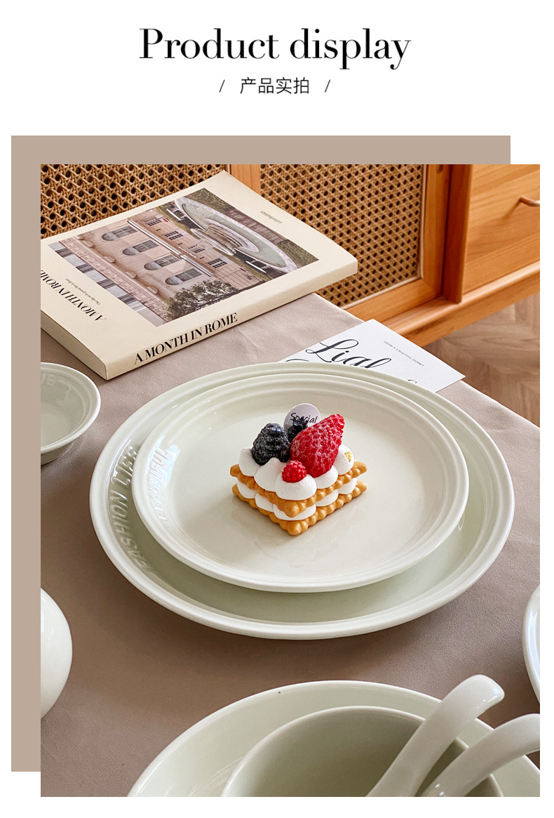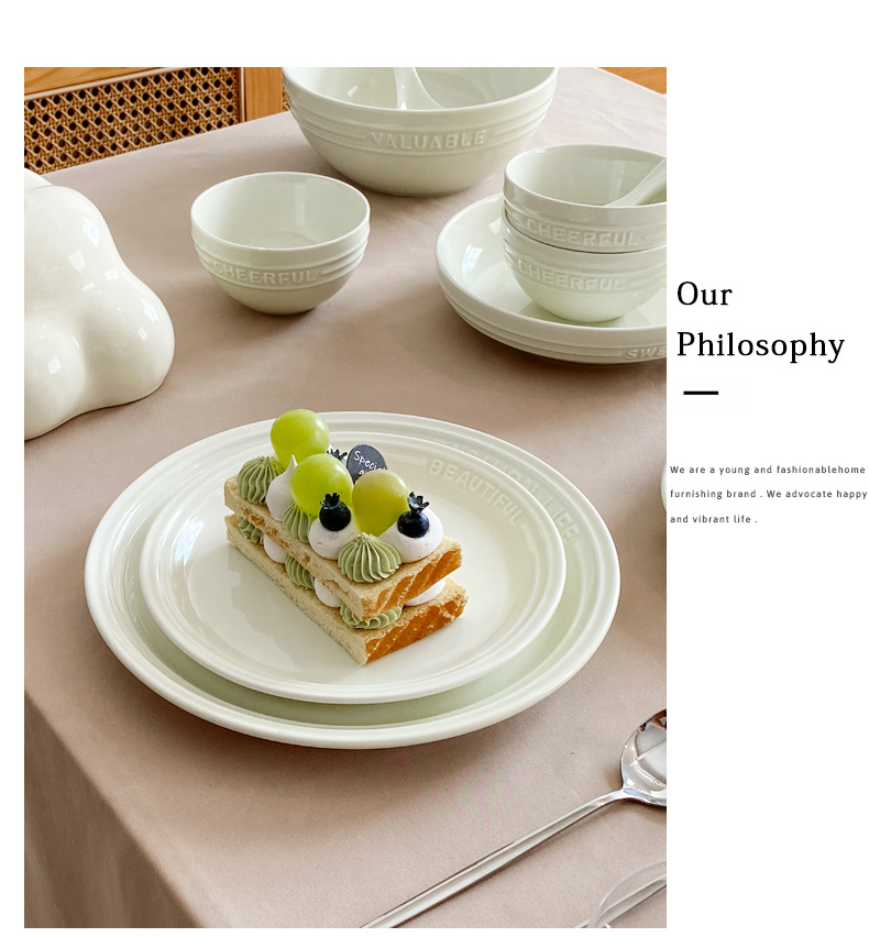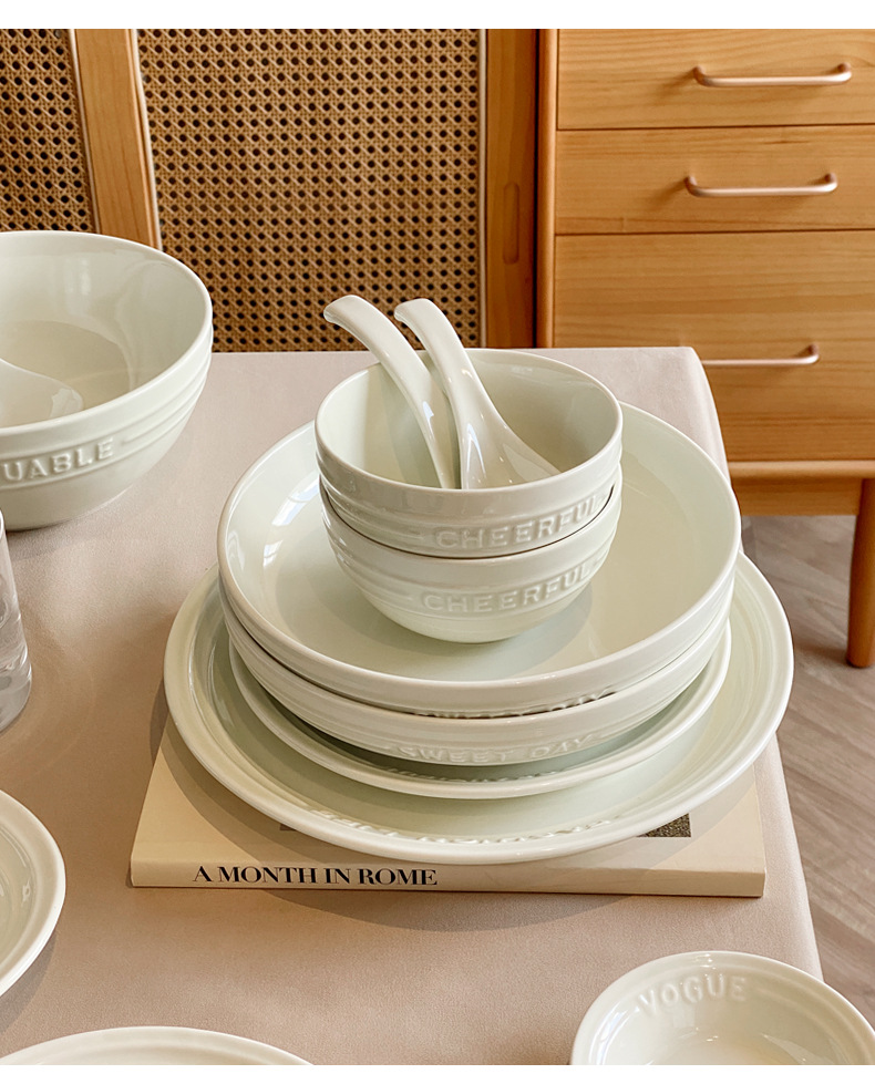Trufa alivio blanco artesanía tazón de cerámica placa combinación simple ins ensalada plato bajo vidriado vajilla hogar