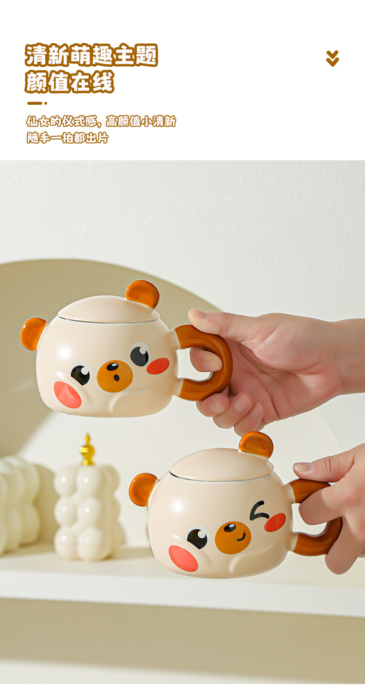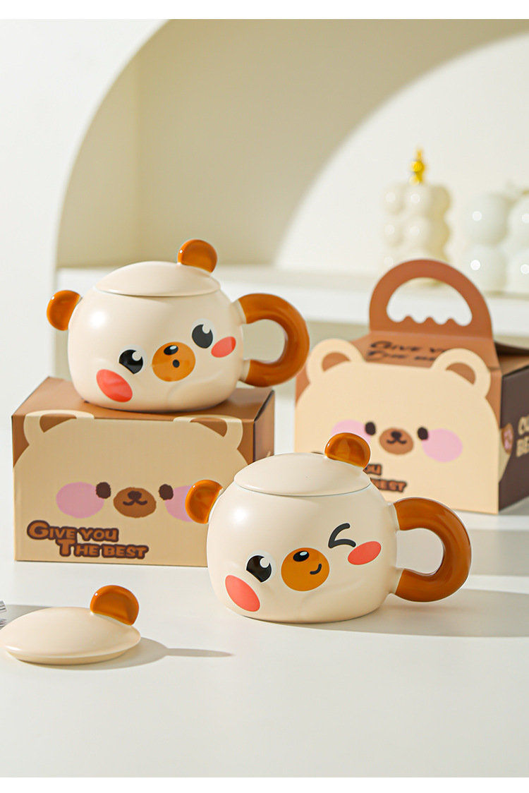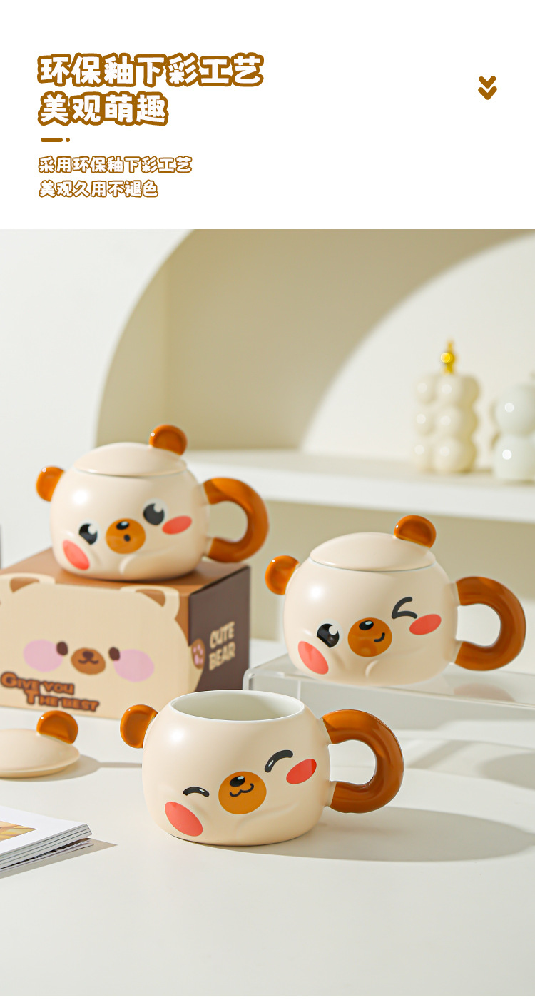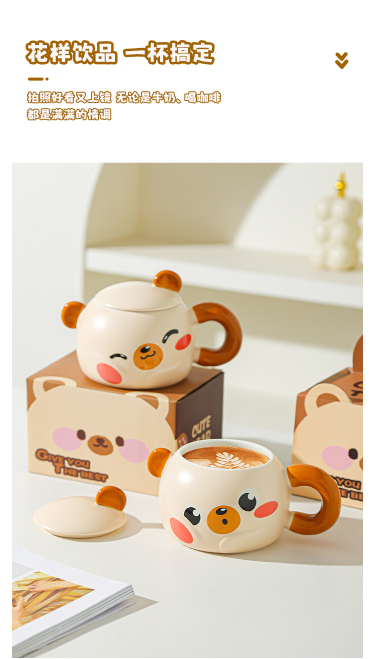 Taza de cerámica creativa de dibujos animados con tapa para desayuno casero de pareja de niños de alto valor de cara para acompañantes de regalo de taza