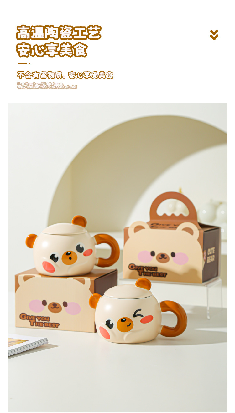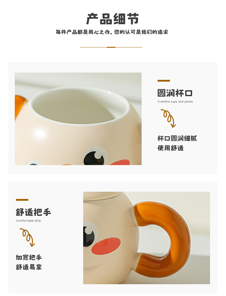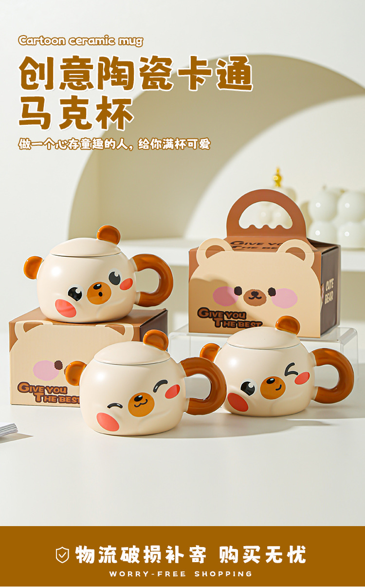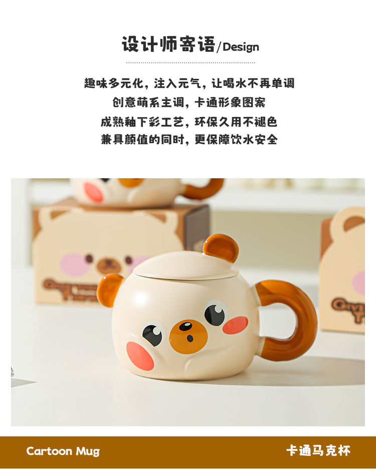 Taza de cerámica creativa de dibujos animados con tapa para desayuno casero de pareja de niños de alto valor de cara para acompañantes de regalo de taza