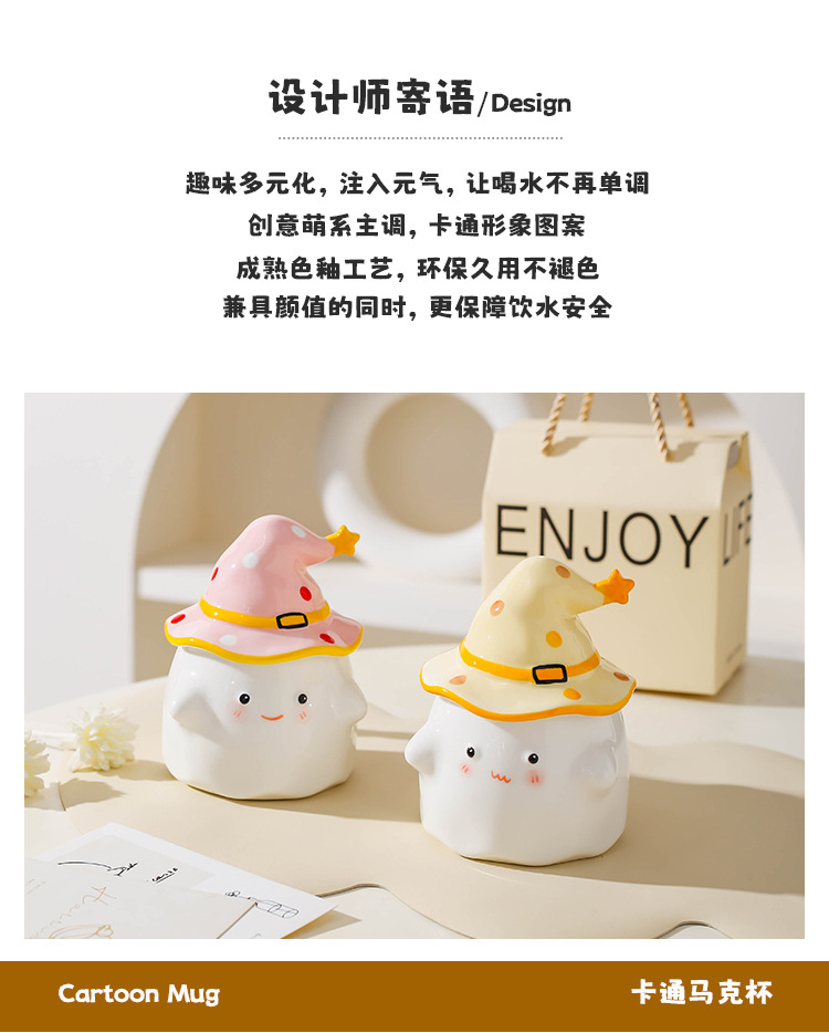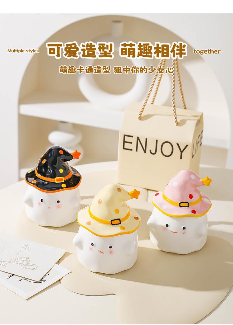 Regalos de cumpleaños fantasma extraña taza de cerámica con tapa taza de regalo de nicho mano taza de regalo regalo de Halloween