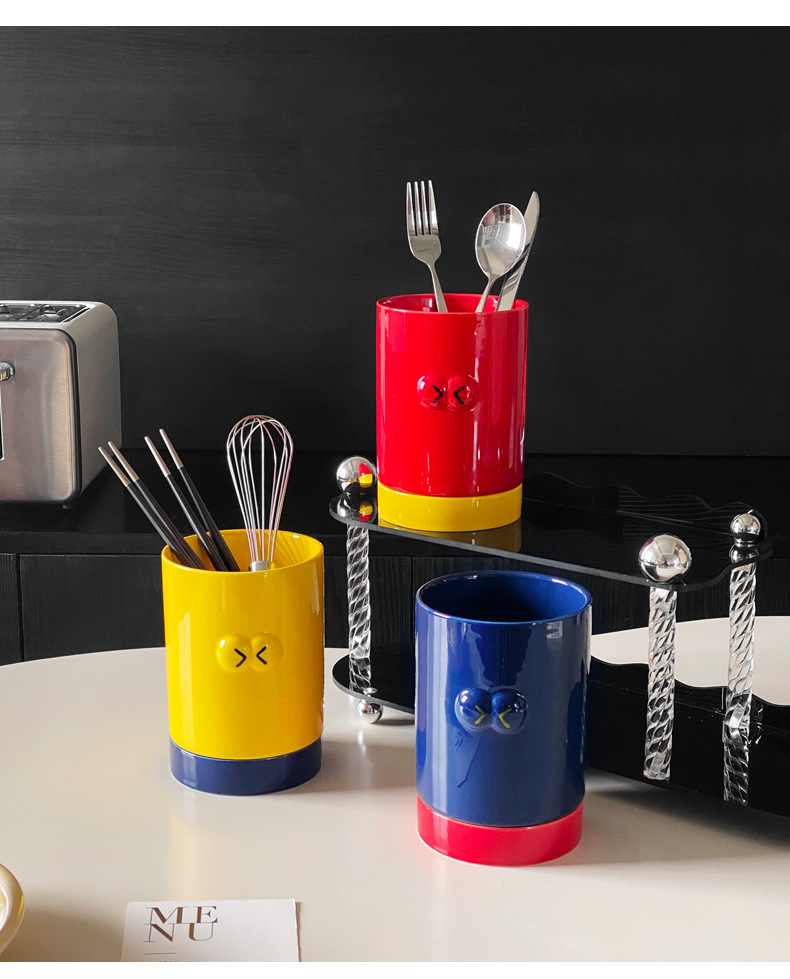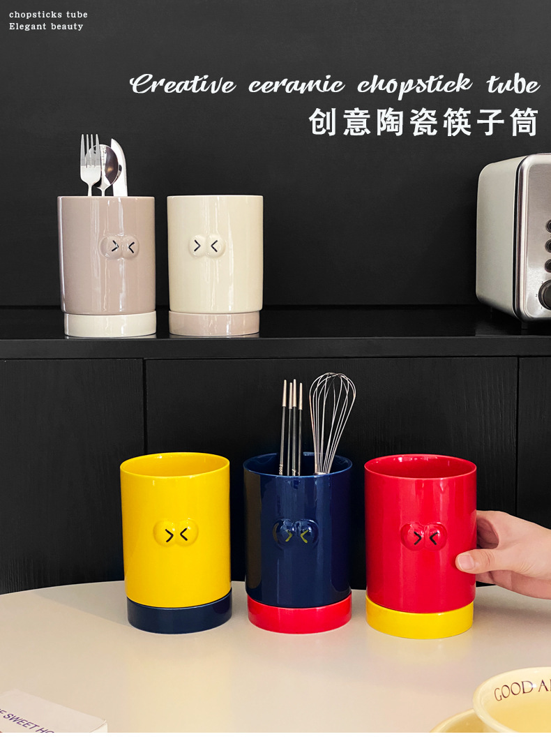 Shangn nuevo Mondrian cerámica de cocina palillos estante palillos jaula cuchillos y tenedores caja de almacenamiento de cocina drenaje
