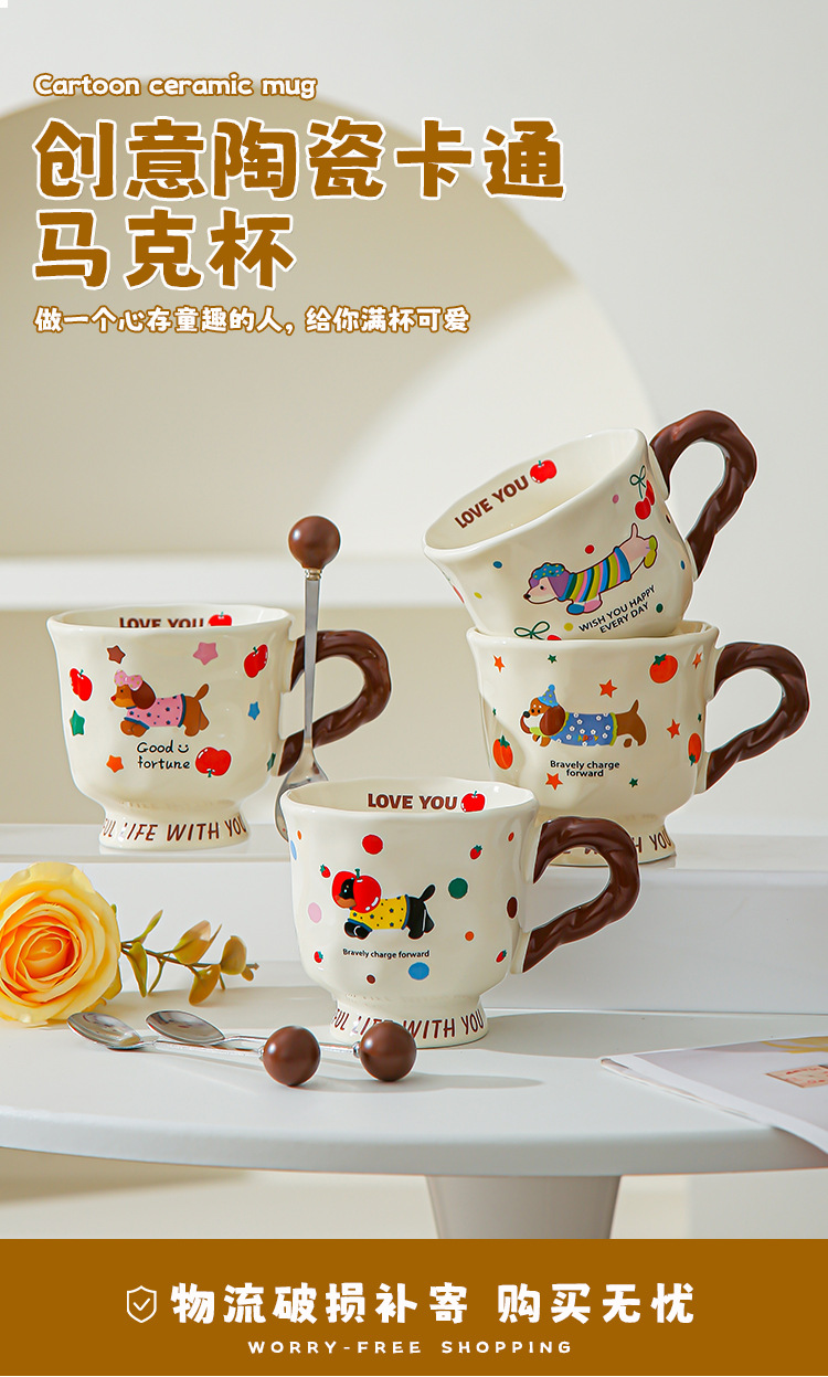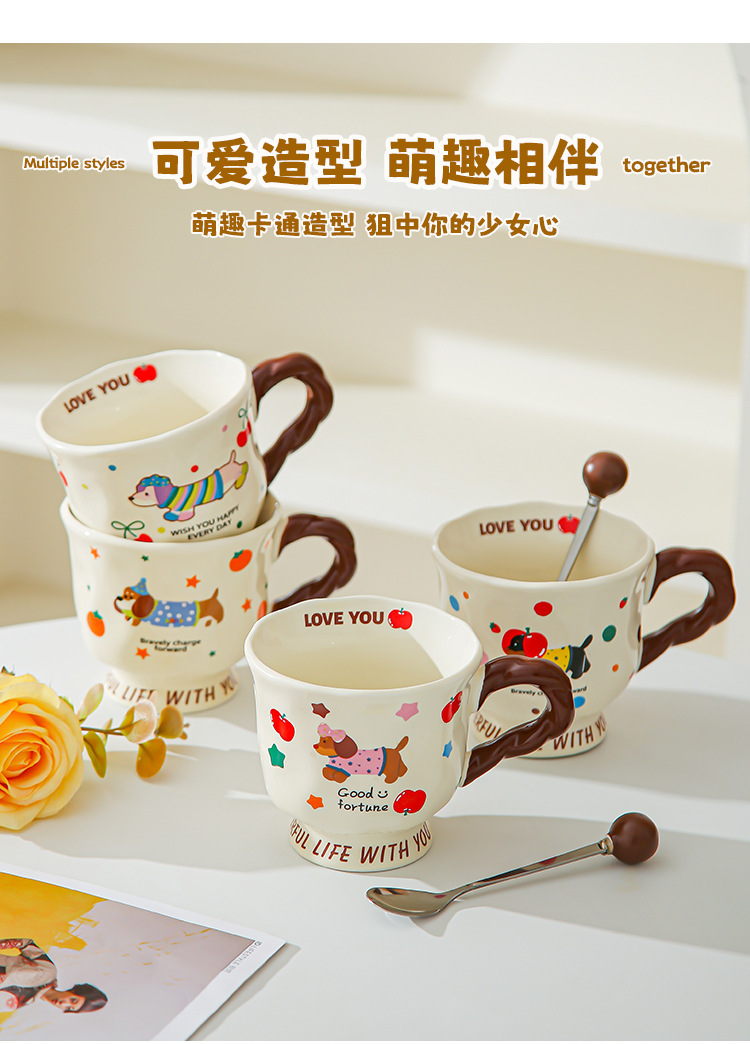 Creativo lindo salchicha cerámica taza taza de pareja taza de agua taza de café casera regalo de cumpleaños para amigos