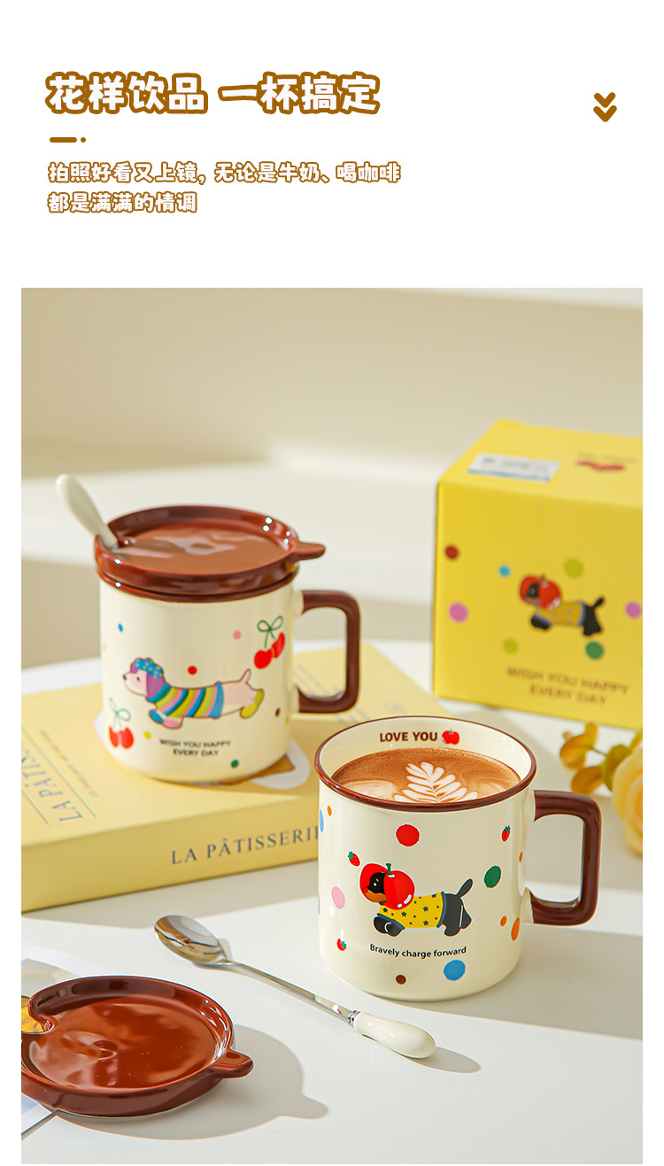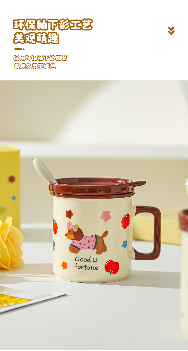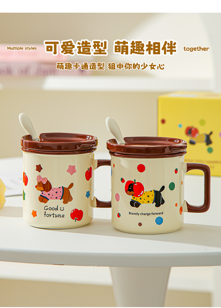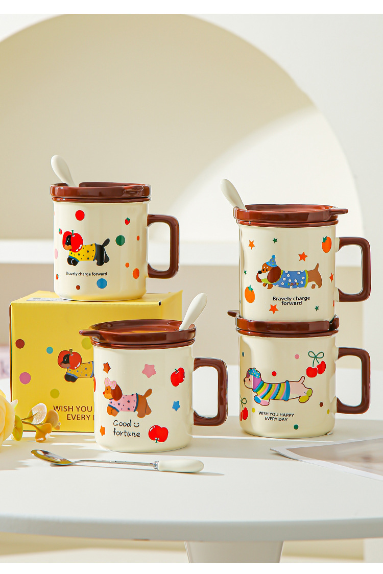 Cute cachorro de oficina taza de cerámica doméstica con cubierta cucharas de desayuno de estudiantes de niñas tazas de agua para beber tazas de café pareja