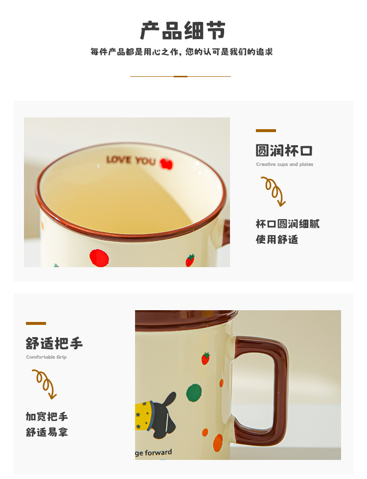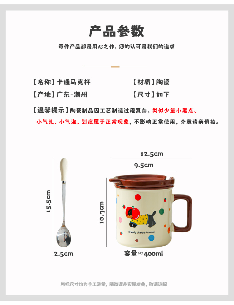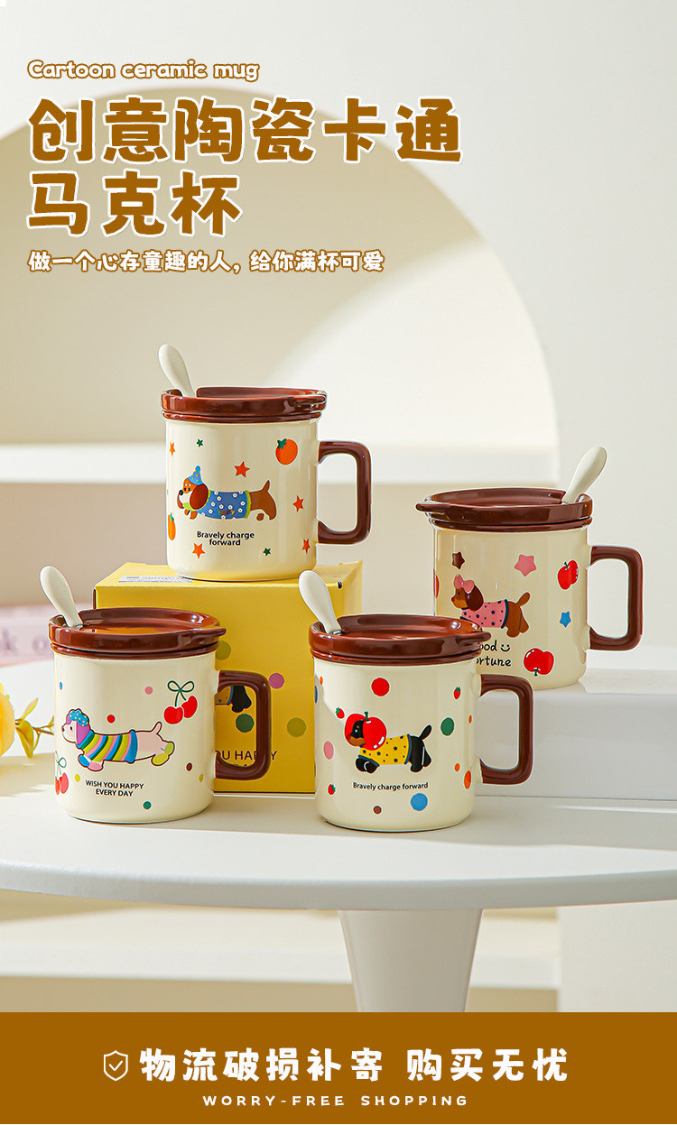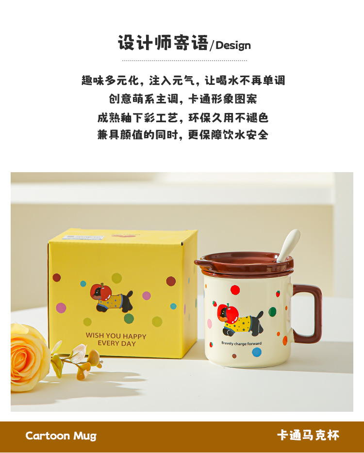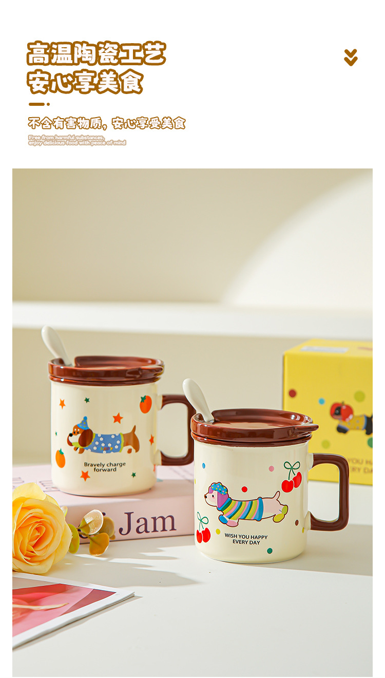 Cute cachorro de oficina taza de cerámica doméstica con cubierta cucharas de desayuno de estudiantes de niñas tazas de agua para beber tazas de café pareja