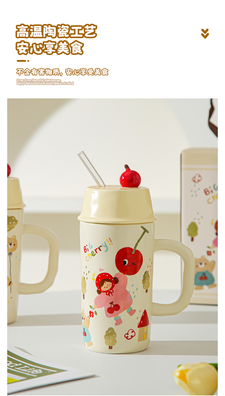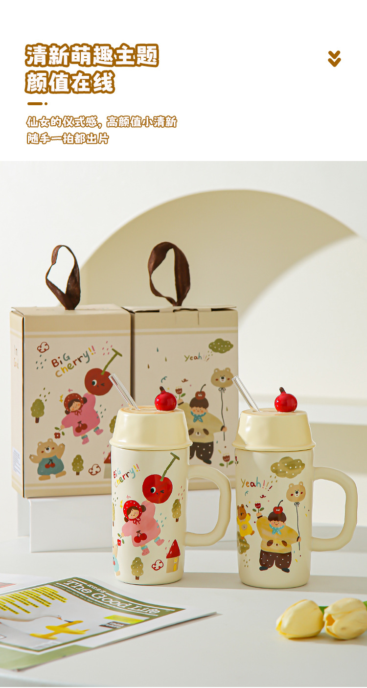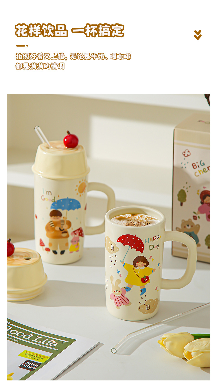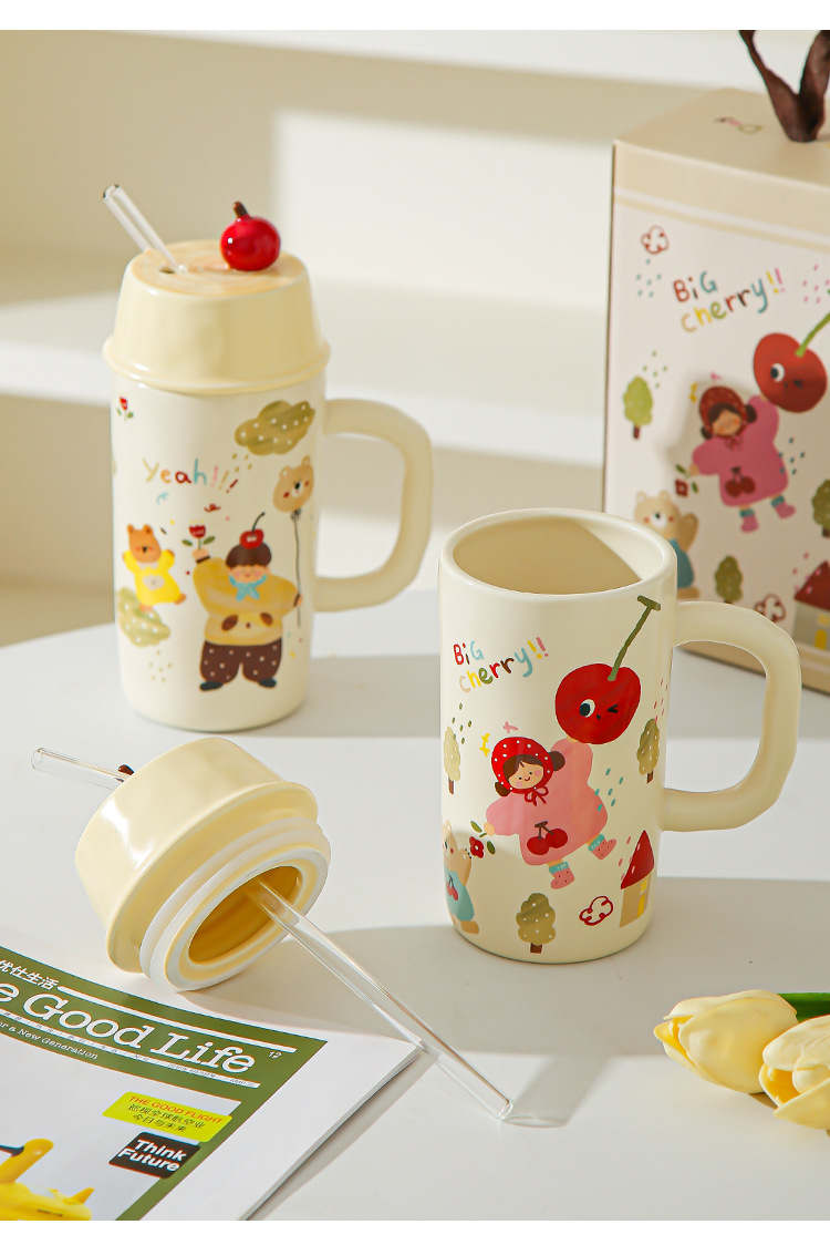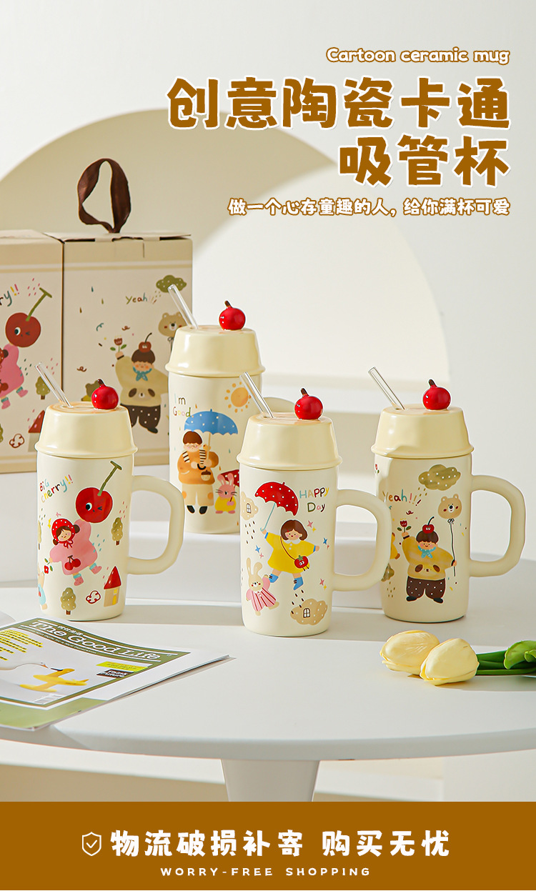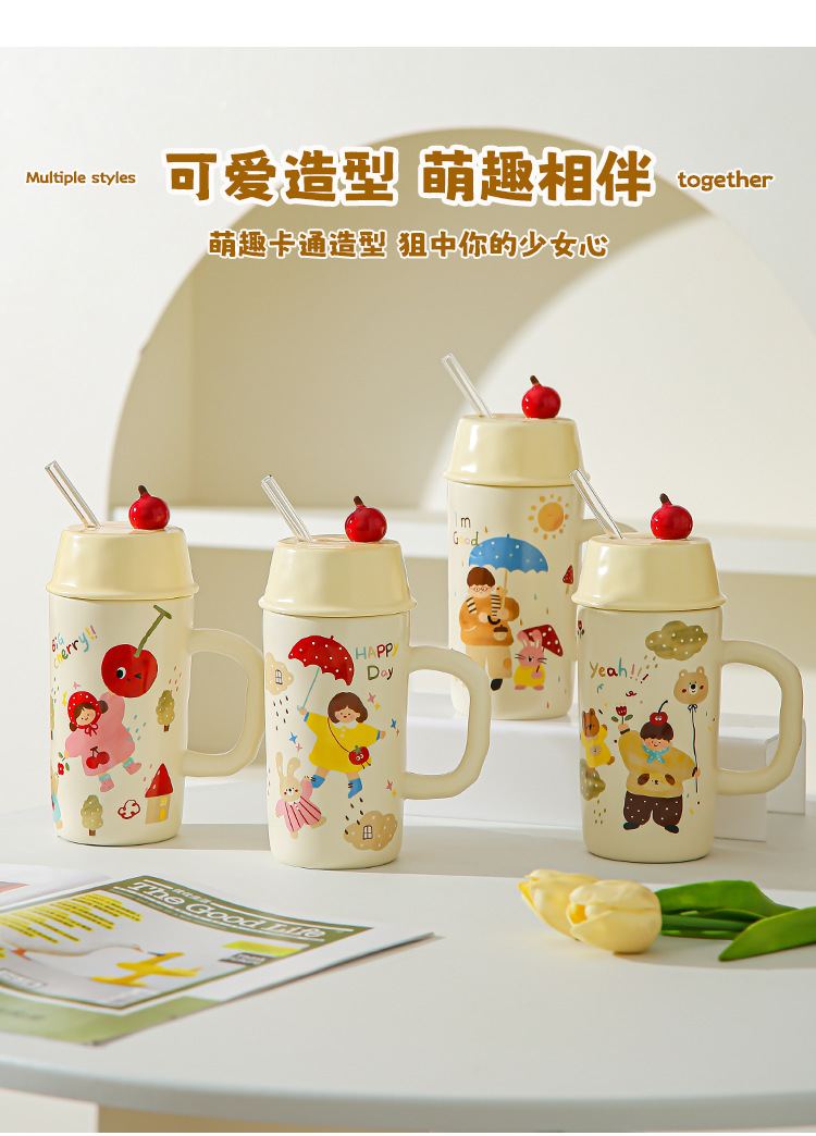 Caricatura creativa para niños y niñas tazas de cerámica con cubierta de paja para parejas tazas de agua taza de leche taza de desayuno regalo