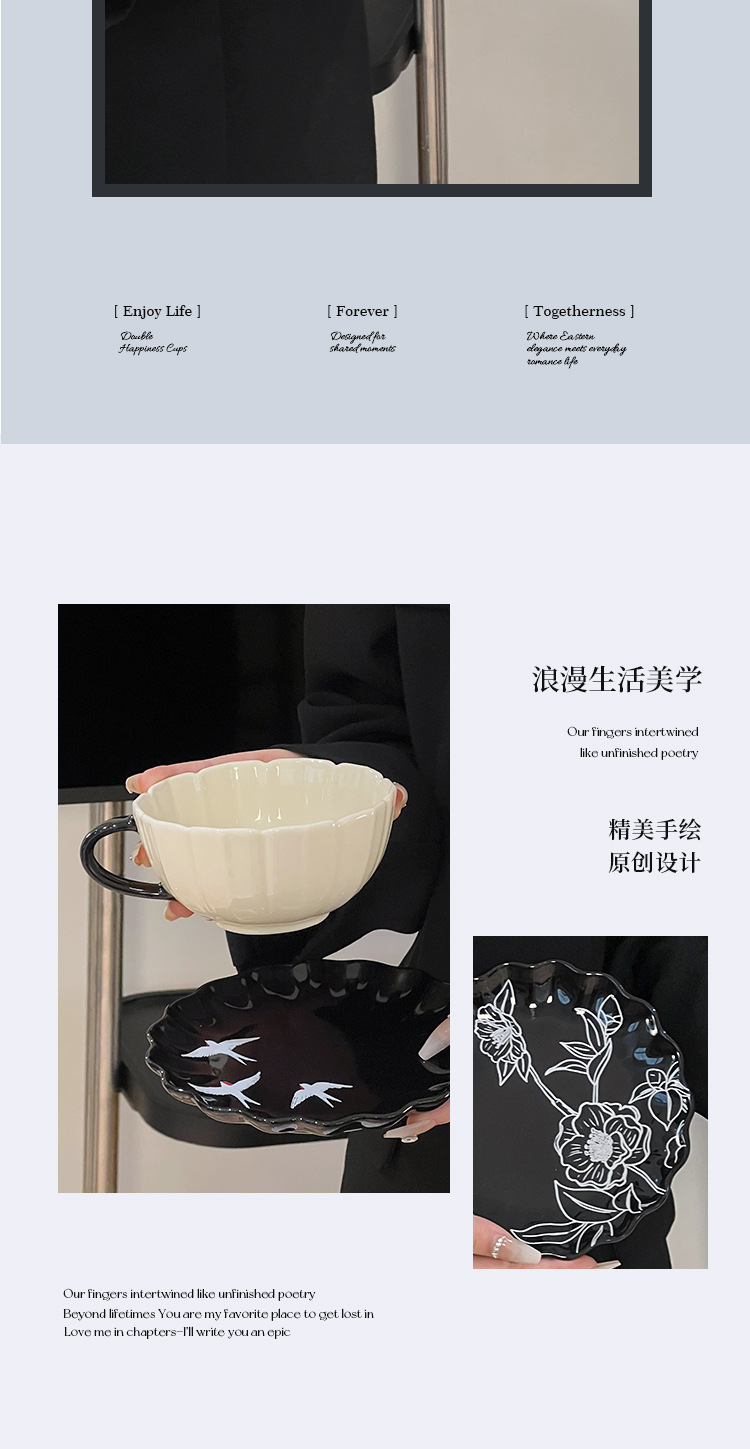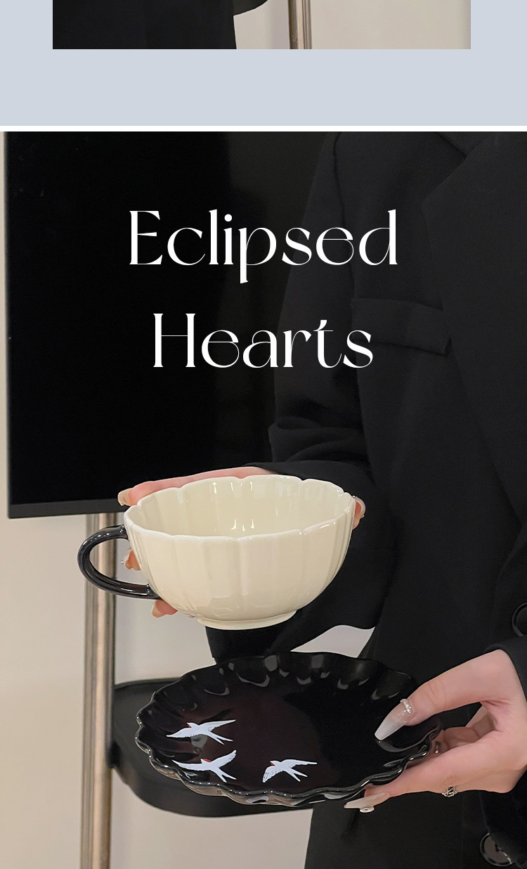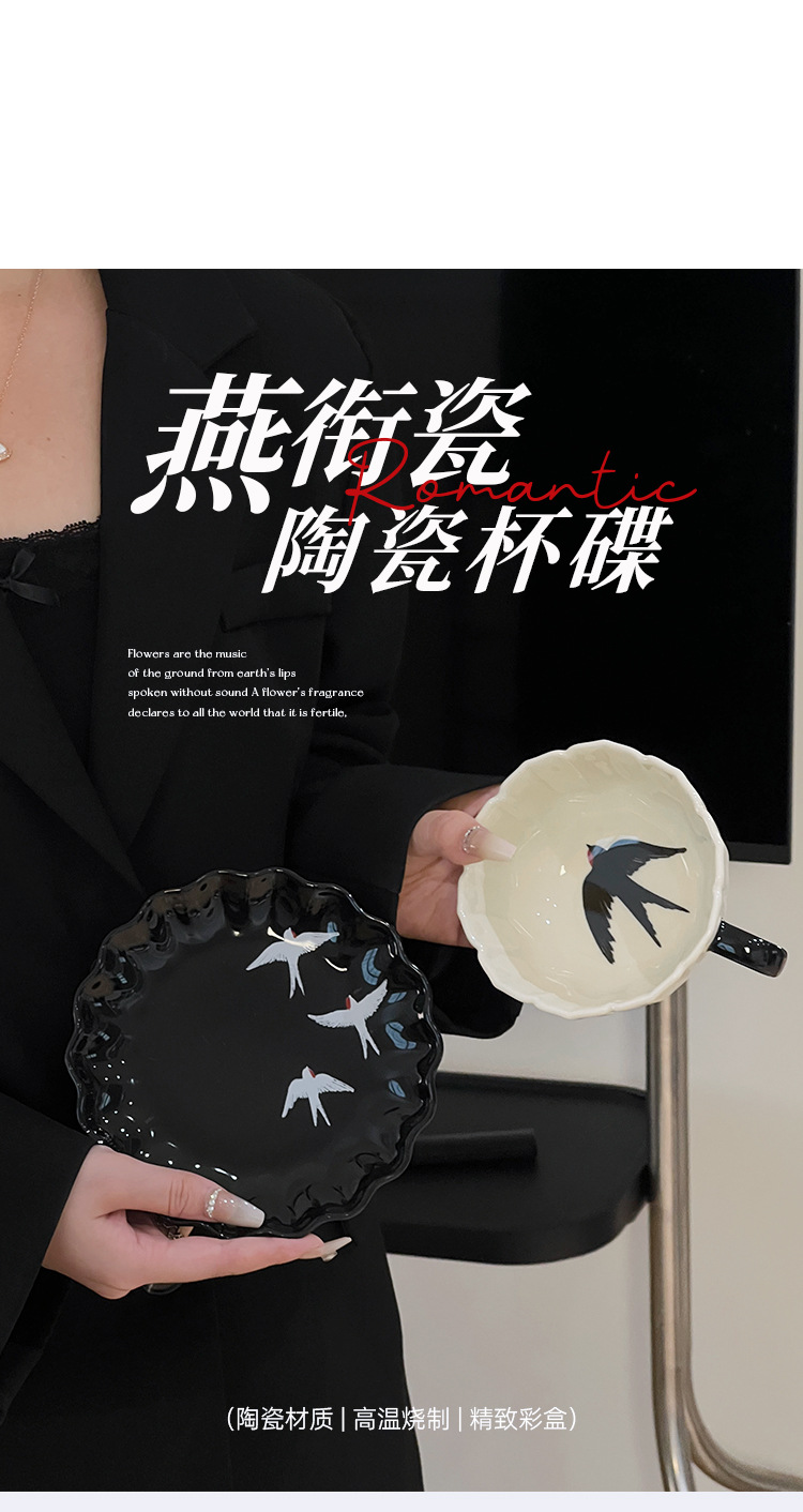 estilo japonés estilo de alto valor de la cara cubiertos retro relieve pintado a mano golondrina plato de cerámica plato oval de desayuno taza de café plato de aperitivo
