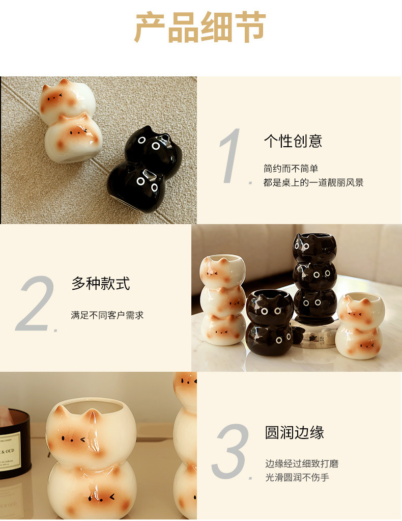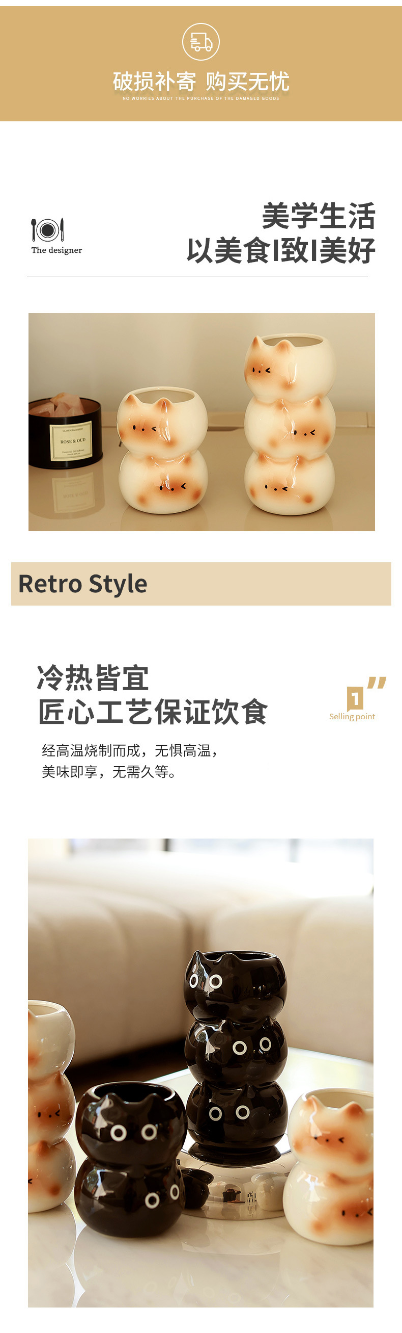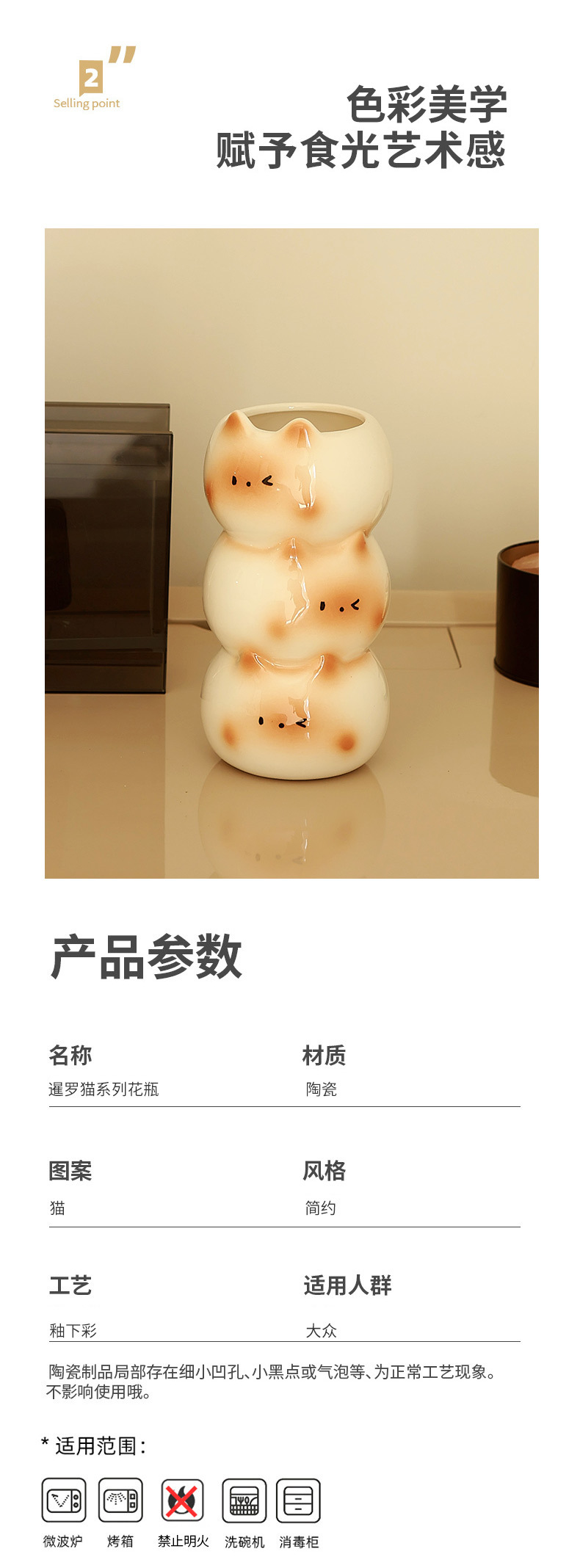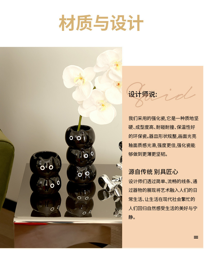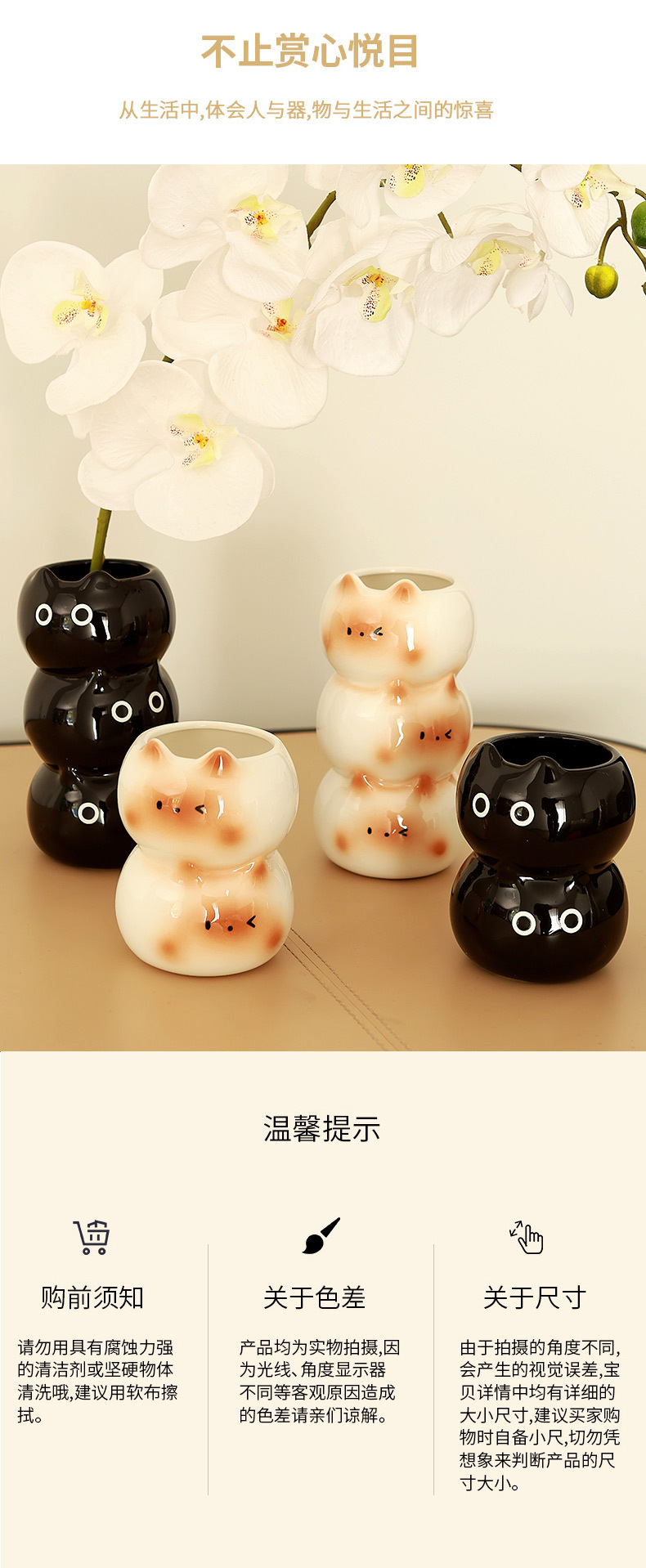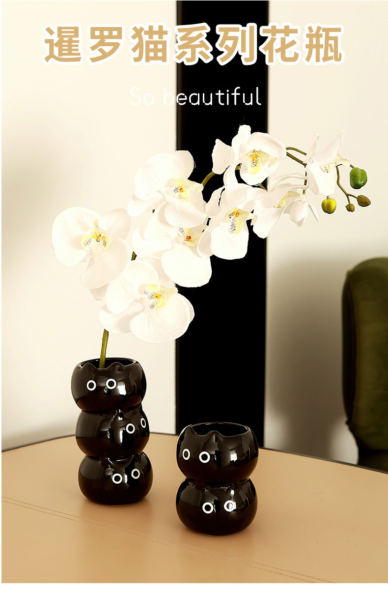 Lindo gato siamés, creativo, jarrón de alto valor, lujo ligero, decoración de la sala de estar, jarrón, flores artificiales, adornos de rosas