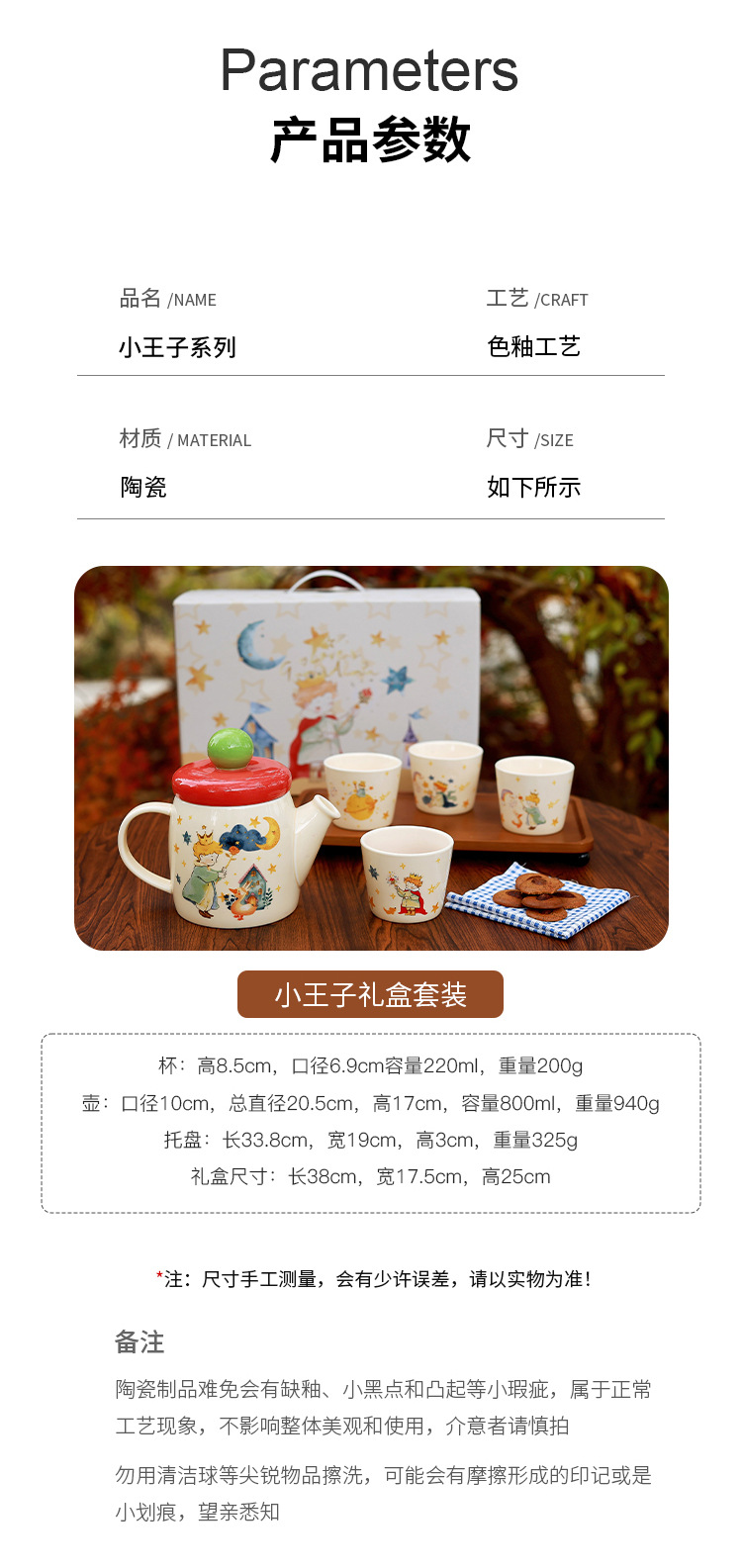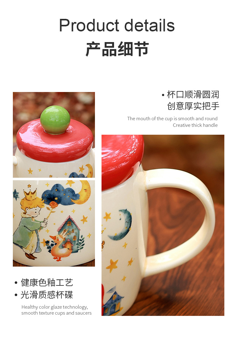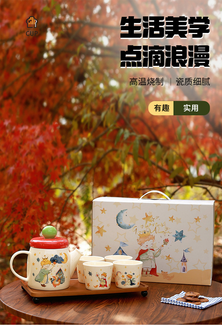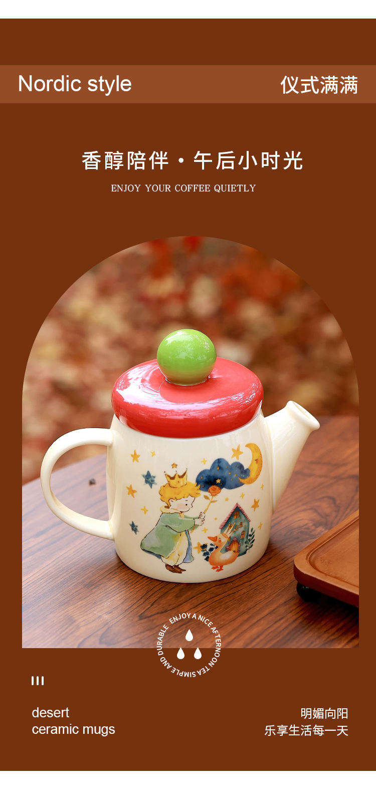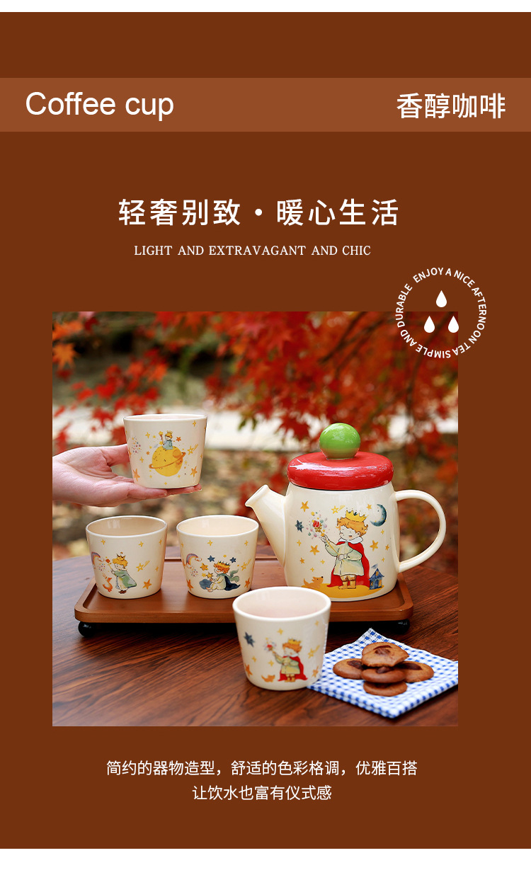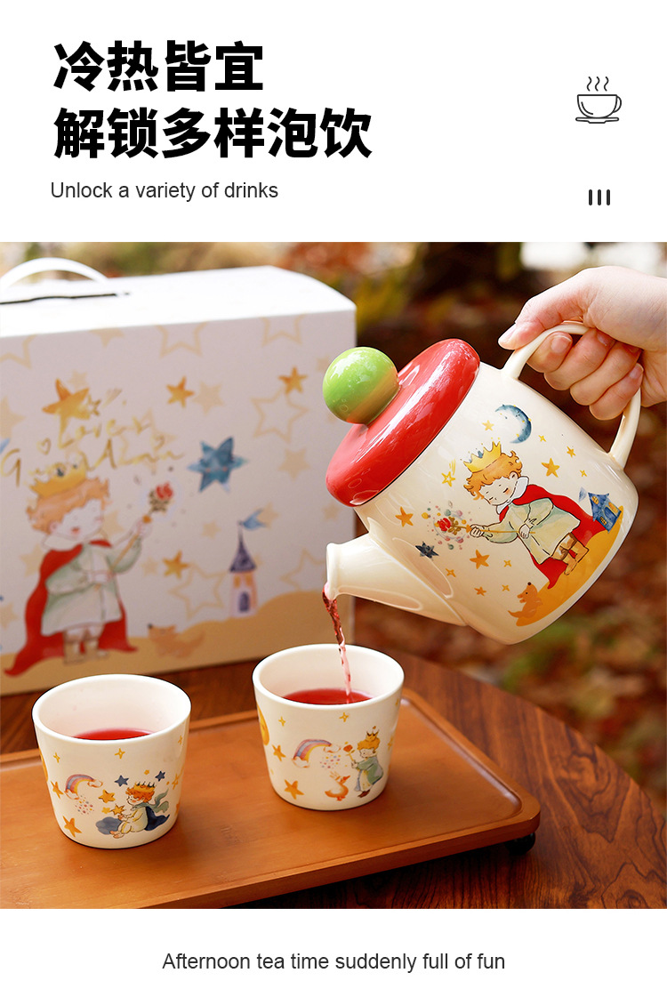 Juego de té de cerámica Principito de dibujos animados, regalo de mano, taza de casa nueva, taza de té de agua de alto valor creativo