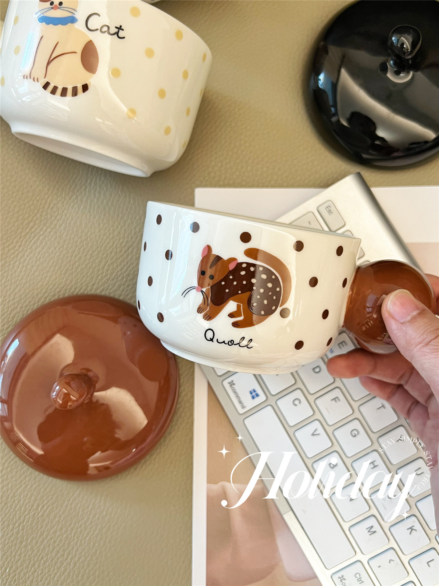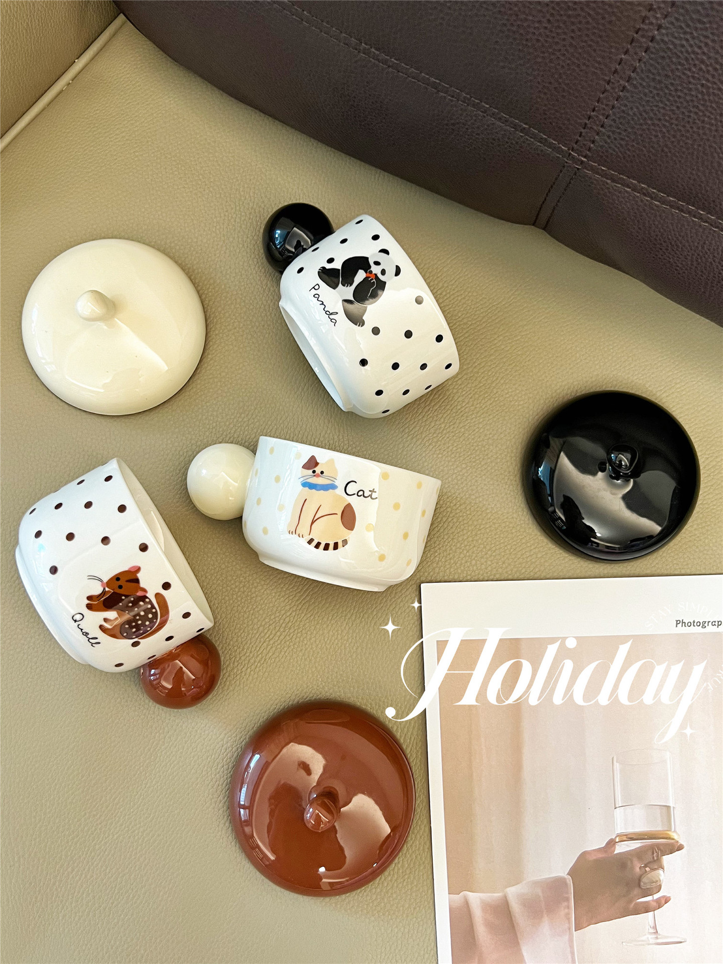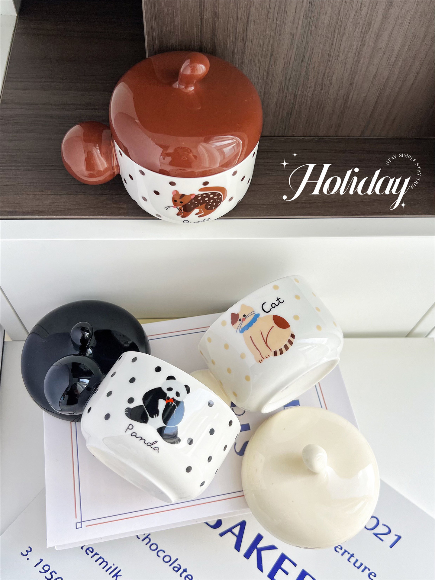 Caricatura encantadora serie de caramelo de cerámica taza de copa con cubierta de oficina dormitorio de niñas taza de agua bebida taza de regalo