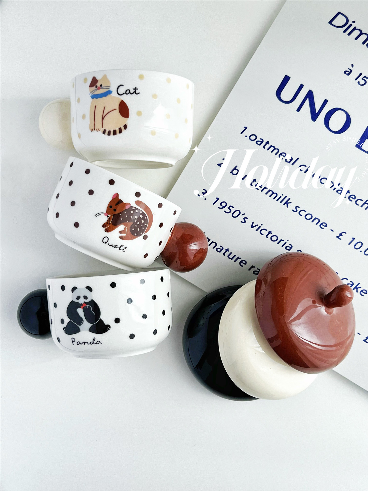 | Color | Taza con tapa / gato crema, taza con tapa / ratón de café, taza con tapa / panda blanco y negro |