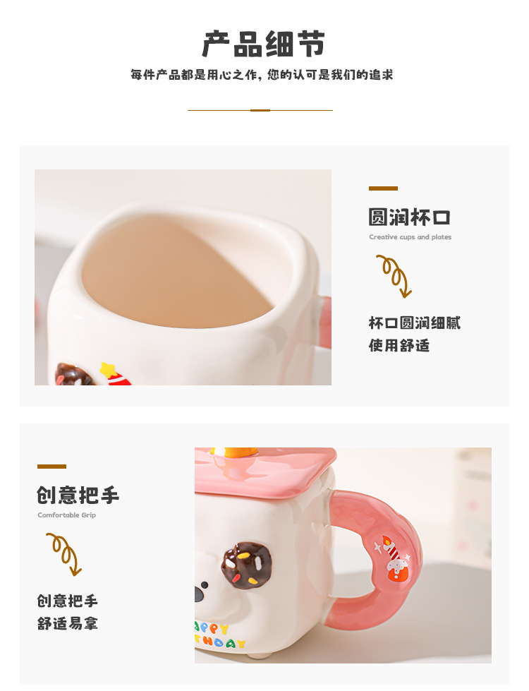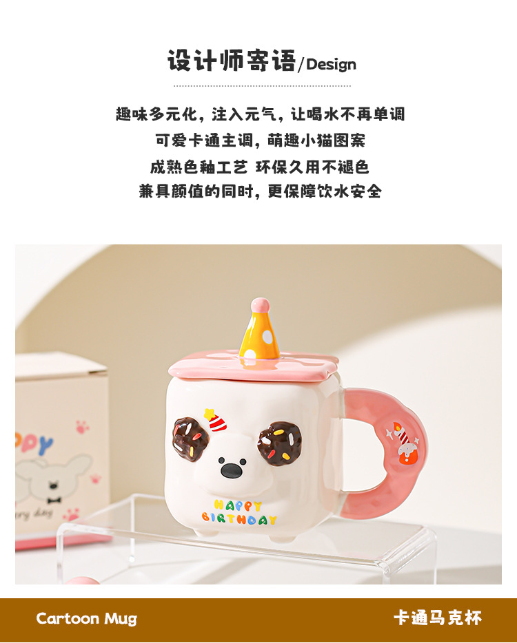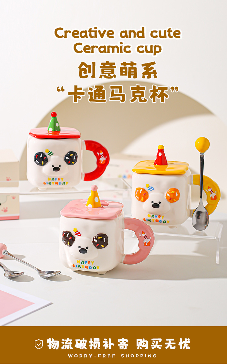 Caricatura encantadora, taza de animales, regalo de cumpleaños, taza de cerámica, taza de desayuno de leche casera