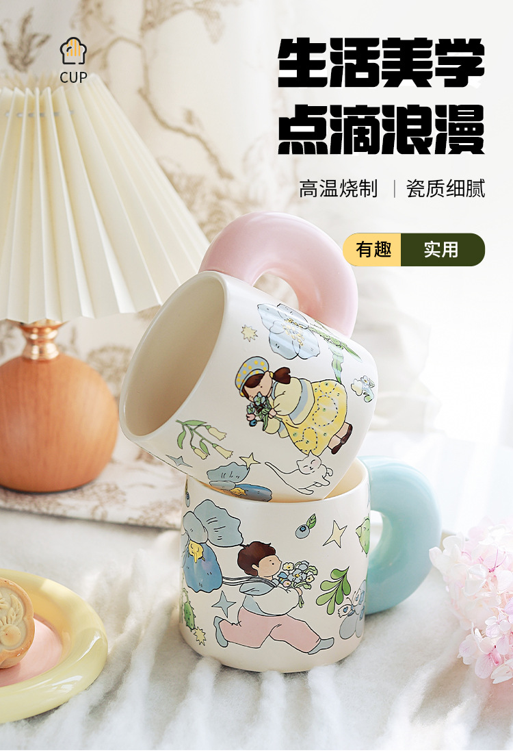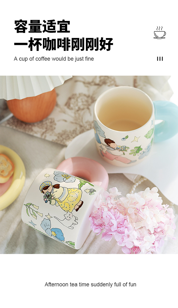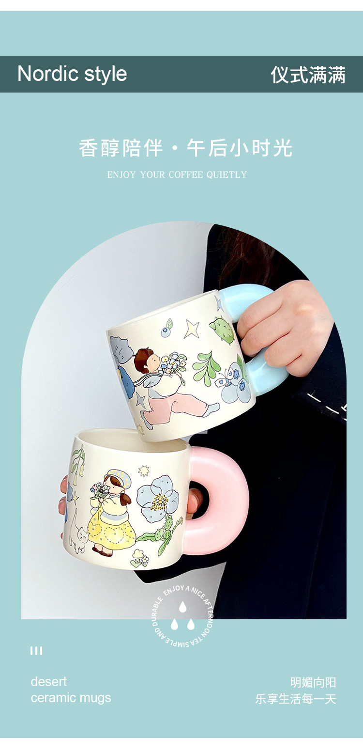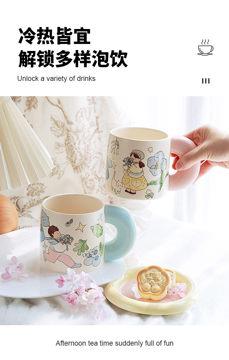 Estilo pastoral japonés envío de flores a los niños taza de cerámica pareja de dibujos animados flor taza de café de alto valor linda taza