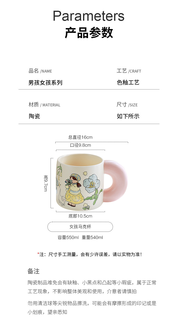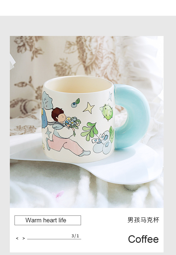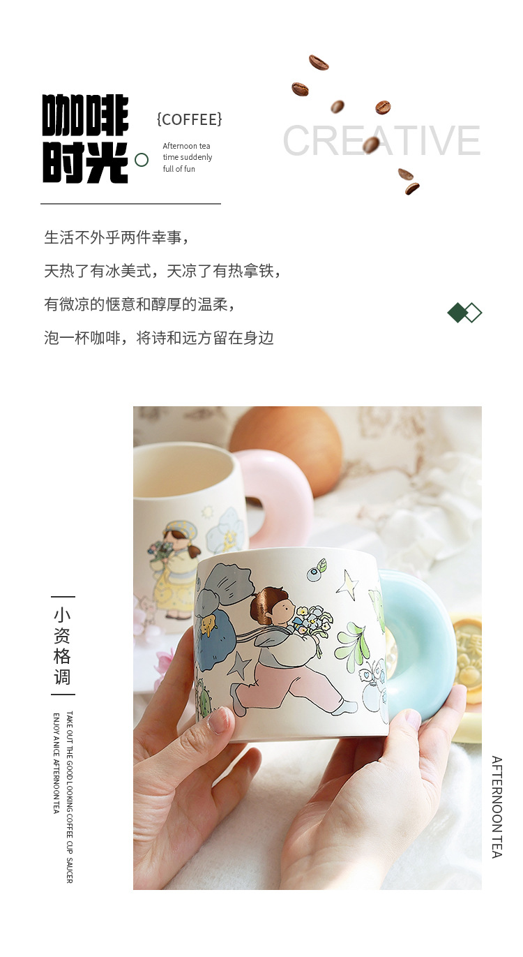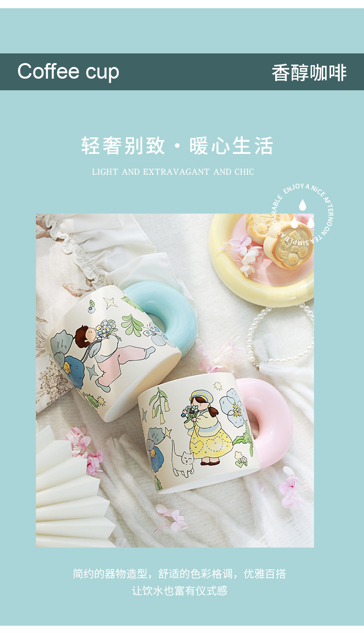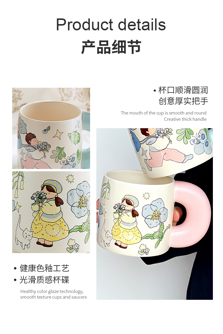 Estilo pastoral japonés envío de flores a los niños taza de cerámica pareja de dibujos animados flor taza de café de alto valor linda taza
