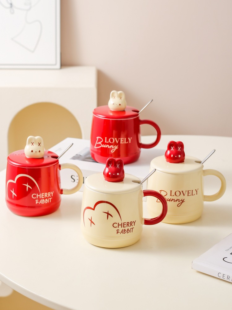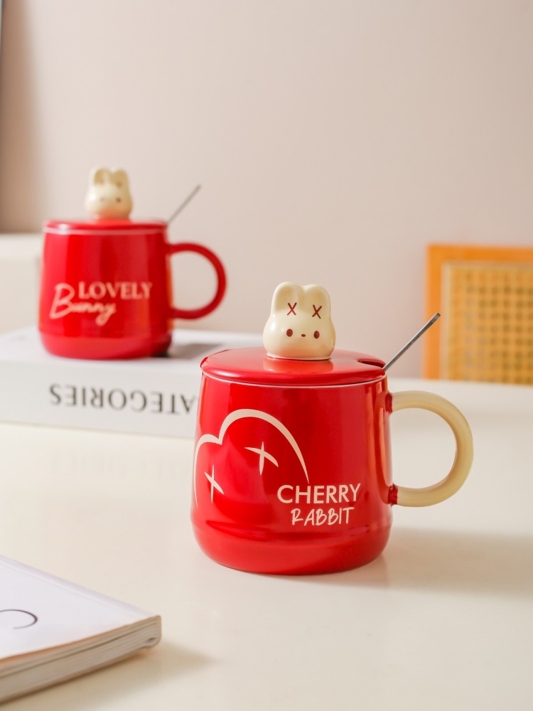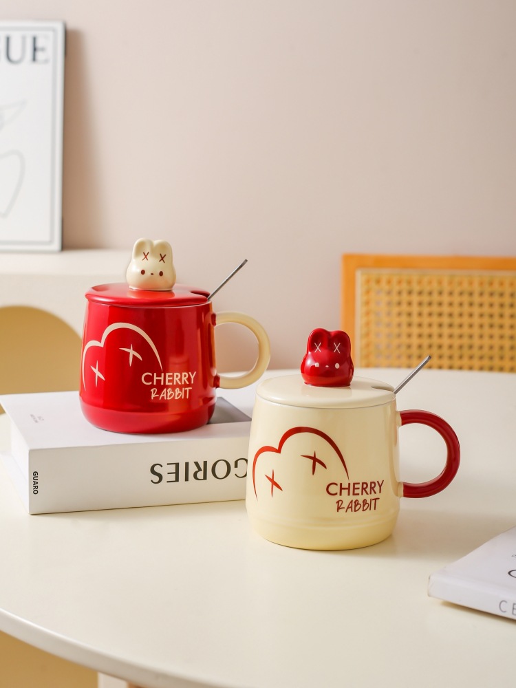 Caricatura encantadora conejo cerámica taza de leche casera taza de desayuno con tapa de regalo taza de agua taza de café pareja
