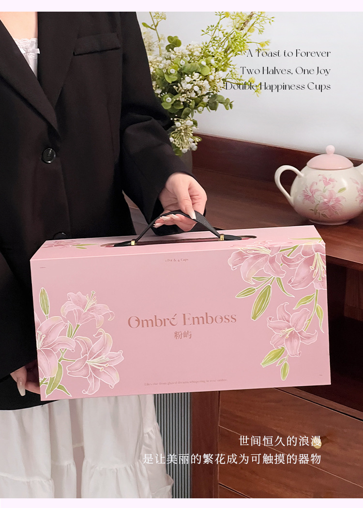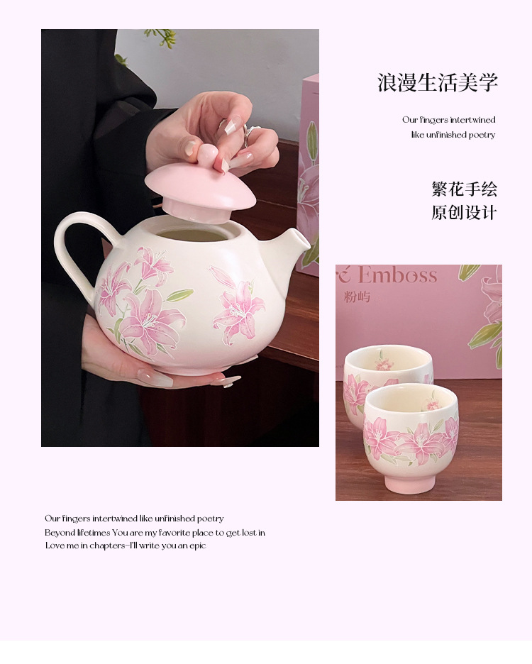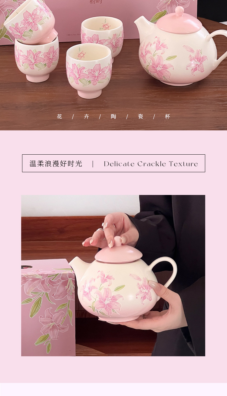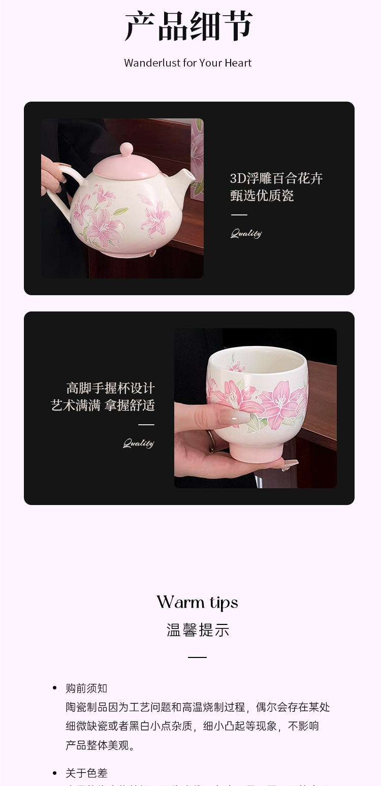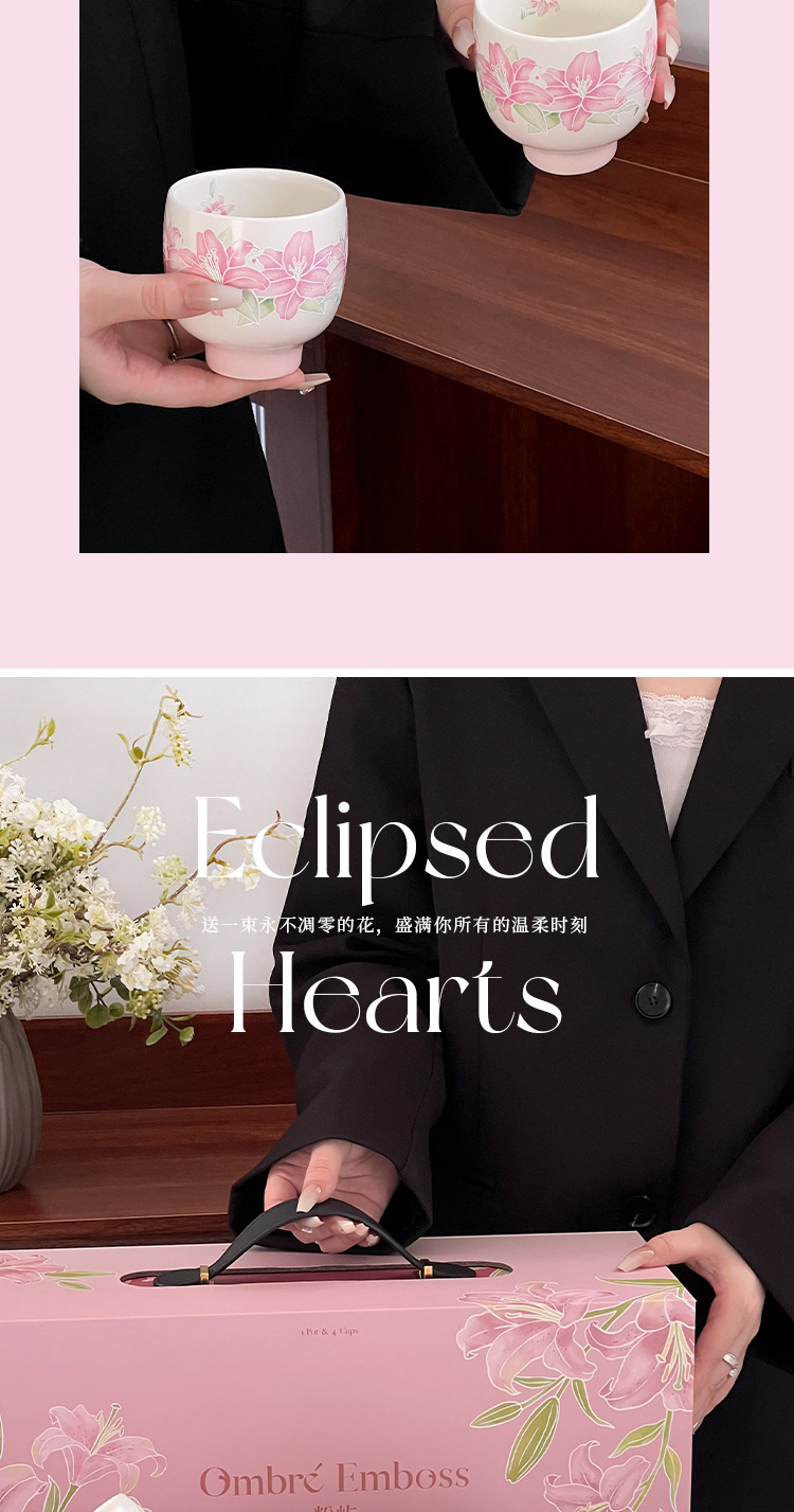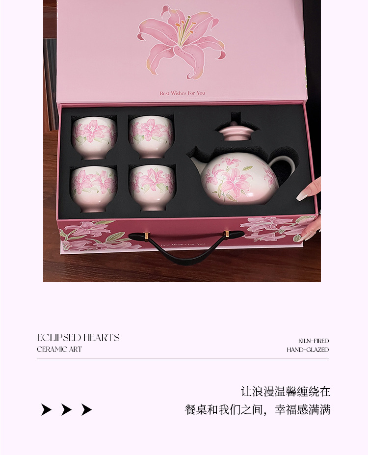 Conjunto de té de cerámica de Shang 'en, taza de cerámica de té doméstica, caja de regalo doméstica en relieve, conjunto de té de lirio.