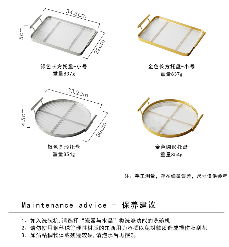 Shanen Luz de lujo binaural bandeja ins estilo hogar bandeja redonda taza de té bandeja de té SALA DE AGUA bandeja de almacenamiento