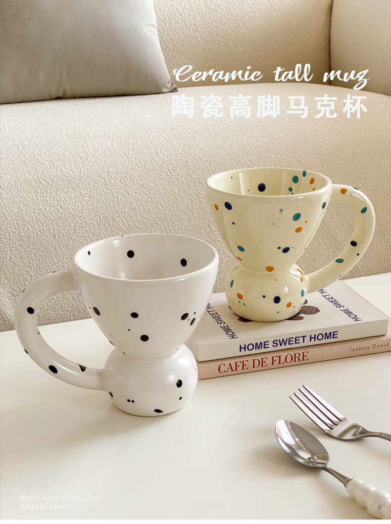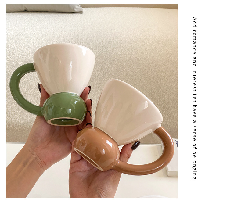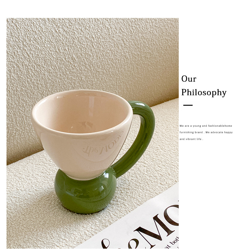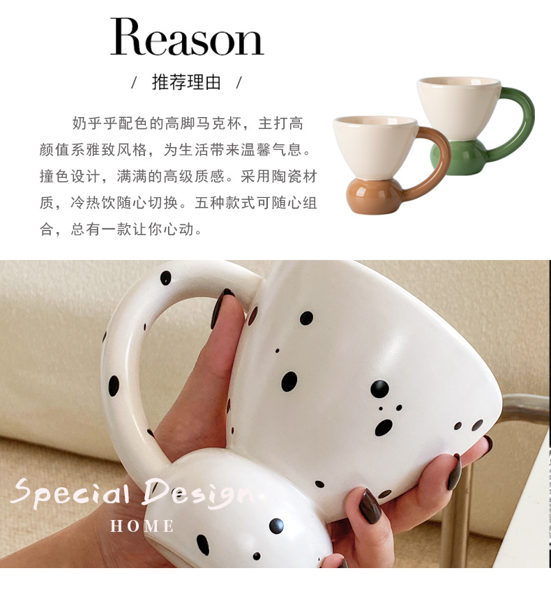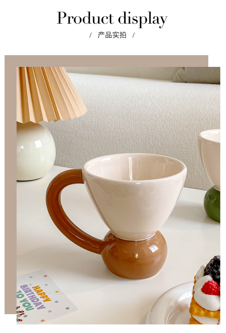 Retro marrón de la leche de alta pierna taza de agua de cerámica nicho sentido diseño hogar mango grande taza de desayuno caja de color resistente a altas temperaturas