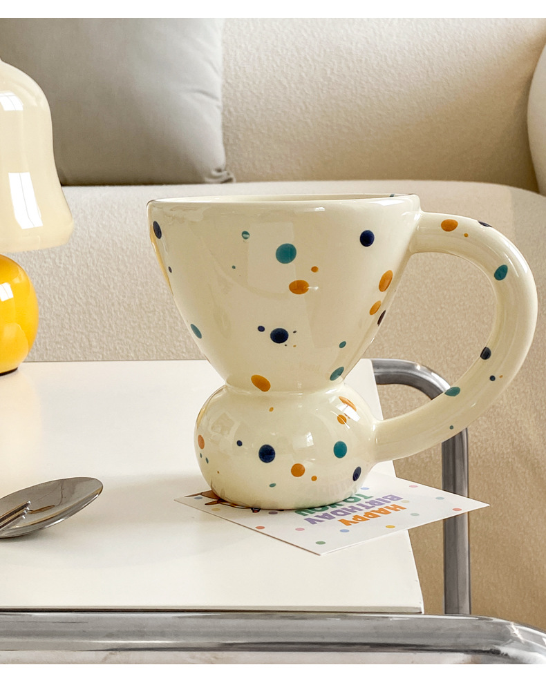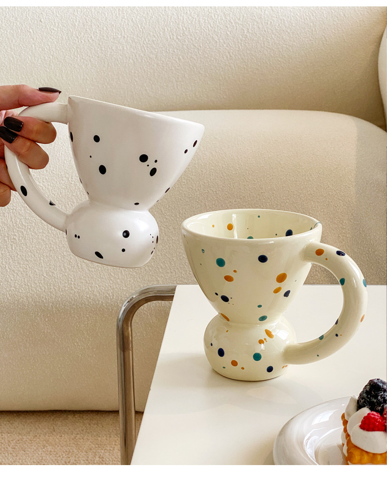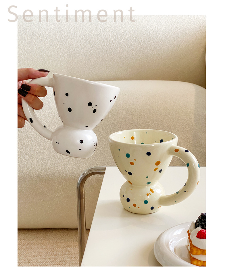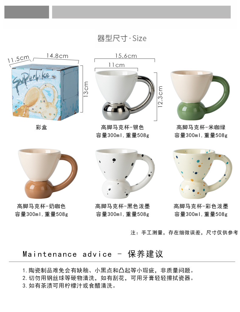 Retro marrón de la leche de alta pierna taza de agua de cerámica nicho sentido diseño hogar mango grande taza de desayuno caja de color resistente a altas temperaturas