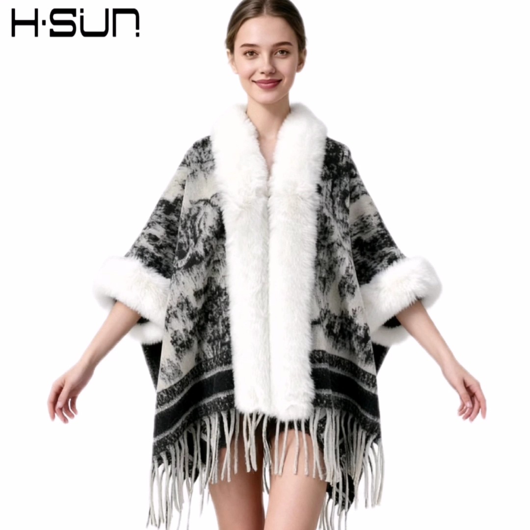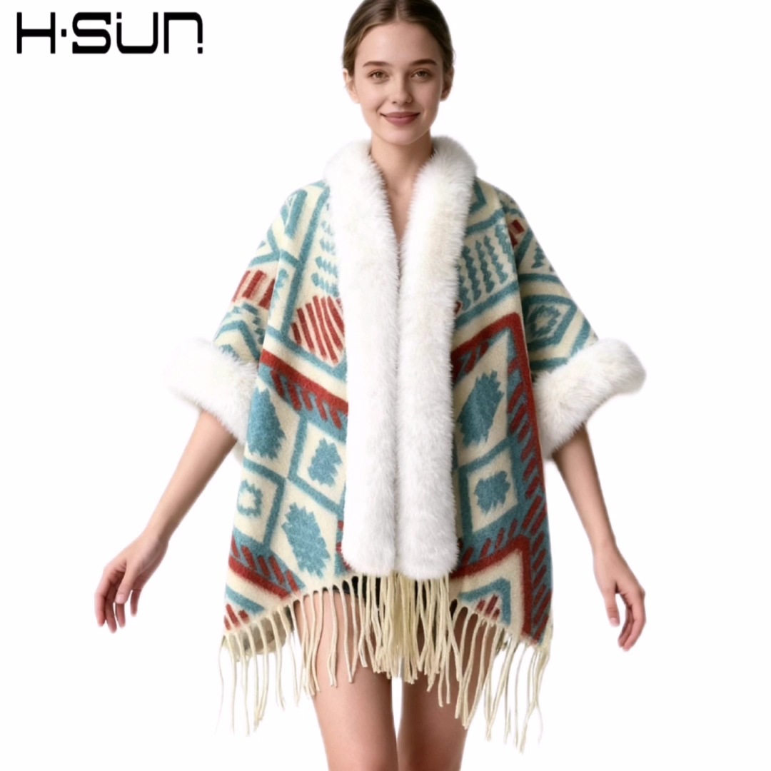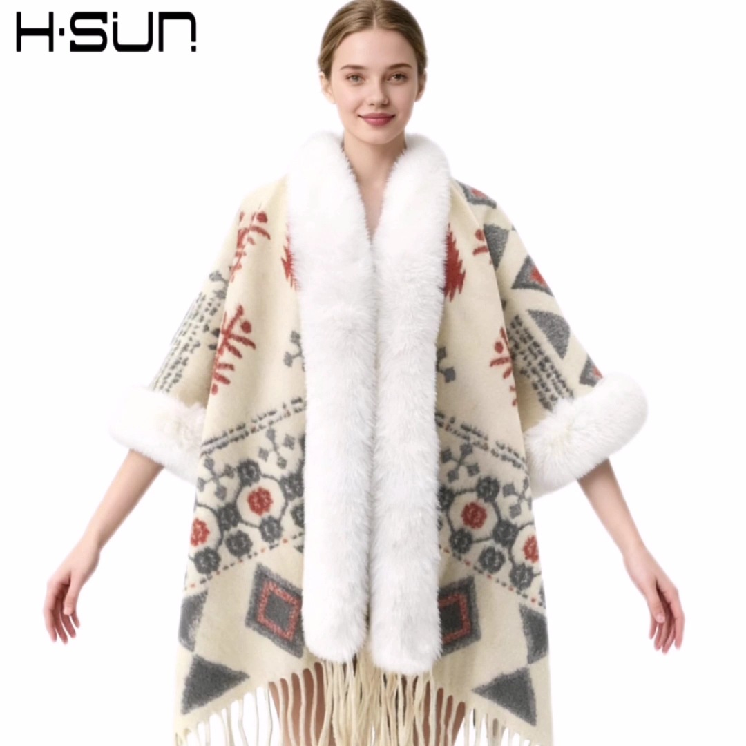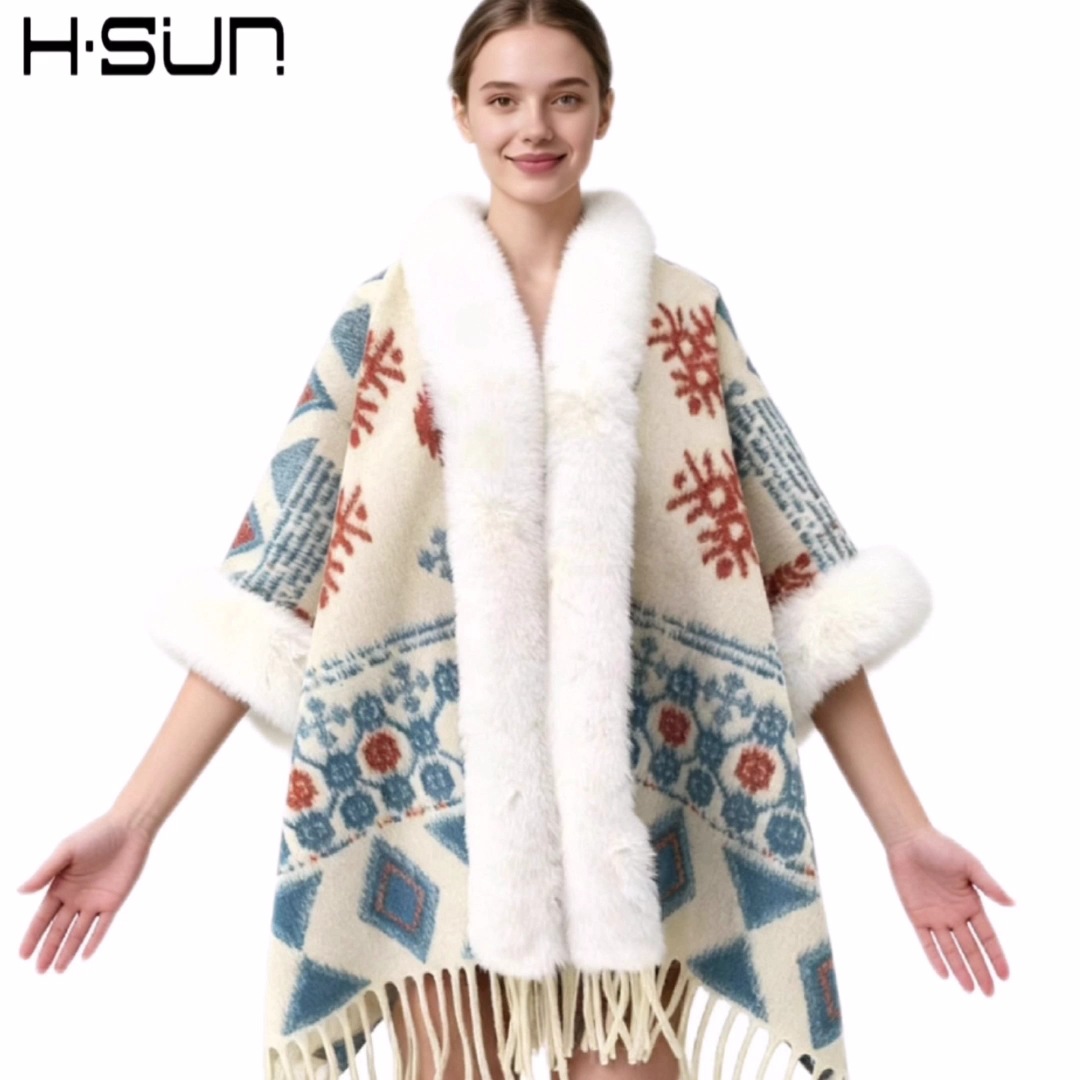 Nuevo punto de alta sensación capa de chal retrógrado elegante estilo nacional lana chal cálido estilo nacional universal
