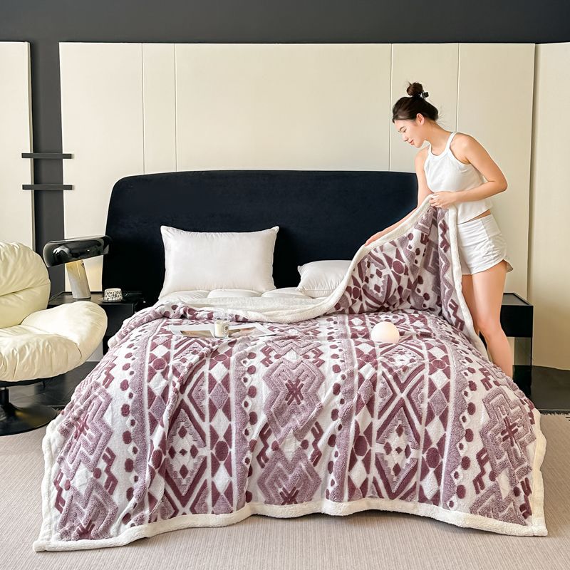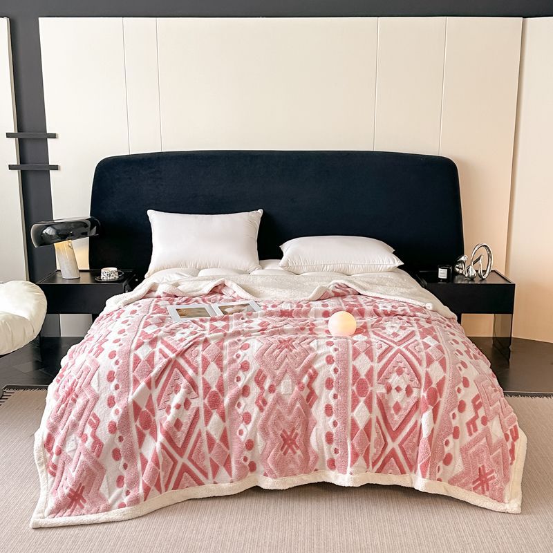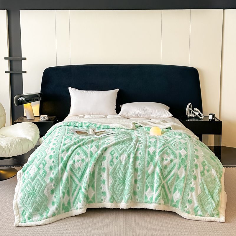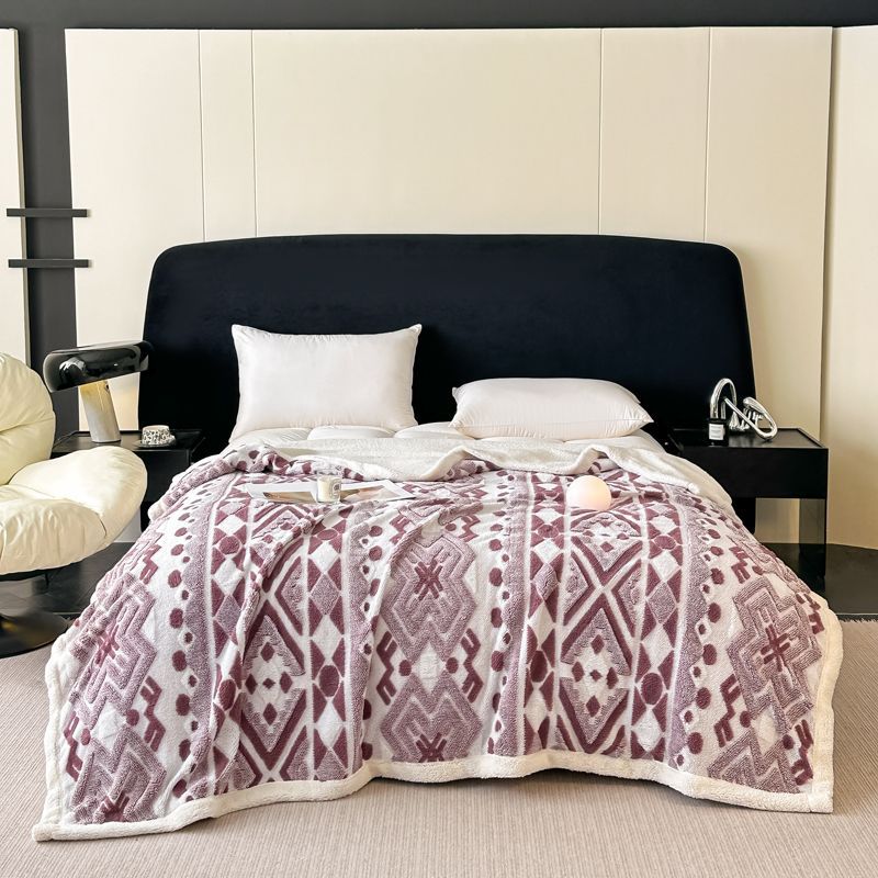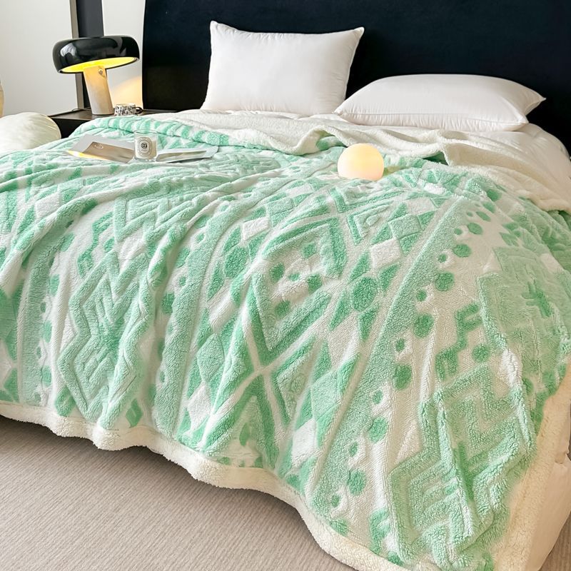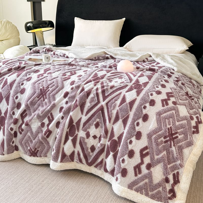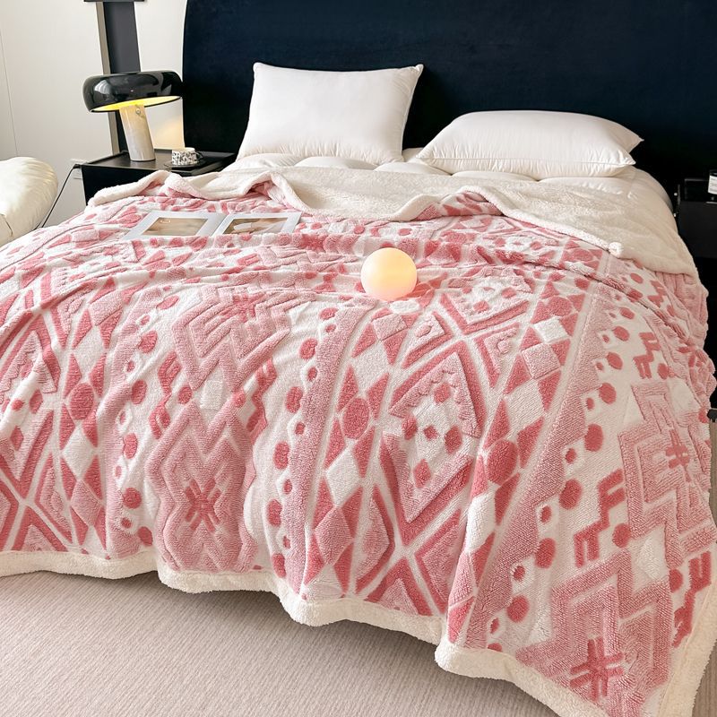 Jacquard catiónico de tres colores de doble capa de cordero manta multifoncional manta de sofá bohemio mantas de calor de bloqueo