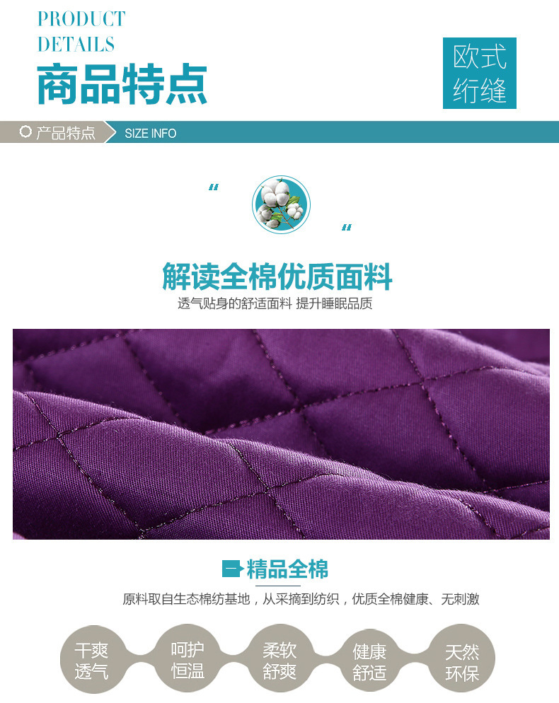| Especificaciones de tamaño | 200 * 230cm - cubierta de colcha, 245 * 260cm - cubierta de cama única, 48 * 74cm funda de almohada / par, 245 * 260cm cubierta de cama de cuatro piezas |