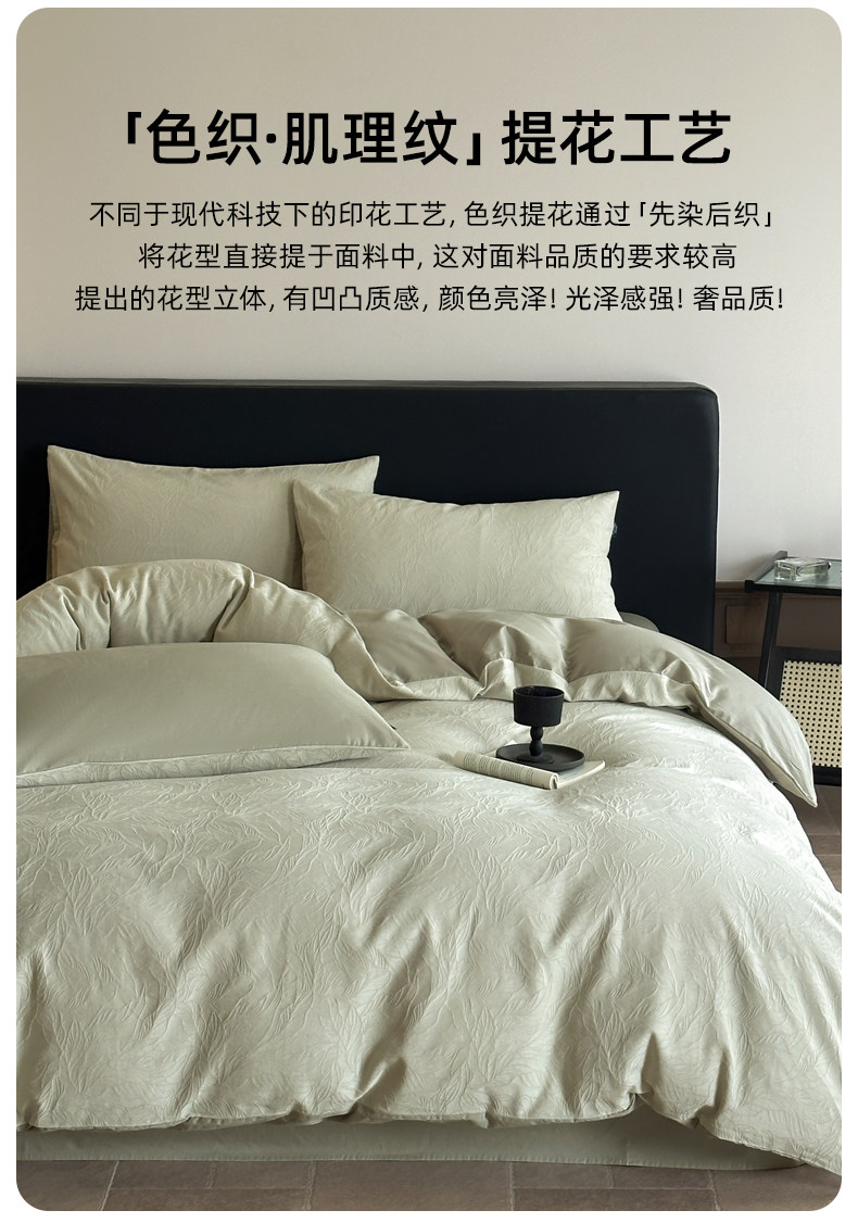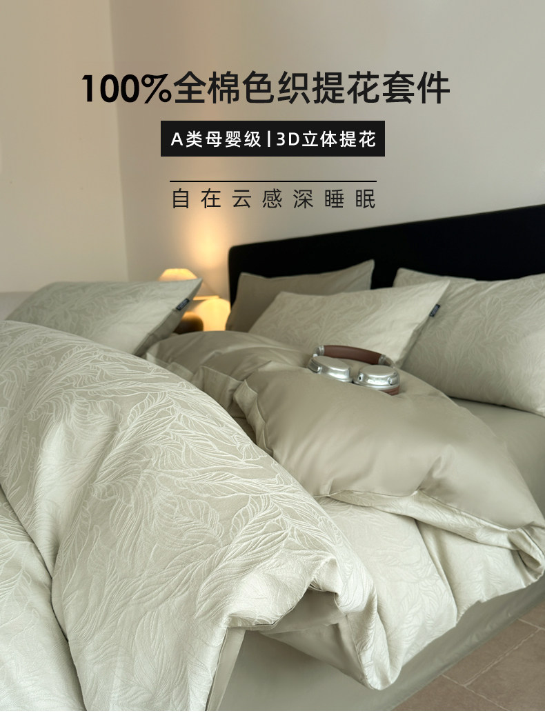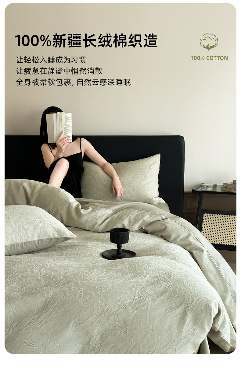 Cama de algodón de lana larga de Xinjiang de clase A de grado materno y infantil, cuatro piezas, 100% algodón único, 60 s, algodón teñido Jacquard, cubierta