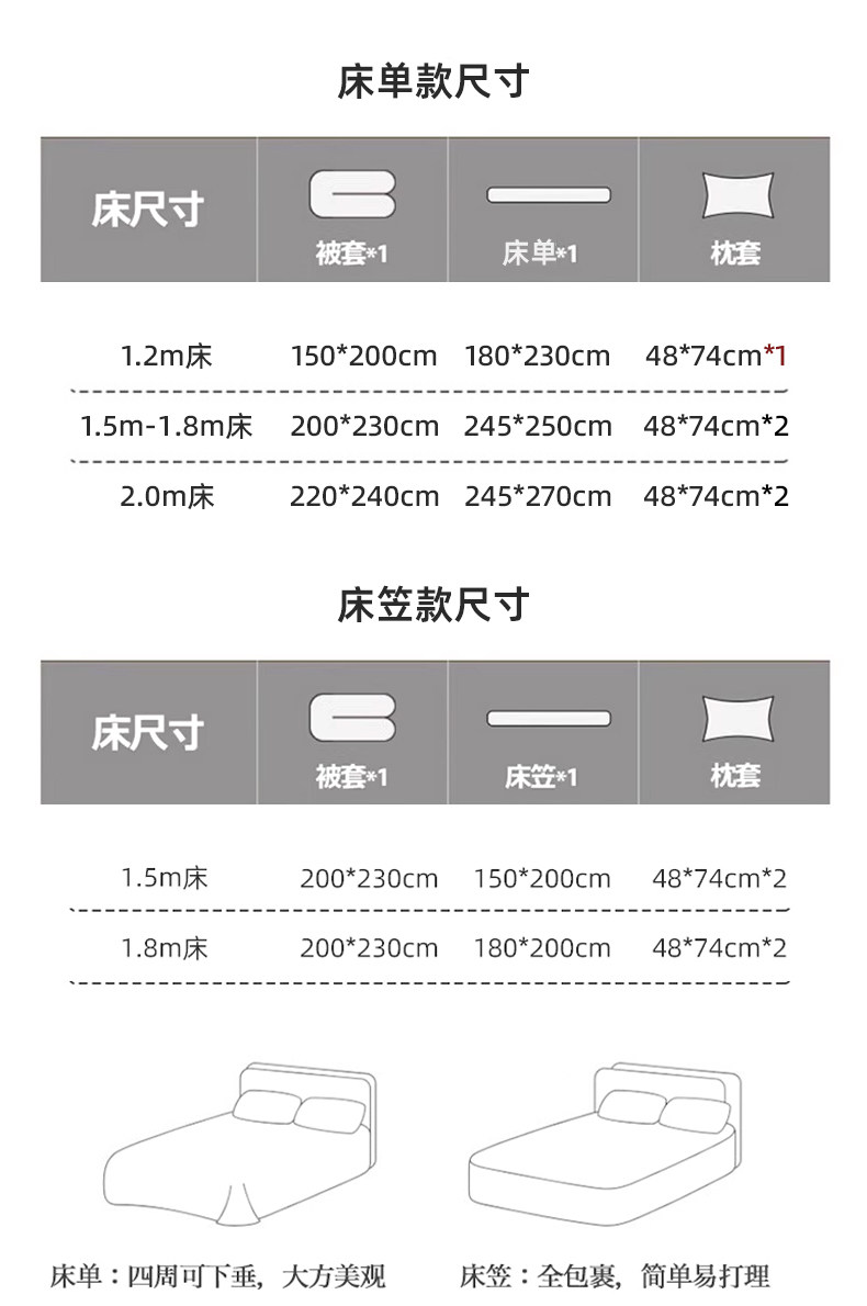 | Especificaciones de tamaño | Sábanas de cama de 0.9m con tres piezas [cucha 1.5 * 2.0], sábanas de 1.2m con tres piezas [cucha 1.5 * 2.0], sábanas de 1.5m con cuatro piezas [cucha 2.0 * 2.3], sábanas de 1.8m con cuatro piezas [cucha 2.0 * 2.3], sábanas de 2.0m con cuatro piezas [cucha 2.2 * 2.4], sábanas de 1.5m con cuatro piezas [cucha 2.0 * 2.3], sábanas de 1.8m con cuatro piezas [cucha 2.0 * 2.3] |