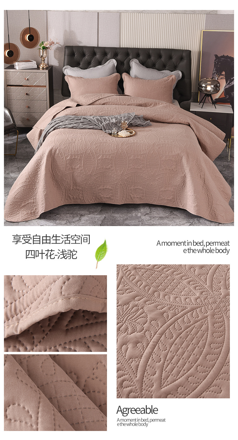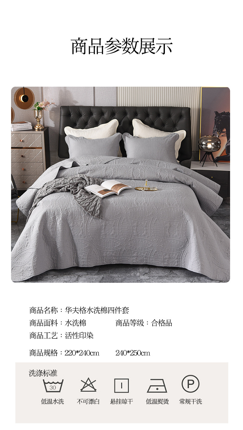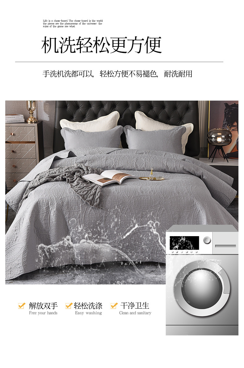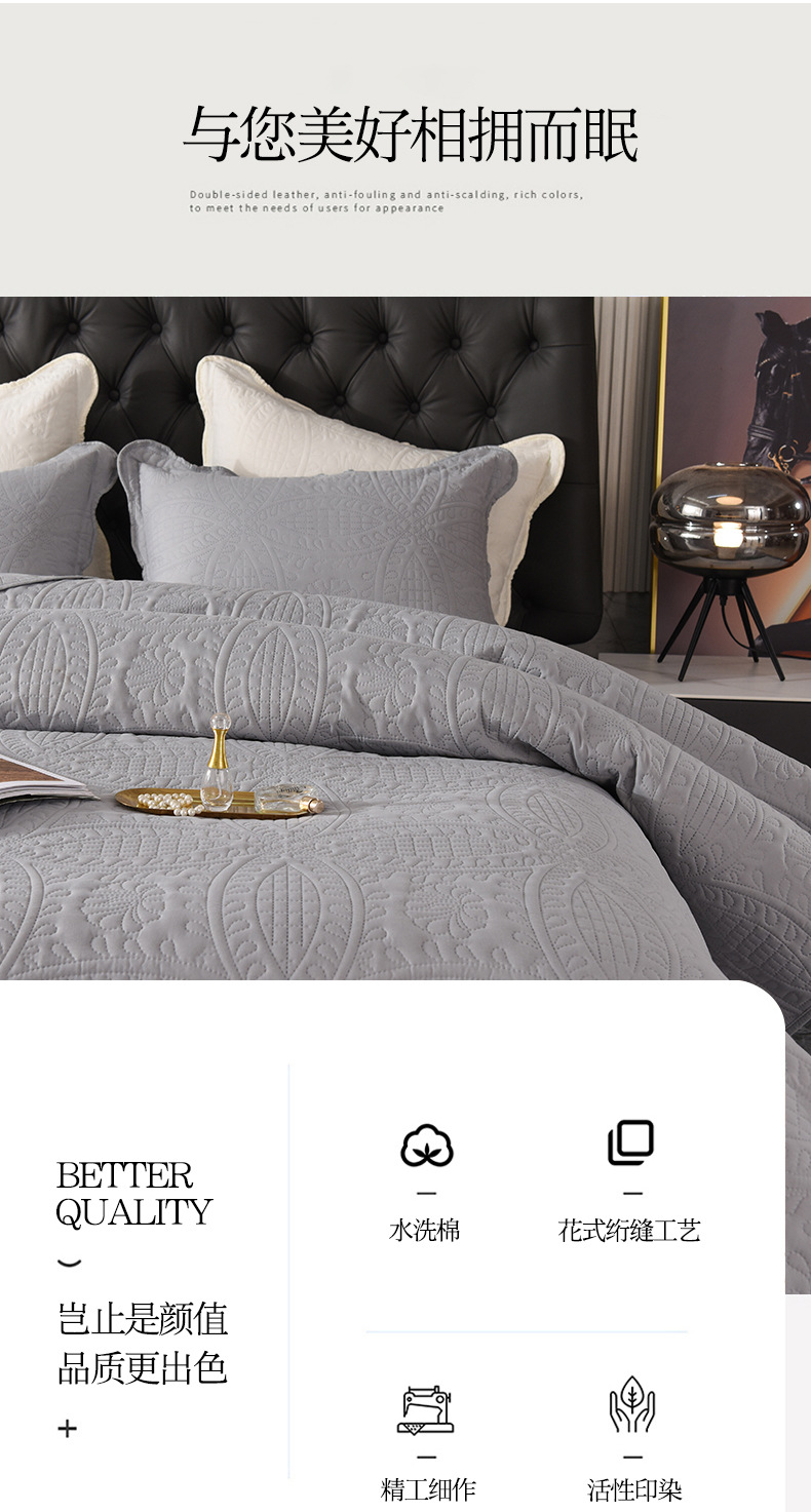 Tapa de cama de color sólido juego de tres piezas comercio electrónico transfronterizo cuatro estaciones exportación comercio exterior algodón lavado acolchado liso ropa de cama gruesa al por mayor