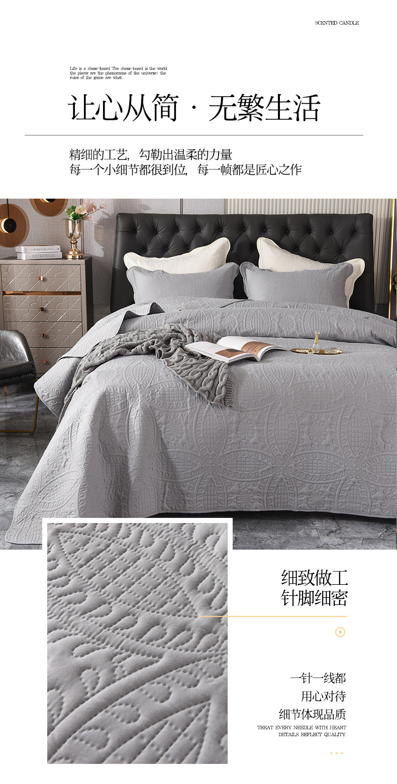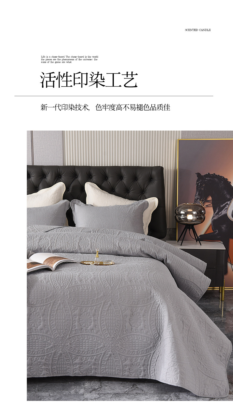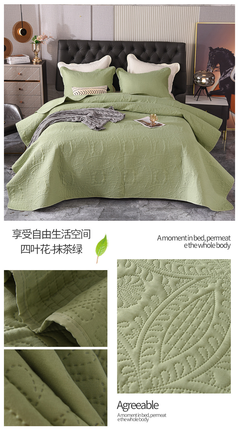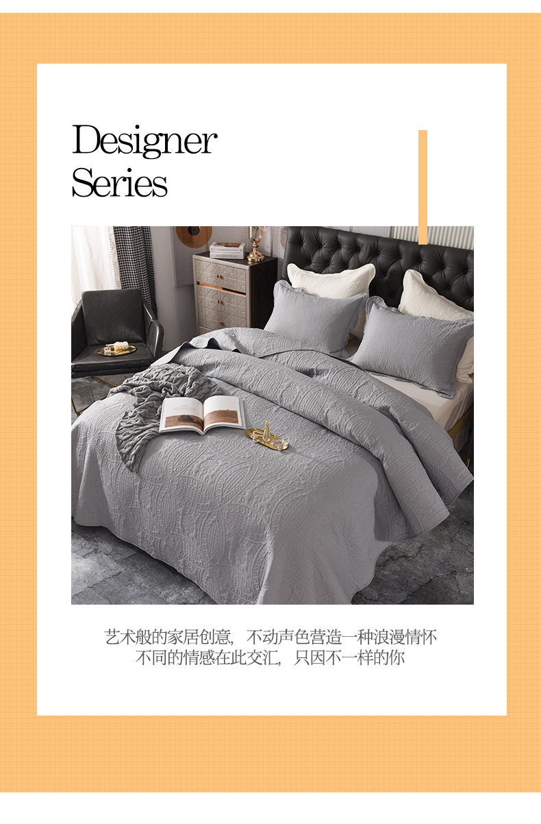 Tapa de cama de color sólido juego de tres piezas comercio electrónico transfronterizo cuatro estaciones exportación comercio exterior algodón lavado acolchado liso ropa de cama gruesa al por mayor