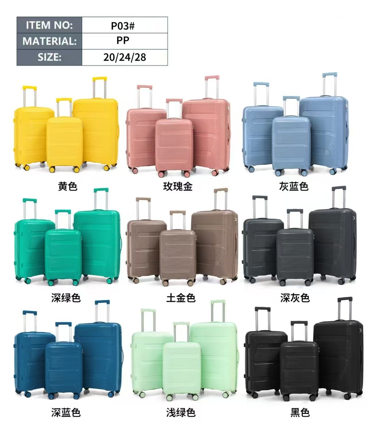 Procesamiento personalizado PP maleta cajas de tracción mujeres comercio exterior rueda universal estudiantes maleta de moda bolsa