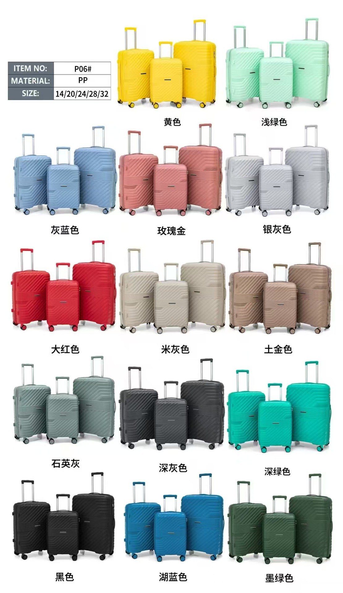 Procesamiento personalizado de tres piezas de maleta de tracción de gran capacidad de moda versátil simple maleta de embarque de viaje de color