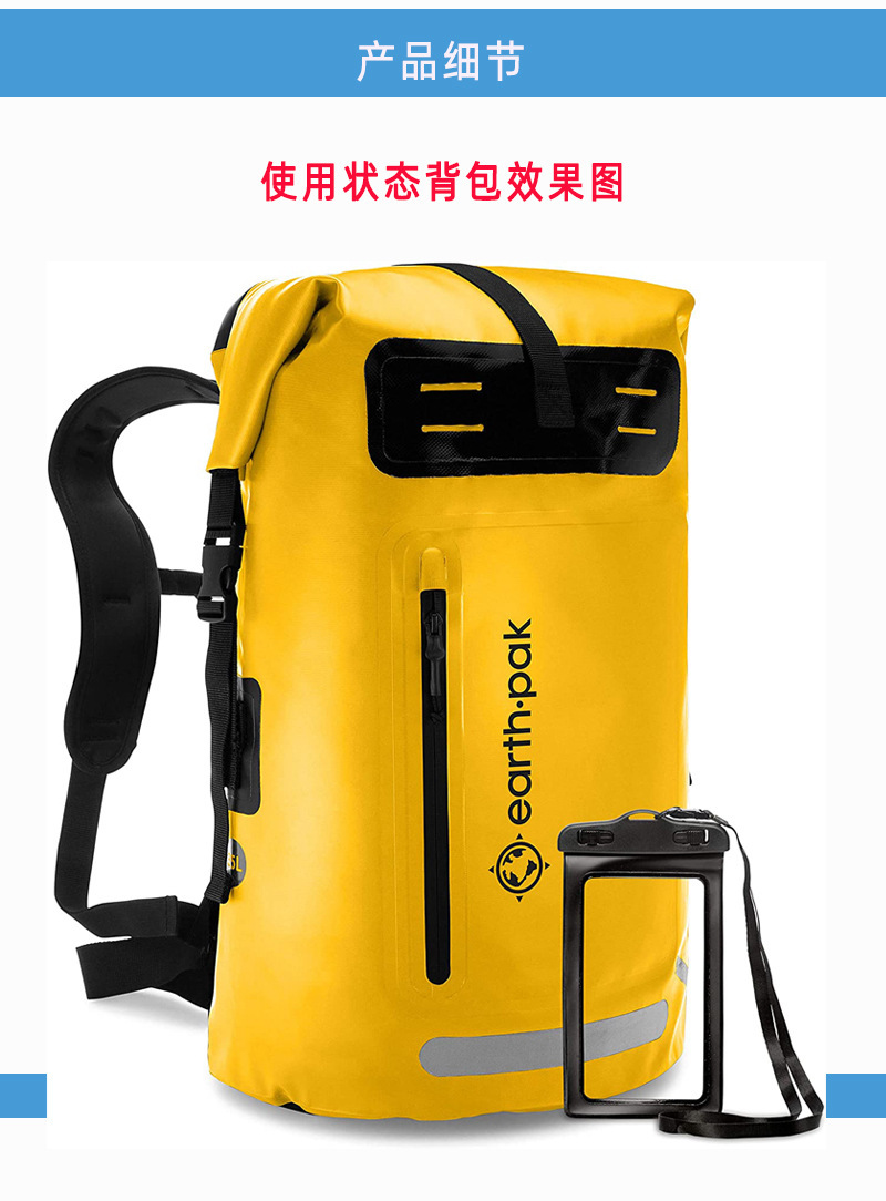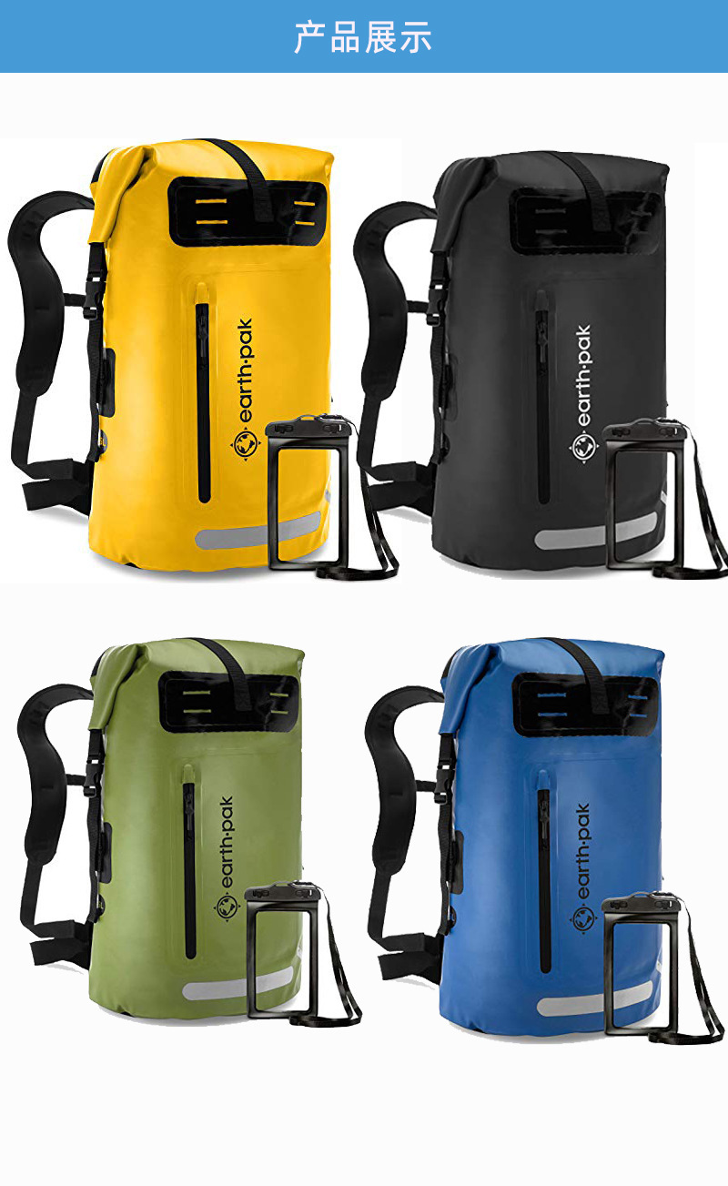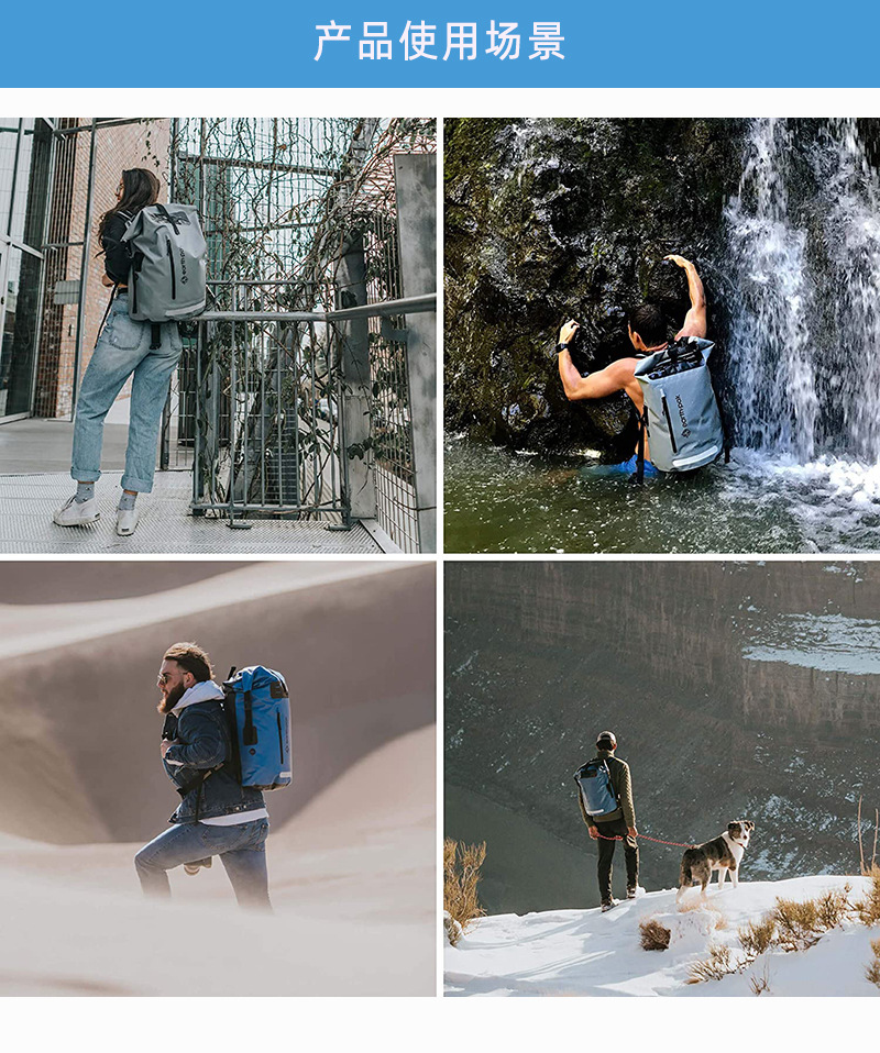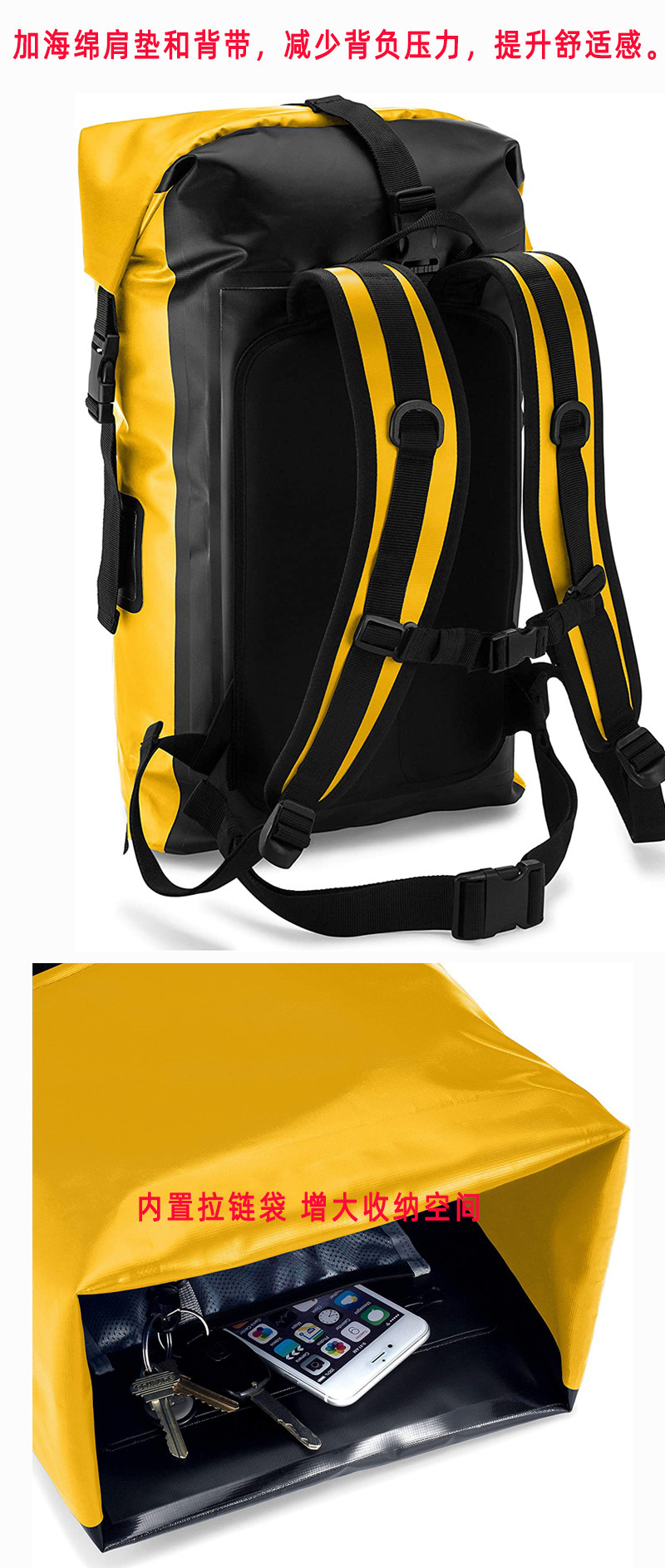 Mochila impermeable personalizada para montañismo al aire libre de PVC, mochila impermeable ligera de gran capacidad estilo camping con almacenamiento húmedo y seco